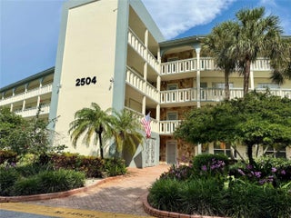 ACTIVE 55+ community! Bright 2nd floor home w/pool view. Receive rental income until JAN 14th ‘27 when lease expires. Updated kitchen with granite countertops, enclosed patio accessible from primary bedroom and living room, walk-in closet in spacious primary bedroom, ensuite with double sinks, tub/shower combo plus walk-in shower in 2nd bedroom. Newer AC and water heater. Privacy hallway between living and bedrooms. Enjoy BBQ and pool area. Live your best life with golf, theater, fitness center, clubs, heated pools and so much more! All included in condo fee PLUS water, HOTWIRE CABLE, free laundry machines on each floor, trash removal and interior pest control! Excellent location near shopping and restaurants in a secure community with a 24-hour manned gate at an affordable price.