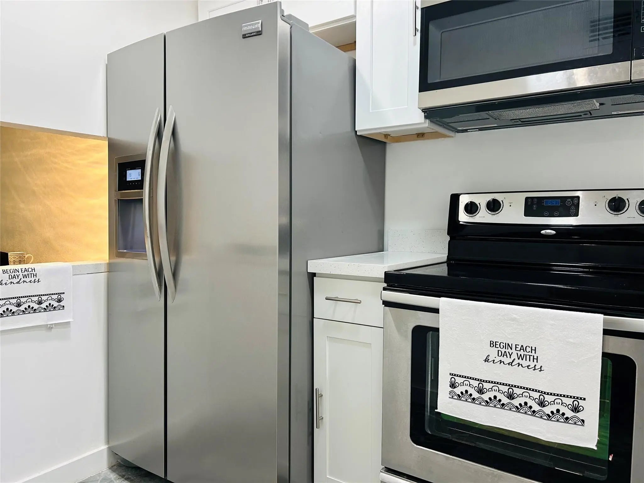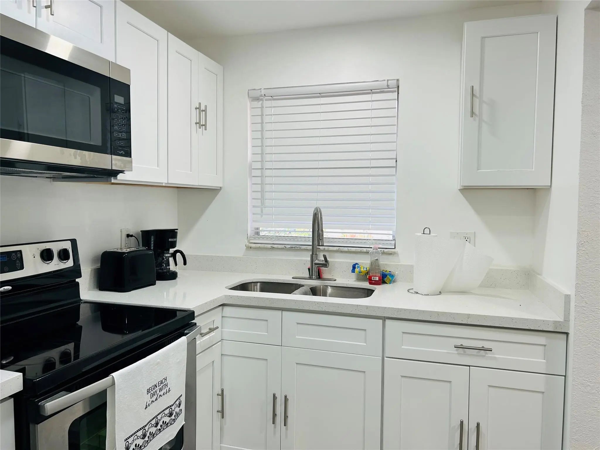 Very beautiful 2 bedroom 2 bathroom condo completely updated, featuring brand-new kitchen cabinets, appliances, and flooring throughout the entire unit. The bathrooms shine with new vanities, toilets, faucets, and shower fixtures. This corner unit has been refreshed with new light fixtures, door handles, new plumbing, and ceiling fans. The electrical system has been updated with new receptacles, and the walls have a fresh texture and paint. Additionally, a new thermostat ensures comfort and efficiency. Easy to show.