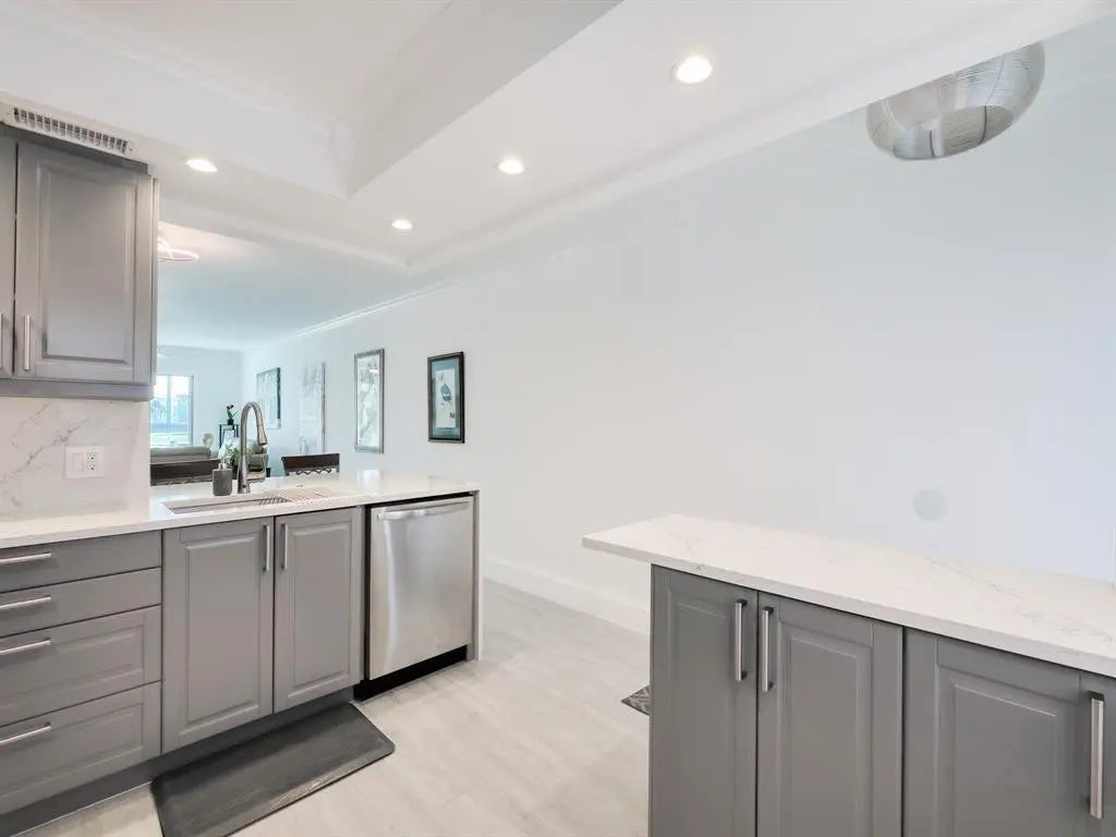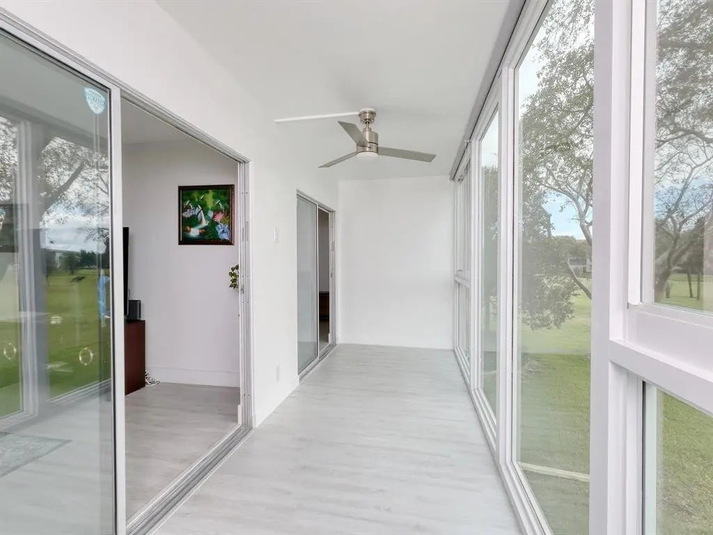 This fully renovated unit has captivating water vistas from its IMPACT glass-enclosed Florida Room, IMPACT WINDOWS & FRONT DOOR. Enjoy the spacious, open floor plan with abundant natural light. Open pass-thru and entryway. Quartz counters with Waterfall edge. SS Appliances, Custom Window Treatments. The bedrooms and bathrooms have been tastefully updated CUSTOM CLOSETS & DOORS. The master bathroom entry moved with barn doors. All SMOOTH CEILINGS with four ceiling fans. SHOWERS IN BOTH BATHROOMS (NO TUB), and the kitchen is a chef's dream. Master bedroom King-size bed. Large flat-screen TV in the living room. Enjoy the peaceful, serene Panoramic water and golf view. Great location & very quiet. Condo is completely furnished and is Turnkey 55+Good income and credit required