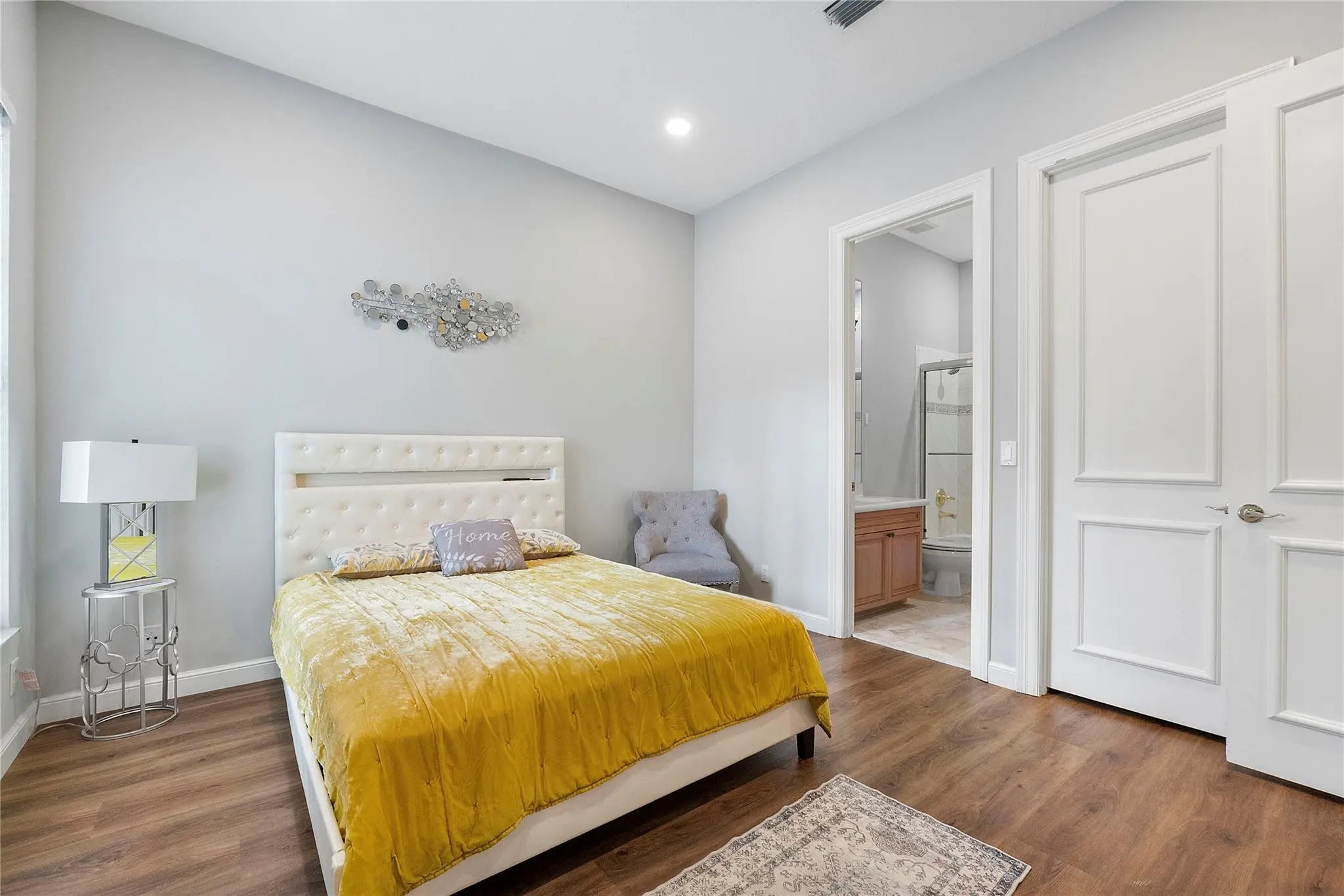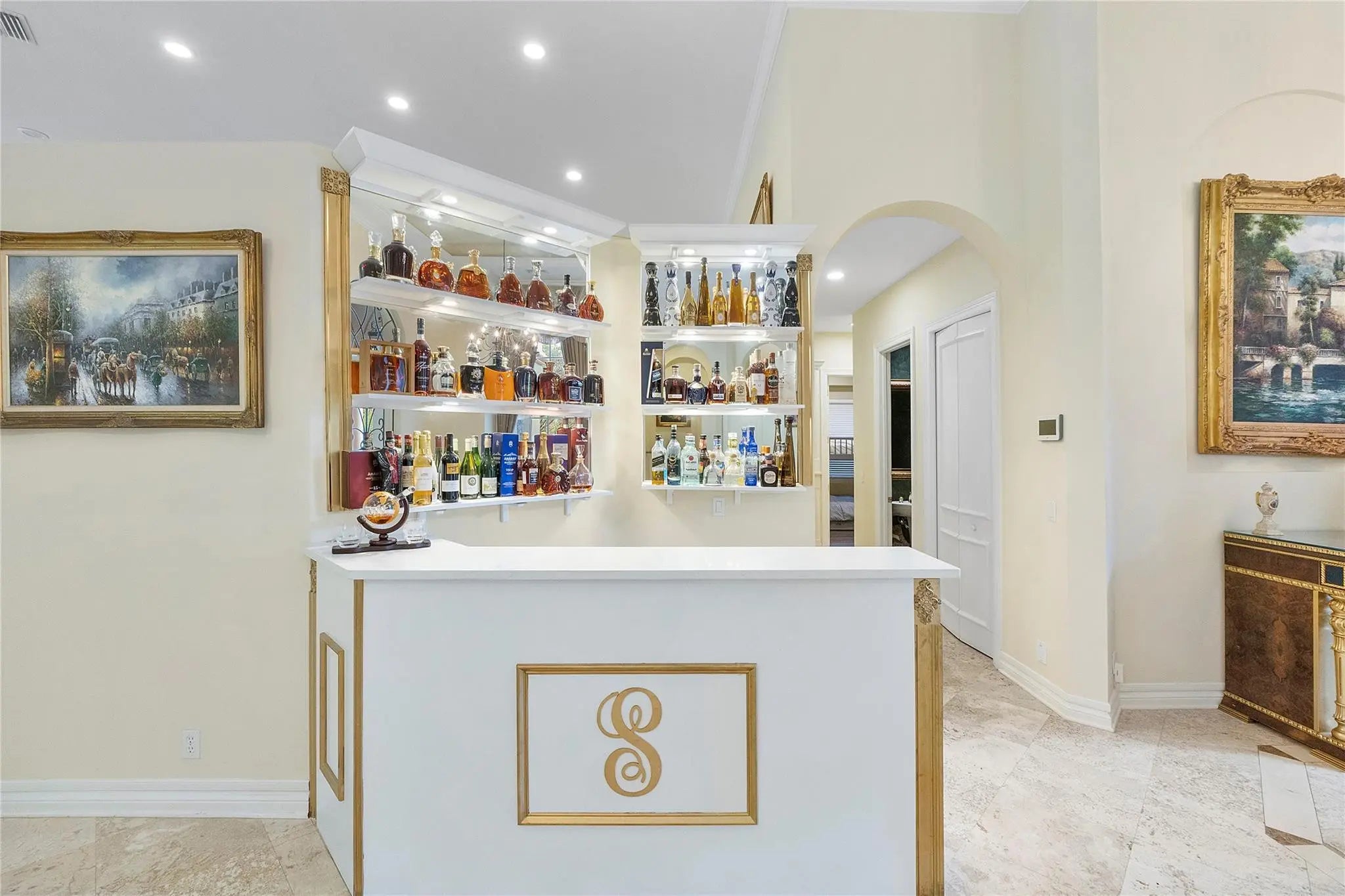 Bar, Built-in Features, Pantry, Bedroom Layout - Split, Closet Cabinetry, Custom Mirrors