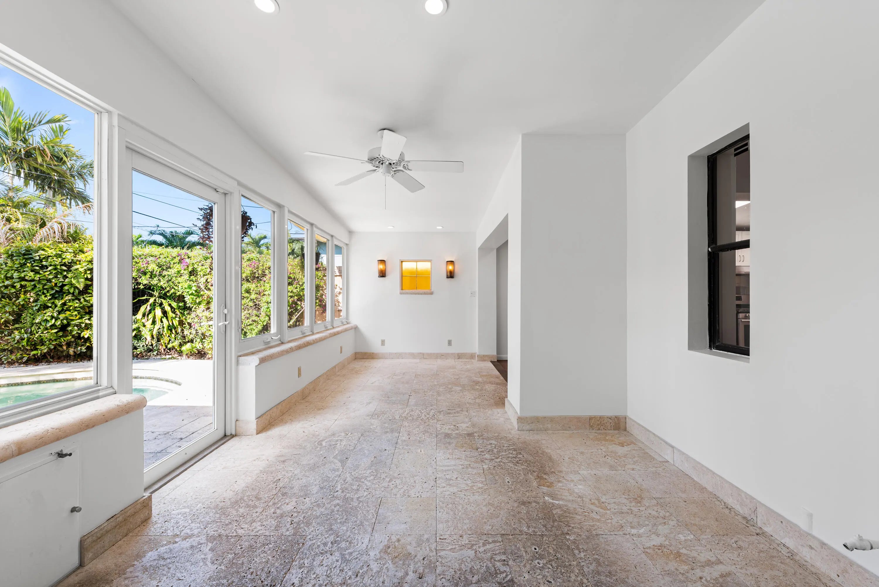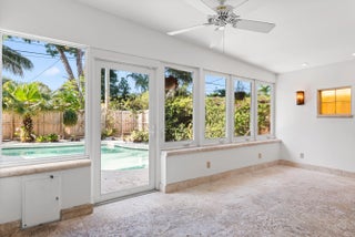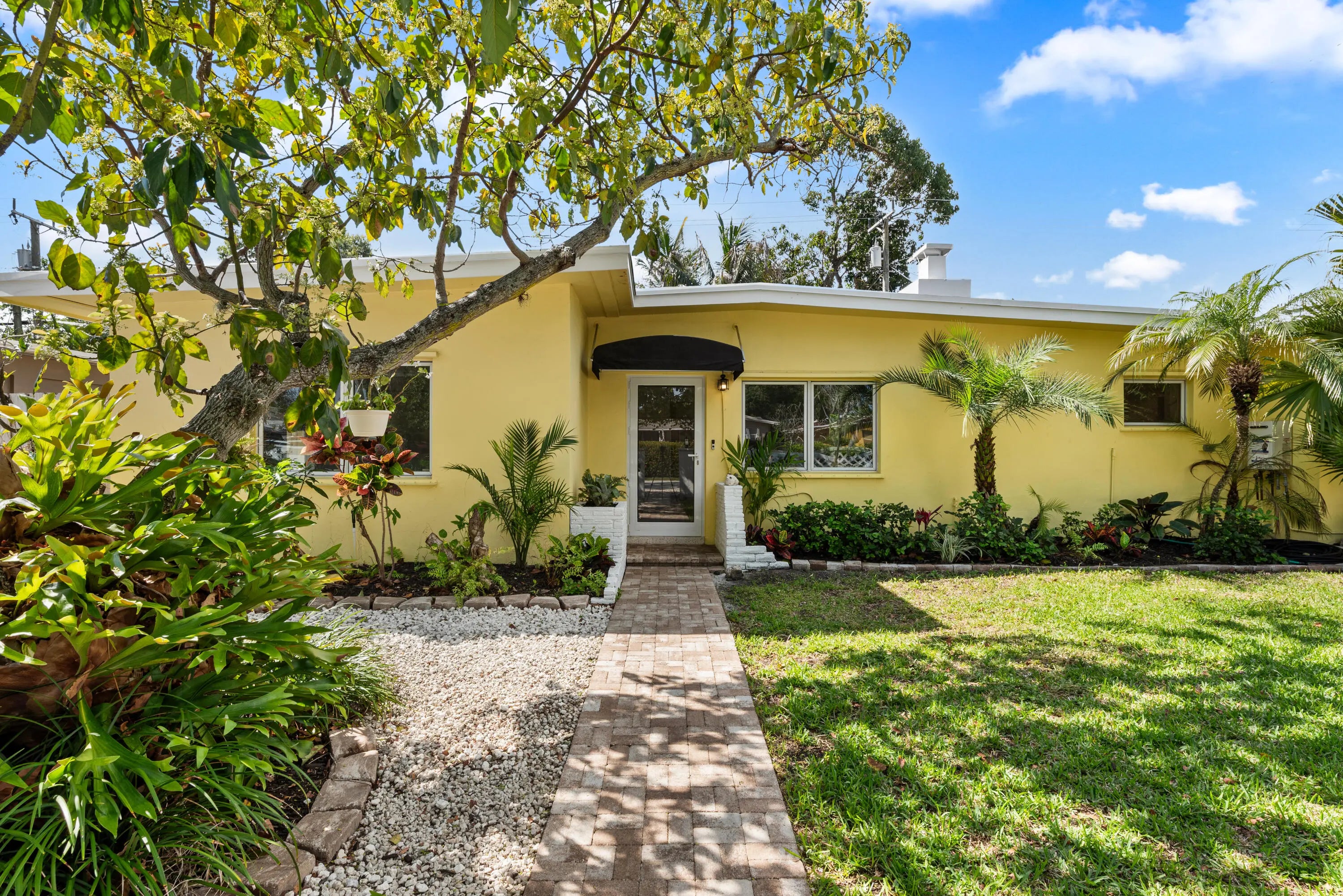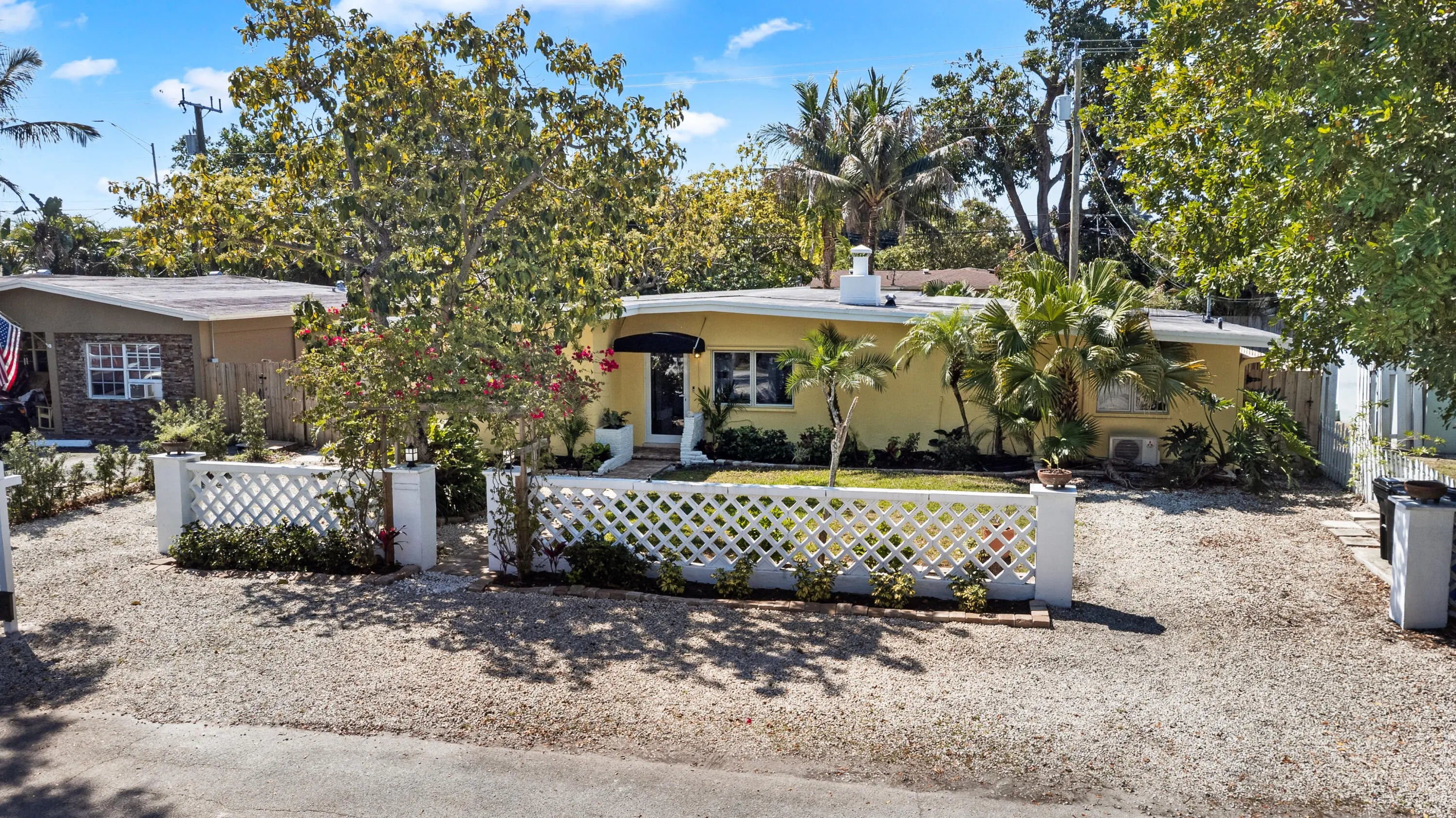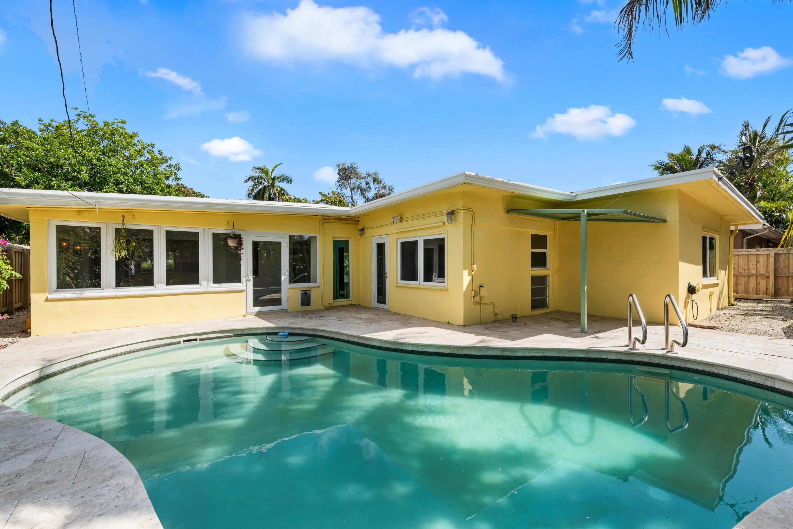 Discover this charming, spacious & character-filled Mid-Century 3/2 plus den. Bought in 1980, boasting 2,373 sqft of living space & a blend of vintage charm with modern upgrades PLUS the rare benefit of income potential! Step back in time with beautiful Teak Parquet floors (1981) & striking Dominican Limestone. Featuring a working fireplace & Florida room (2020) that floods with natural light. Big-ticket items-CHECK-including a reroof in 2016, PVC piping underneath, YORK A/C unit (9/2021) & impact windows (most of the house). A separate efficiency has its own electrical meter, perfect for generating income, housing guests, or creating a private home office/studio. The backyard features stunning Travertine deck (2018) & a new pool heater (2022) for year-round enjoyment. LOVE WHERE YOU LIVE!