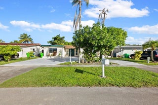 Motivated Sellers 4 bedroom waterfront, family residence with spacious living of over 2000 square feet. This home features two full bathrooms, a spacious family room, and an expanded kitchen with modern amenities. It features desirable elements, including a private dock and a picturesque water view. Screened-in ground pool and covered patio deck—perfect for outdoor living and entertaining. Additional highlights include a newer roof with solar vent, protective impact windows, and a large 4-car circular driveway. Mature mango and olive trees add a touch of charm. Conveniently located near premium shopping, dining, and within walking distance to Doris Market, various stores and Nob Hill Soccer and Park. No HOA restrictions. Priced to sell and ready for your personal touch. Appointment Only