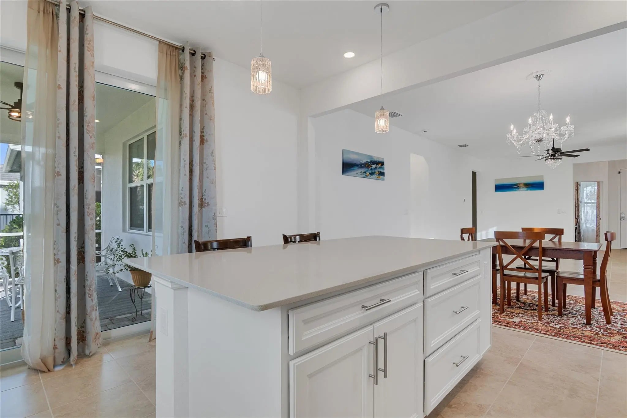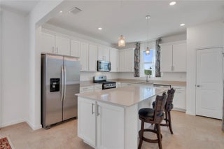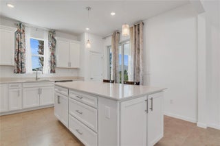 Serene Lake Views! The Compass model by DiVosta built in 2024, offers an open floor plan with serene lake views. Custom upgrades include tile throughout, a chef's kitchen with pull-out drawers, soft-close 42" cabinets, and a gas range, plus a laundry room with front-load washer/dryer and additional cabinetry.Located in a resort-style community, residents enjoy a fitness room, pickleball courts, pool, clubhouse, and kayak launch. Conveniently close to private and public golf courses, beaches, shopping, airports, and hospitals.