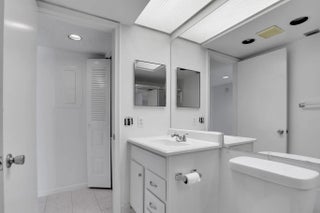 This exceptional apartment features modern living with a striking eastern exposure that fills the space with natural light. The gourmet kitchen integrates seamlessly with the living area, perfect for entertaining and relaxation. The serene bedroom offers ample closet space and a spa-inspired bathroom with newer vanities in both bathrooms. The primary bathroom includes a shower, while the guest bathroom has a tub-and-shower combination. An in-unit washer and dryer adds convenience. The living and dining areas are tiled, and bedrooms have laminatel flooring. Recently painted, the apartment also boasts a new air conditioning unit 2025 and water heater installed 2015. Enjoy panoramic water views from the glass-enclosed patio with pull-down shades. SEE ALL PHOTOS THEN SEE FOR YOURSELF!