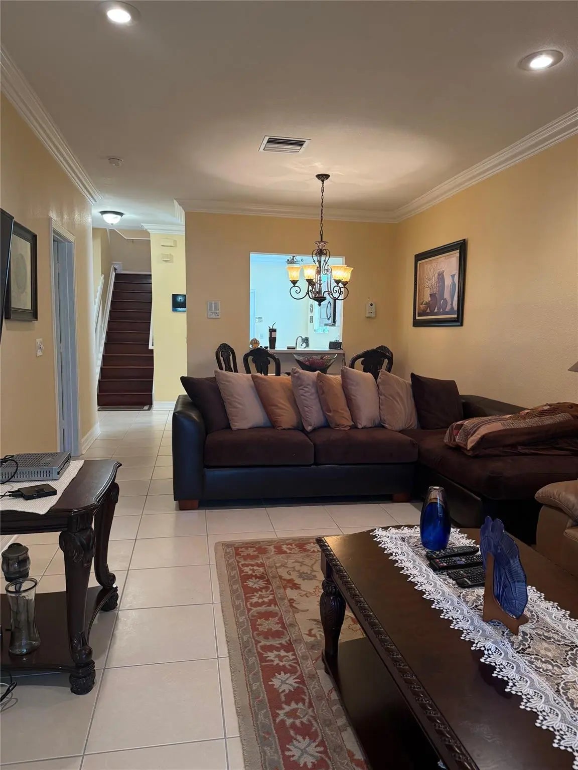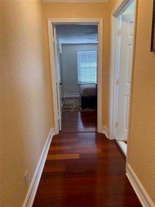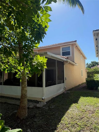 Beautifully maintained 4BD/3.5BA home featuring abundant natural light throughout. Master bedroom suite conveniently located on the first floor with elegant hardwood flooring. Freshly painted interior with crown moulding and new light fixtures. Hurricane impact windows and doors provide peace of mind.Spacious eat-in kitchen with stainless steel appliances. Surround sound and intercom system throughout the home. Screened-in patio with stamped concrete—perfect for outdoor entertaining. Lush backyard with multiple fruit trees including mango, banana, coconut, lemon/lime, and Junie plum.Low HOA fees. Move-in ready and located in a desirable community close to shopping, dining, and major highways. Move-In Ready 4BD/3.5BA Single Family Home with Master Suite on First Floor! Elegant hard wood flooring, hurrican impact windows, and crown moulding are just a few of the upgrades to this beautiful home. Low HOA fee.