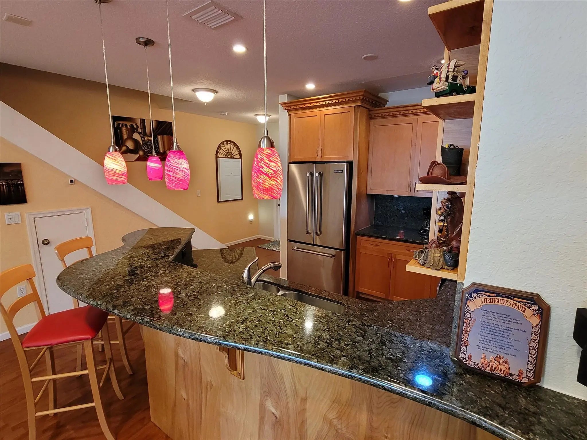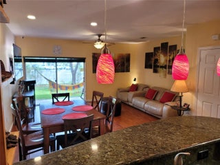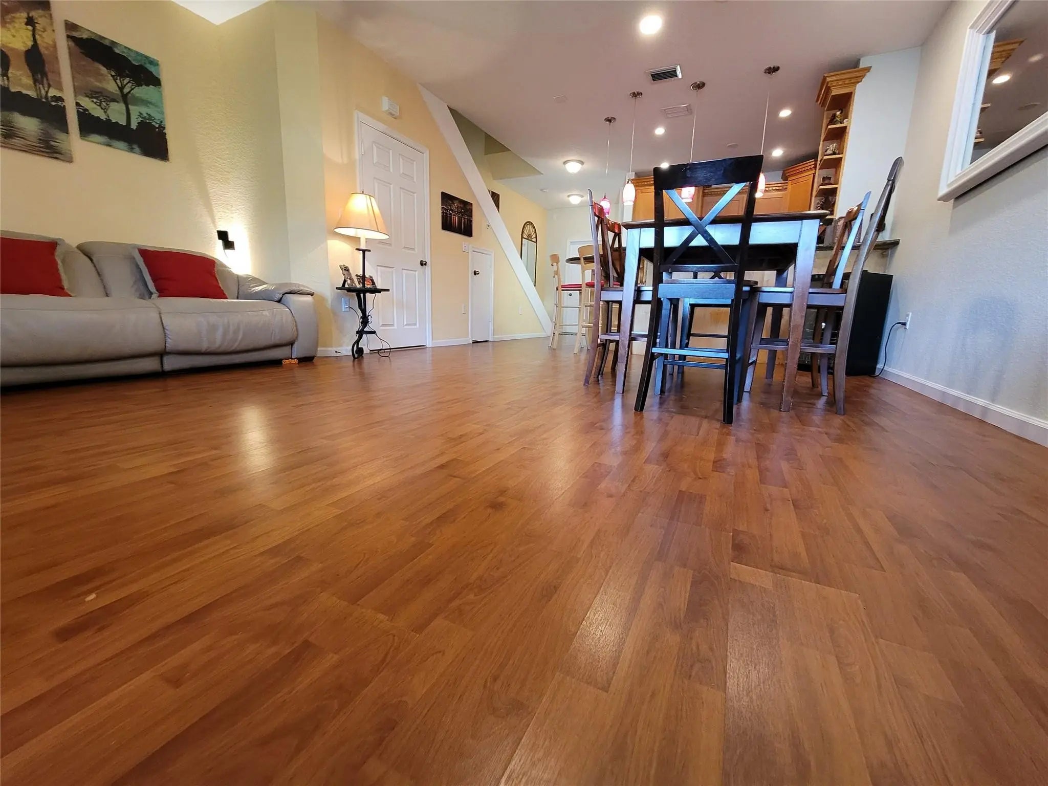 2 story Town home with attached 1 car garage. paver driveway that allows 4 additional vehicles. Upgraded kitchen cabinets with Granite Counters and full back splash. Laminate floors downstairs with carpet upstairs. Back patio looks to back yard with garden. Home has interior and exterior security cameras. Aluminum shutters included. Updated Energy efficient AC. Stereo system included with Surround Sound. HOA Approval Required