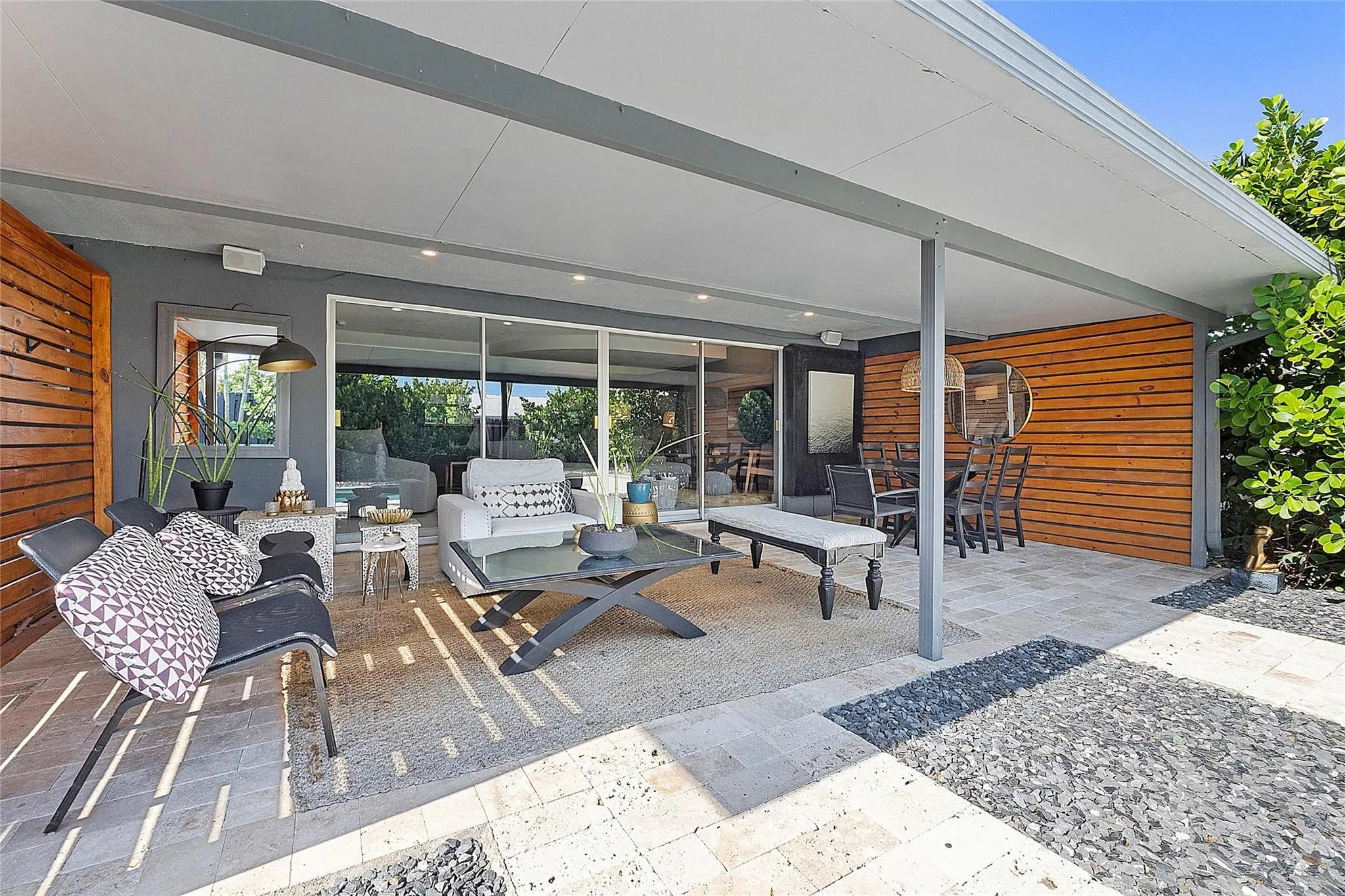 This stunning residence offers a heated sports pool designed for lap swimming and volleyball, surrounded by multiple lounging areas, including a pergola with TV—perfect for relaxing and enjoying the serene pool views.Inside, the home is fully furnished and stylishly decorated in classic mid-century modern design. Amenities include a dedicated exercise area, grandstand-style massage space, outdoor shower, and a private guest suite with a separate entrance. Nestled amid lush, mature landscaping, this home offers exceptional privacy and comfort. It’s also conveniently close to top private schools, including Pine Crest School and Westminster Academy.Experience elegance, convenience, and resort-style living—all in one extraordinary Fort Lauderdale rental.