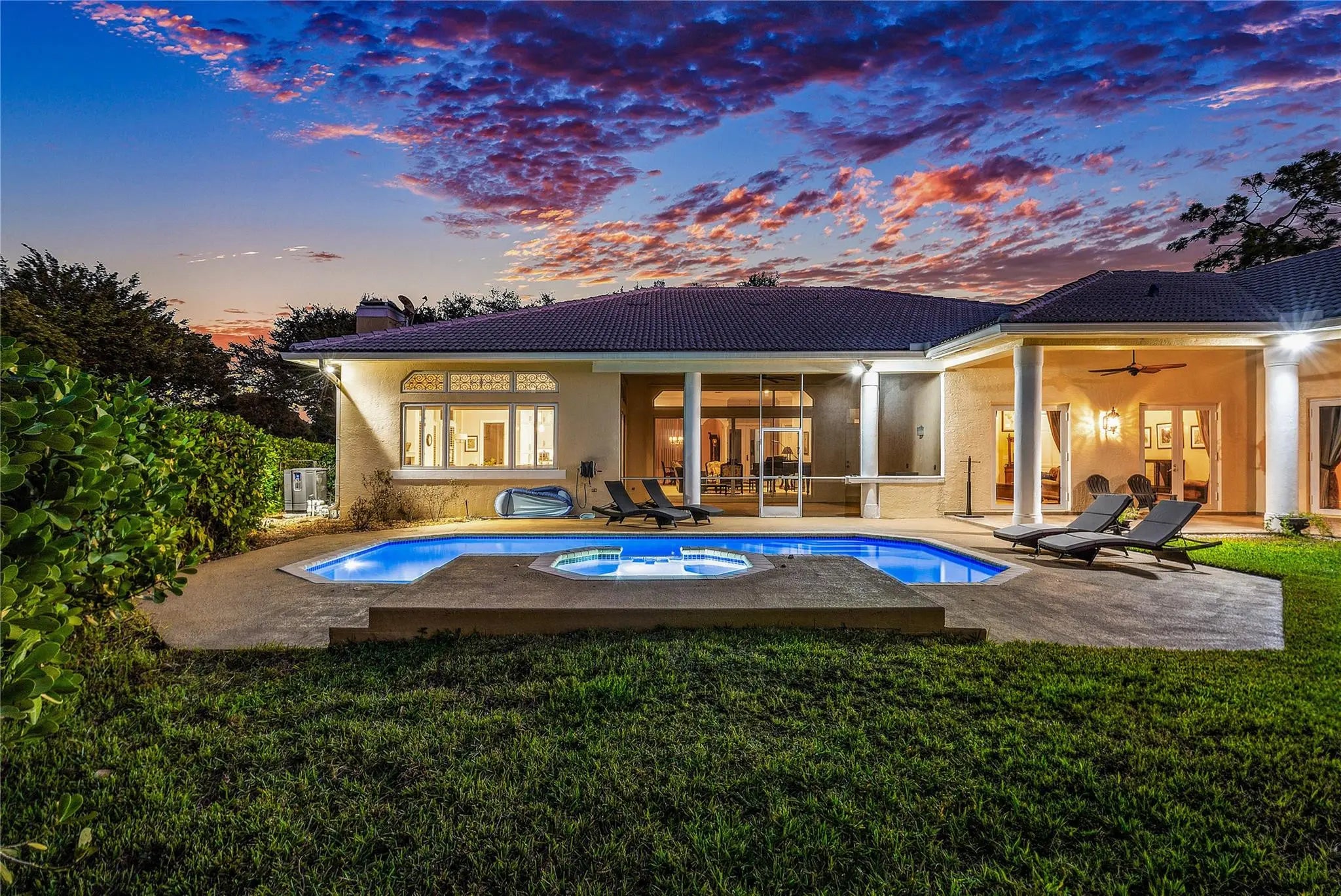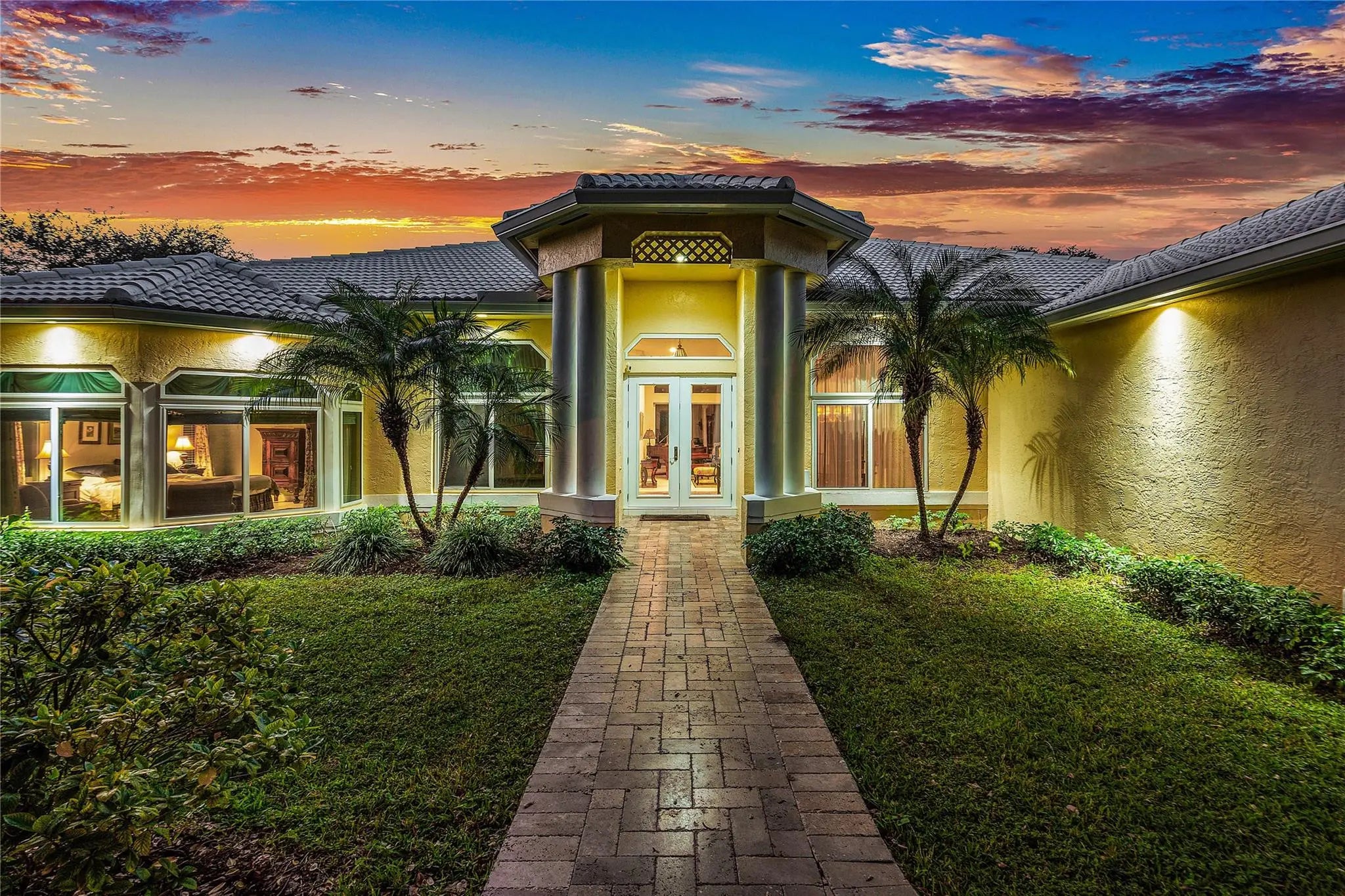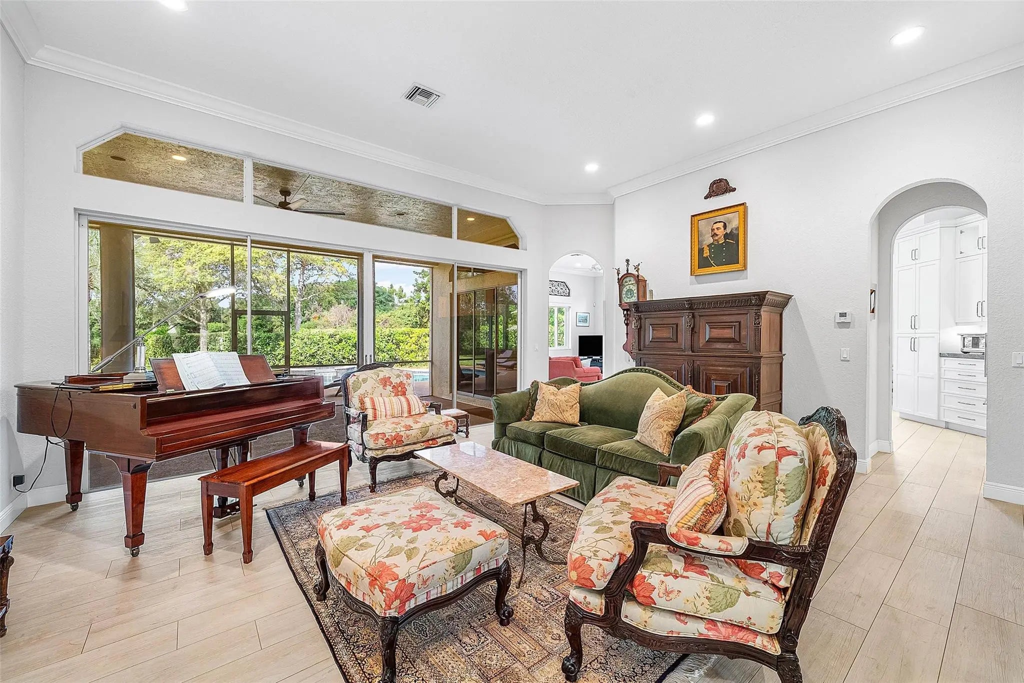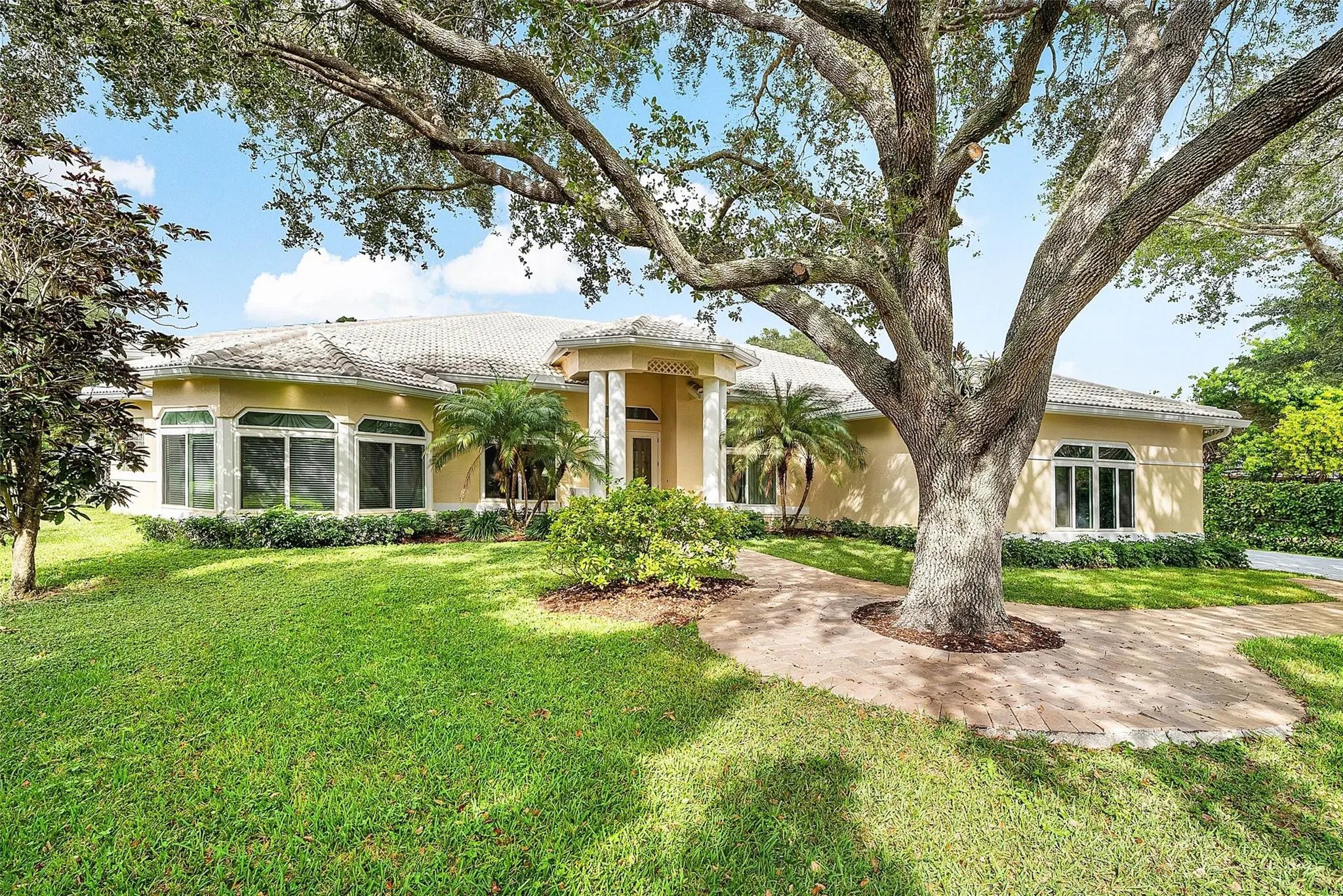 Situated on a quiet street lined with some of Parkland’s most beautiful homes, this impressive residence rests on 1+ acre of picturesque grounds with a sprawling front lawn & stately oaks. Soaring ceilings & walls of glass fill large formal & casual living areas with natural light. Designed for large scale indoor/outdoor living & entertaining, the flexible layout flows seamlessly to a huge screened porch, resort style pool area, & glorious outdoor spaces. A thoughtful addition provides a private wing with 4 bedrooms/2 baths & is ideal for guests/in-laws. The crisp white kitchen features an island, quartz counters, top-tier appliances, & opens to a large family room. The oversized primary suite offers a sitting area & new spa-like bath. Some windows/doors are impact! Whole house generator.