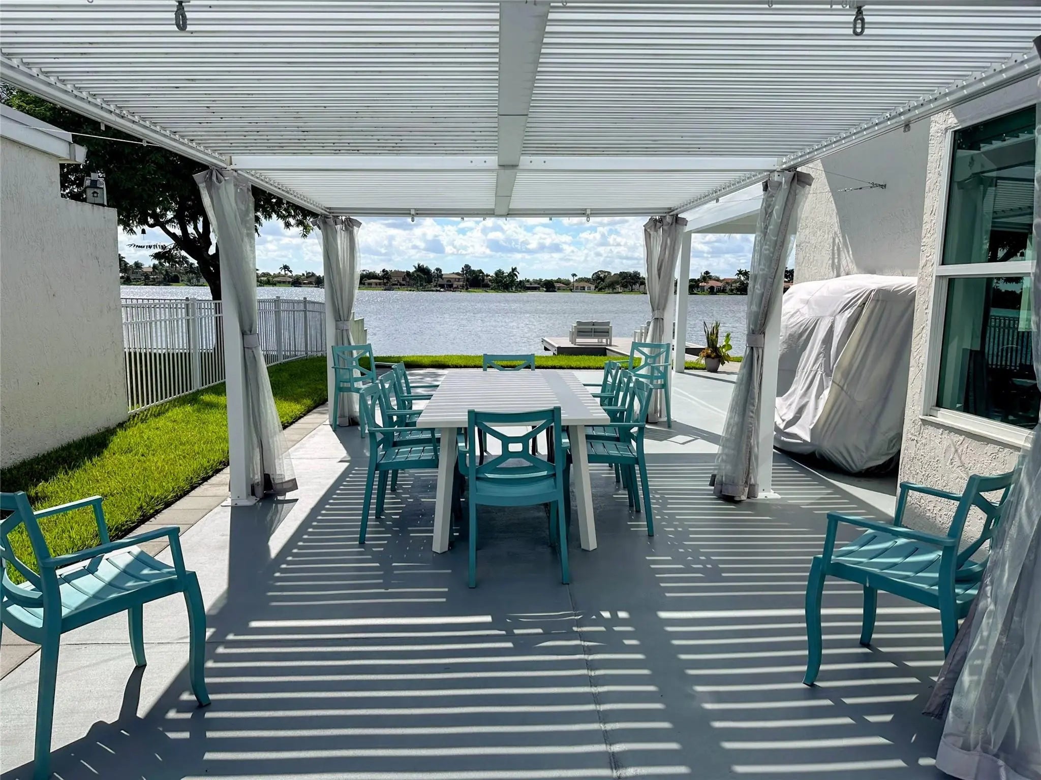 Modern, fully upgraded lakefront smart home in a private Pembroke Pines community. This stunning 3/2 features porcelain tile throughout, impact windows/doors, custom closets, elegant bathrooms, and a luxury kitchen with solid wood cabinetry, premium counters, stainless appliances, and a wine cooler. The finished double garage adds flexible living with A/C, LED lighting, and matching tile. Enjoy seamless smart control of lighting, climate, irrigation, water filtration, and security. Step outside to a resort-style backyard with a maintenance-free dock, solar lighting, built-in speakers, a sleek covered patio, and a modern pergola — all overlooking peaceful lake views. Move-in ready perfection!