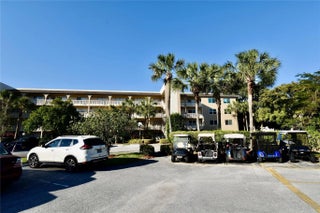 Beautifully remodeled 55+ first floor condo with breathtaking panoramic lake views! The open entry leads to the kitchen with custom cabinets, granite countertops, and stainless steel appliances. Features include 14” diagonal porcelain tile and wood laminate flooring, remodeled bathrooms, a walk-in shower in the guest bath, and a walk-in closet. The impact glass-enclosed lanai is raised and has new windows with no direct sun exposure. Additional upgrades: 5-year-old A/C and roof, newer water heater, Kirsch blinds, and freshly painted interior. Parking by stairs and full-size storage unit included. Walk to the theater, fitness center, jacuzzi, lazy river, main pool, BBQ area, and on-site restaurant. HOA covers water and cable. Ideally located near all essentials for easy living!