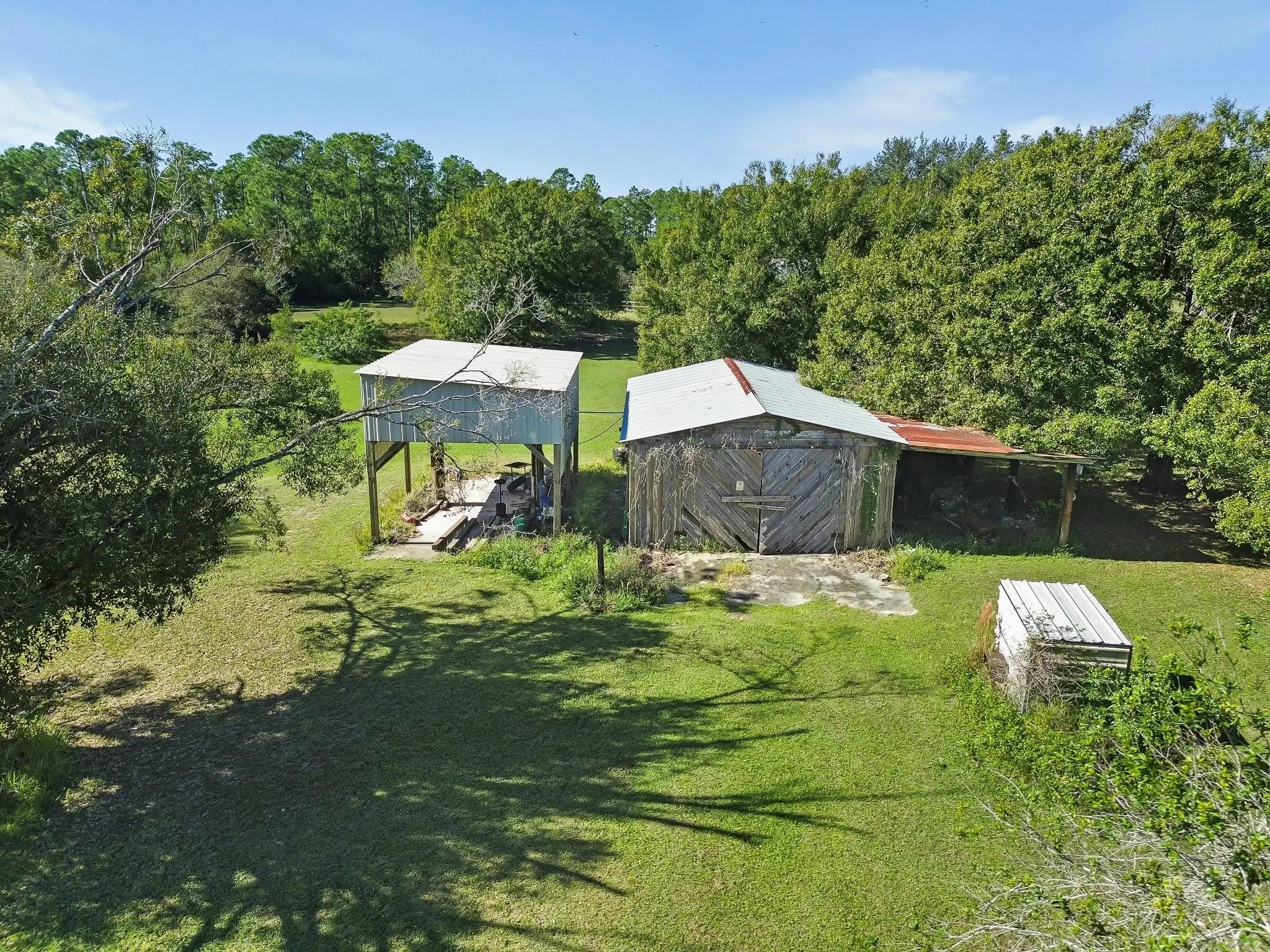 **AGGRESSIVELY & STRATEGICALLY PRICED!!** 5 ACRES of HIGH and DRY land! The home needs some TLC, but the land & existing structures create an incredible opportunity for the next owner with vision. Rural Residential Zoning, you can keep Horses and Livestock and add additional residences, creating room for a true enclave. NEWER AC and TWO spacious SHEDS, each with electric and plumbing, are ideal for equipment storage or can be transformed into hobby rooms, art studios, or even detached offices. A Large Master WORKSHOP, fully powered and plumbed, offers a larger hub for projects, creative work, or small business setup. A CITY APPROVED, Professional Grade AUTOMOTIVE LIFT will be removed prior to closing; However, the existing electrical hookups & structural setup will remain.
