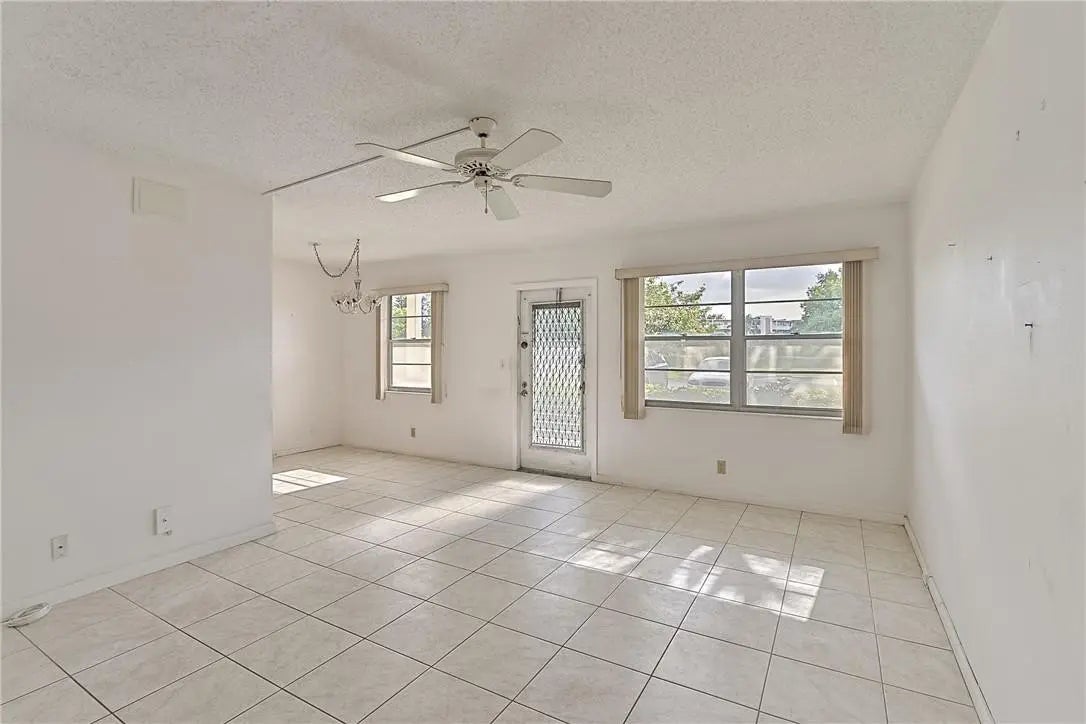 Annual Rental, Furnished or Unfurnished!! Super Convenient Ground Floor Unit in Great Condition. Spacious and Clean throughout, Bedrooms now have Tile. Large Screened-in-Patio with Wind Shutters for Protection provide Extra Space. Full Bathroom features a Walk-In Bathtub for Easy Access. New Air Conditioning unit and New Water Heater! Parking Spot is directly in front of unit. Grantham E is one of the Most Desirable Spots located in the Heart of Century Village. Only Steps to the Pool. Century Village is an Extremely Active 55+ Community offering Resort-Style Amenities: Cafe, Clubhouse, Tennis, Pickleball, Craft/Painting Workshops, Hobby Classes Fitness Centers, Free Movies, Free Shuttles