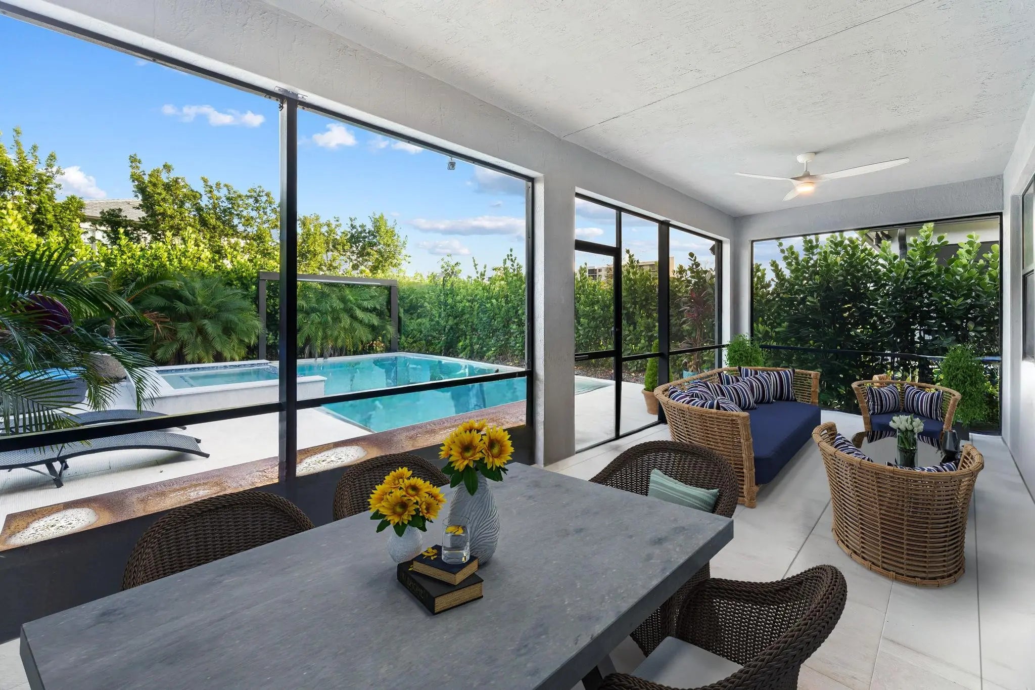 LOWEST PRICED POOL HOME in OAKTREE! Discover this stunning 3-bed, 2.5-bath pool home located in the sought-after OakTree. Built in 2023 & enhanced with a 2024 resort-style pool+ Jacuzzi & cascading waterfall, this residence offers a private oasis. Enjoy a beautifully screened-in patio & lush landscaping that create an atmosphere of tranquility. Inside, an open-concept floor plan showcases expansive windows flooding the home with natural light. The second level includes an open loft—perfect as a den, lounge, or home office—along with an elegant primary suite featuring sophisticated finishes & a spa-inspired bathroom. Solar panels for reduced electric costs. This location offers a gated community with exceptional amenities, & effortless access to Wilton Manors, the beaches, & so much more!
