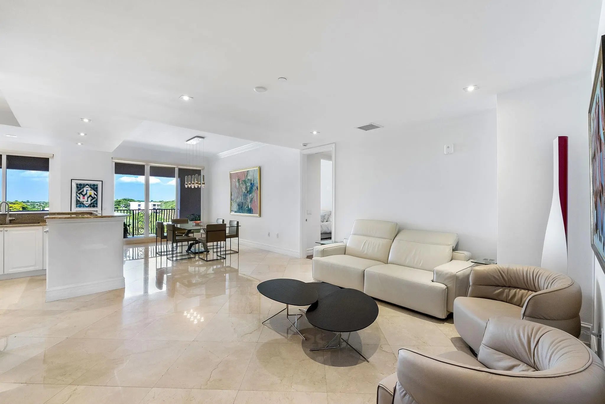 Experience elevated beachfront living in this expansive 2-bedroom, 2.5-bath residence at The Meridian at One North Ocean in Boca Raton. Spanning over 3,000 sq ft, this home offers exceptional space, sophistication, and the potential to convert to a 3-bedroom, adding flexibility and value. A semi-private elevator opens to your private foyer. The gourmet kitchen features premium finishes and top-of-the-line appliances. Two covered balconies offer partial ocean views and pool vistas. With just 31 residences, enjoy boutique luxury steps from the beach and minutes to downtown Boca's dining, shopping, and culture. Experience beachfront luxury in this expansive 2-bedroom, 2.5-bath sanctuary at The Meridian at One North Ocean, one of Boca Raton's most exclusive boutique buildings. Spanning over 3,000 sq ft, this home offers a rare blend of scale, sophistication, and seaside elegance, with the unique potential to be reimagined as a 3-bedroom residence, adding both flexibility and long-term value. A semi-private elevator opens directly into your private foyer, setting a tone of refined privacy as you enter. The grand salon, dining area, and media room flow seamlessly, all adorned with marble and wood flooring for a timeless feel. Light pours in through impact-resistant windows, accentuating high ceilings and architectural detail throughout.The gourmet kitchen features premium finishes and top-of-the-line appliances, while two covered balconies — one with partial ocean views, the other overlooking the resort-style pool — offer indoor-outdoor living at its finest.The primary suite is a retreat all its own, complete with generous closets and a spa-inspired en-suite bath. The second bedroom is equally elegant and well-sized, with its own beautifully appointed bath. A convenient powder room completes the layout.Building amenities elevate the lifestyle: 24/7 concierge and security, two assigned garage spaces, towel and chair service at the beach, a resort-style pool, private theater, fitness center, and a newly renovated social room.The association provides exceptional value with water, internet, cable, natural gas, and quarterly A/C filter changes. Additional conveniences include quarterly window cleaning, annual dryer vent cleaning, pest control, and on-site maintenance. Residents also enjoy 24-hour security and front-door delivery, creating a truly effortless, worry-free lifestyle. With just 31 residences, The Meridian is intimate yet luxurious. Located steps from the sand, minutes to downtown Boca's restaurants, boutiques, and cultural destinations — this home truly delivers the best of coastal Florida living.