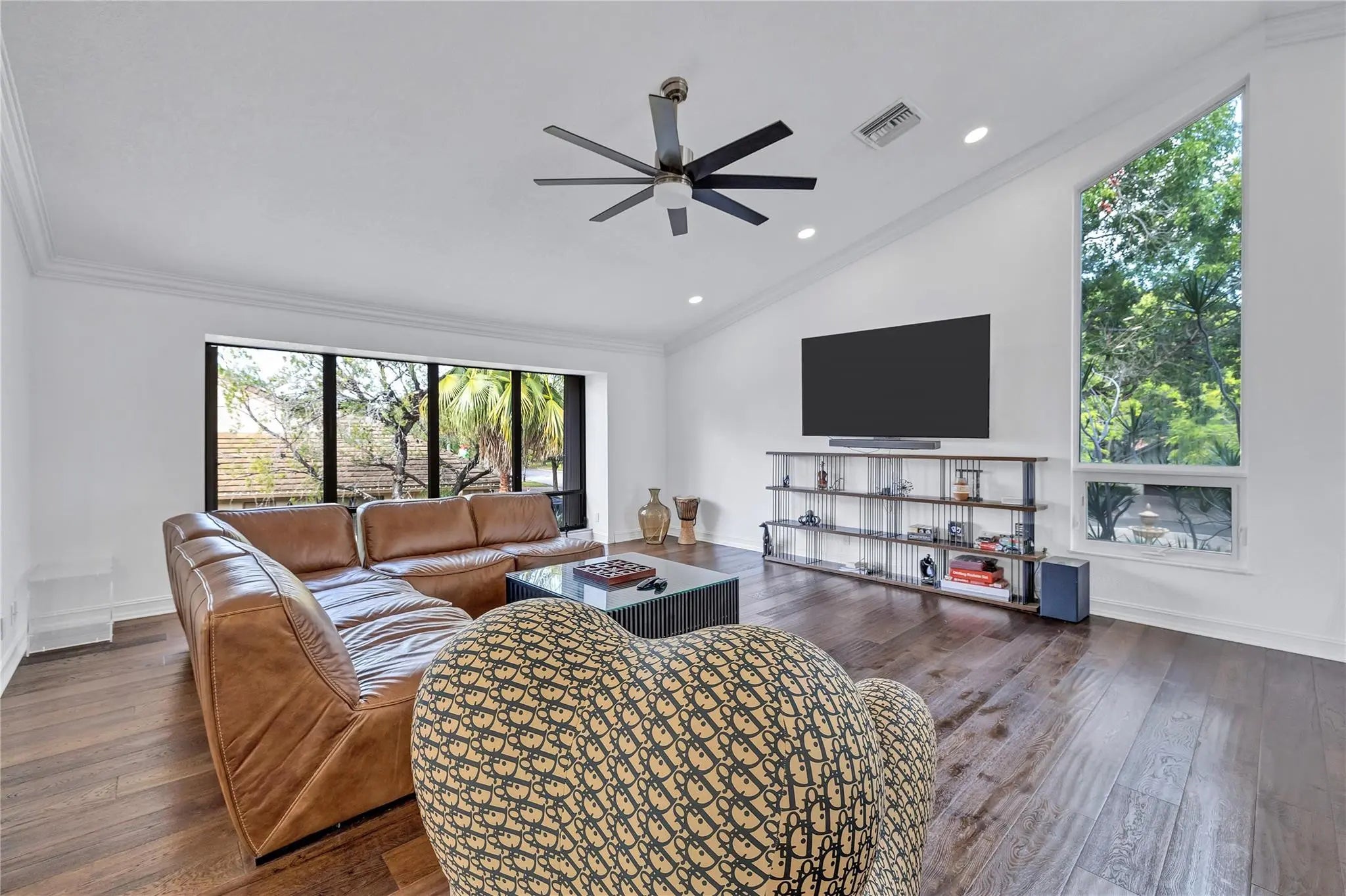 This stunning 5-bedroom, 3.5-bath waterfront home is on a large cul-de-sac lot, in the exclusive, gated Maplewood Isle with 24-hour manned security. The unique layout with 2 living rooms & 2 outdoor covered patio is great for entertaining. The property features a heated pool & spa, a serene Koi pond, lush landscaping with fruit trees. Remodeled interior, includes a chef’s kitchen with quartz countertops, a Wolf 6-burner stove, workstation sink & upgraded cabinets. Huge master suite boasts a private patio with spiral staircase to the pool, In-Law suite with a private entrance adds flexibility. Additional highlights include a private office, wine fridge, modern lighting upgrades throughout. With a Tesla charger, home generator, newer A/C units, pool pump, heater, irrigation pump, and roof. This stunning 5-bedroom, 3.5-bath waterfront home is on a large cul-de-sac lot, in the exclusive, gated Maplewood Isle with 24-hour manned security. The unique layout with 2 living rooms & 2 outdoor covered patio is great for entertaining. The property features a heated pool & spa, a serene Koi pond, lush landscaping with fruit trees. Remodeled interior, includes a chef’s kitchen with quartz countertops, a Wolf 6-burner stove, workstation sink & upgraded cabinets. Huge master suite boasts a private patio with spiral staircase to the pool, In-Law suite with a private entrance adds flexibility. Additional highlights include a private office, wine fridge, modern lighting upgrades throughout. With a Tesla charger, home generator, newer A/C units, pool pump, heater, irrigation pump, and roof.