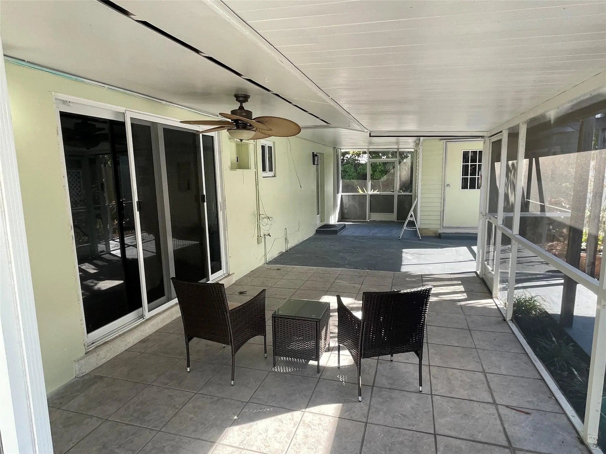 Upgraded 3/2 Home with large screened Patio in Deerfield Beach — Housing Vouchers Welcome!Recently updated with fresh interior/exterior paint, new porcelain floors, recessed ceiling lighting, new fans, and elegant 5.5" wood baseboards throughout. Updated kitchen and bathrooms. All bedrooms feature custom closets and has new ceiling fans. Impact windows for added security and energy efficiency. No HOA; rapid approval. Large storage shed is included. Vacant and easy to show — on lockbox.