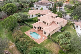 Rare extended Kiaora model situated on a private 16,000+ square foot pie-shaped lot in Parkland Golf & Country Club. The first floor features a primary suite along with a separate full bedroom and ensuite bathroom, providing an ideal layout for in-laws or long-term guests. Multiple living and family room spaces create a flexible floor plan, plus a massive loft upstairs for additional entertainment space. Outdoor living includes a pool, jacuzzi, and convenient cabana bath, surrounded by mature landscaping and ample yard space. Enjoy resort-style amenities, gated security, and access to top-rated Parkland schools, with easy proximity to shopping, dining, and major highways.
