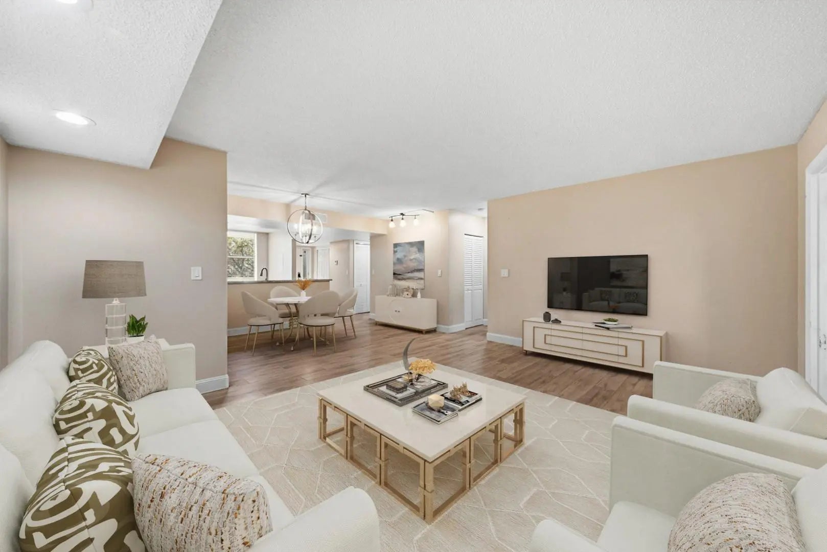 Welcome to this beautifully updated and spacious corner unit withmore than 1,300 sq. ft. of comfortable living. Located on the secondfloor of an elevator building. Unit features an updatedkitchen, renovated bathrooms, and newer flooring throughout the living areas. A versatile bonus room, ideal for a home office or additional living space. An interiorlaundry room with a full size washer and dryer. A rare find in a condoof this size. Come enjoy resort-style living with access to multiplepools, a state-of-the-art fitness center, tennis and racquetballcourts, a clubhouse, and a community theatre. Situatednear major highways, shopping, dining, and top-rated schools, this home offers bothcomfort and convenience in one of Coconut Creek’s most desirablecommunities.