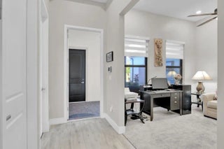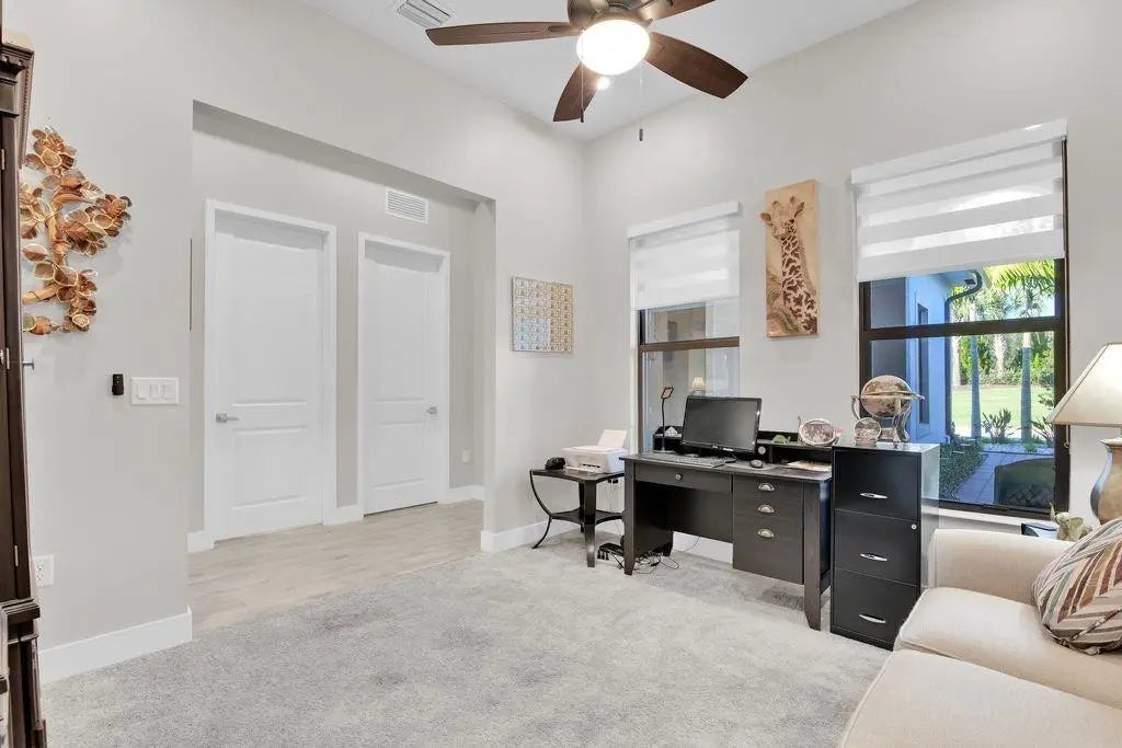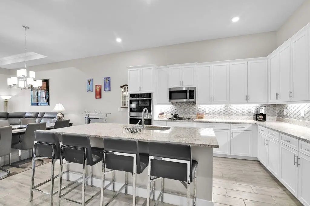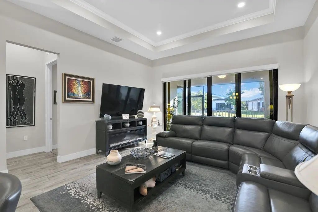 Experience luxury living in The Falls at Parkland, a premier 55+ gated resort-style community. This nearly new 3 bed, 2 bath villa features an open layout with tray ceilings and impact glass. Gourmet kitchen offers 42" custom cabinetry, gas cooktop and double wall oven. Spacious Primary Suite includes a large walk-in closet and elegant ensuite bath. Enjoy a private screened patio, fenced yard and extended pavers—ideal for outdoor lounging with a side lake view. New landscaping adds curb appeal, and a full home water filtration system provides added comfort. Residents enjoy a world-class clubhouse with heated pool, café, fitness center, pickleball, tennis, card rooms & more. Don’t miss this stunning villa!