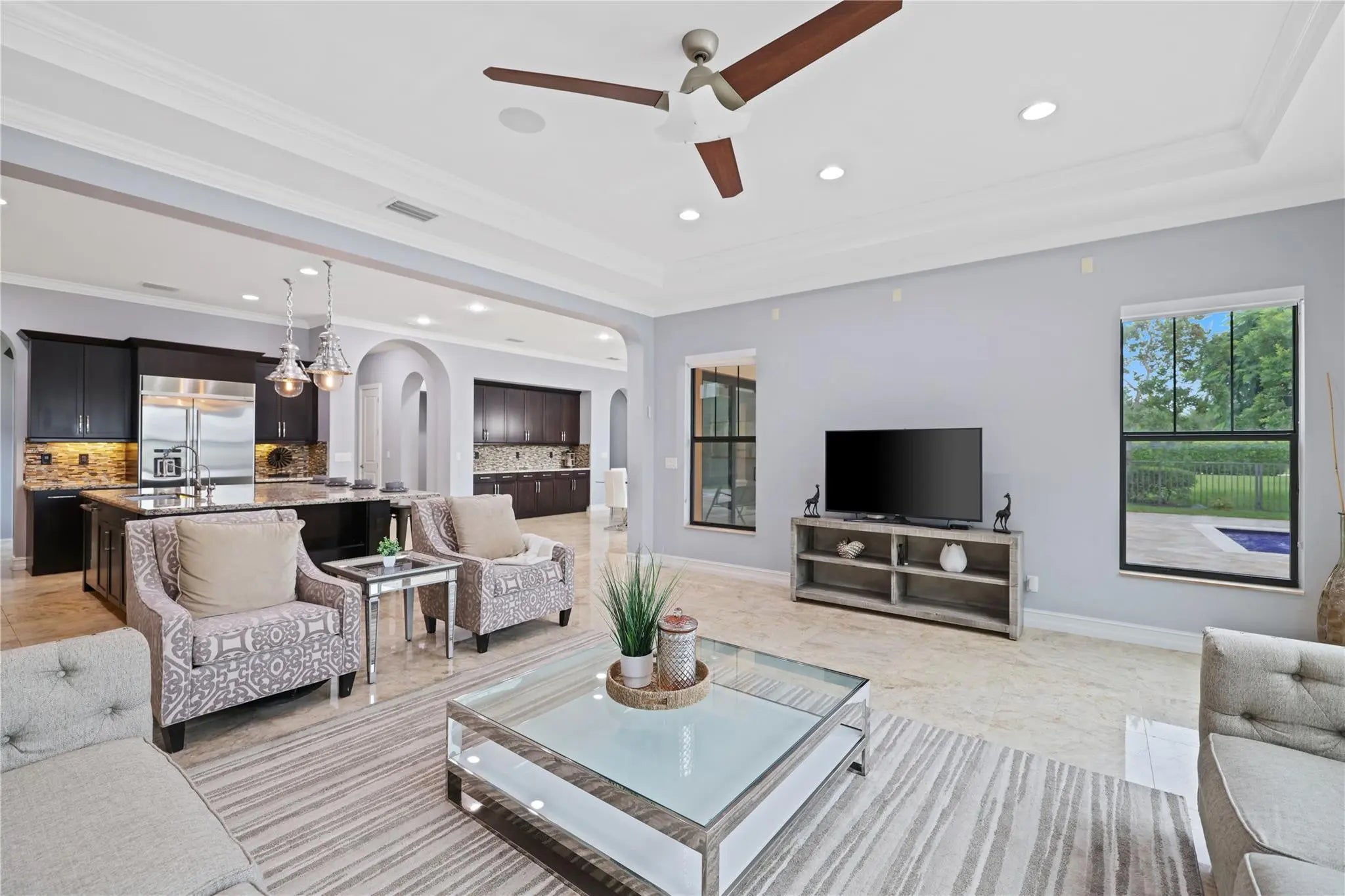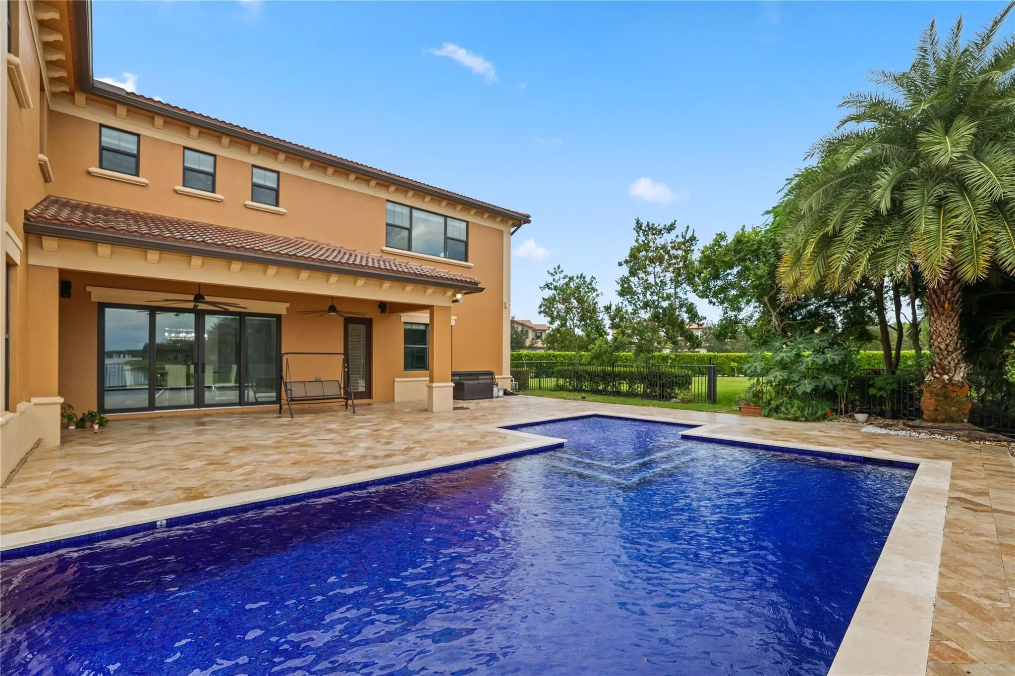 Barrington model with one of the best views Watercrest has to offer! THE LARGEST LOT in the community! Home boasts a remarkable all glass tile pool with a sun shelf and a spa on over half an acre lot with tons of yard space for kids and pets. The home has 2 full bedrooms, an office, and 1 & 1/2 baths downstairs. 4 bedrooms, 3 bathrooms, plus a HUGE media room upstairs. Primary quarters fit for royalty with dual custom built-in closets, dual vanities, a dressing area, and a BREATHTAKING water view. Marble and wood floors. Upgraded fixtures, fans, crown molding, and window treatments throughout. HUGE butler's pantry.