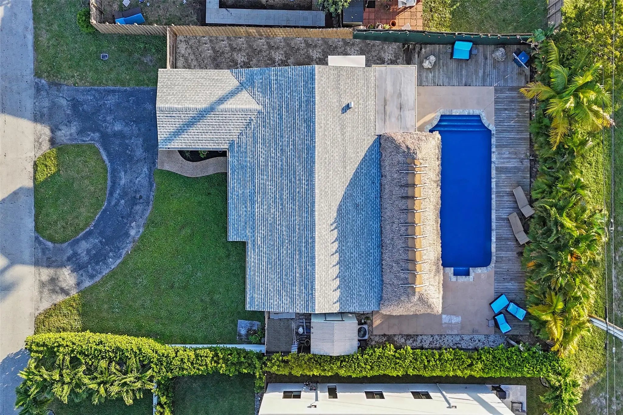 Discover your private tropical retreat in this 3 Bedroom, 2 Bathroom home in desirable East Oakland Park. The backyard offers a resort-style escape with a sparkling pool and an expansive tiki hut perfect for relaxing or entertaining. Inside, enjoy a bright open concept with a split floor plan for both flow and privacy. The kitchen and living areas connect seamlessly, complemented by a 2023 roof and interior laundry room. The primary suite opens directly to the backyard, while two additional bedrooms offer versatile use. A one-car garage provides added storage or potential flex space, with side yard space offering room to park a boat. Minutes to the beach, downtown Oakland Park, Wilton Drive, and top local dining this home blends comfort, style, and the South Florida lifestyle.