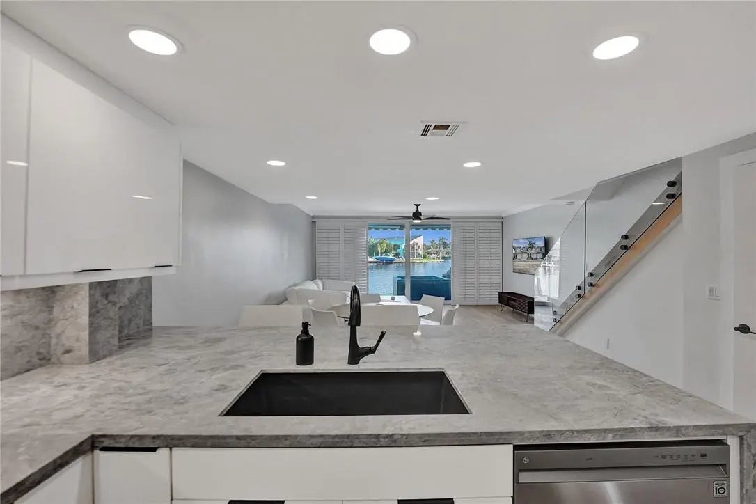 Experience true waterfront living in this Direct Intracoastal 3BR/2.5BA townhome with a one-car garage in a premier gated East Boca community, perfectly situated between Downtown Boca and Delray Beach. This stunning Mid-Century Modern renovation showcases a sleek open kitchen, high-gloss cabinetry, Carrara-style waterfall counters, and state-of-the-art appliances. Enjoy Nordic-inspired Italian porcelain flooring in natural light-washed oak (10x60) throughout, spa-inspired baths, and seamless glass railings on the stairs and upper hallway. Fully outfitted with PGT impact windows and doors. Step outside to your private waterfront oasis, watch the sunrise and boats cruise by while you unwind in your outdoor hot tub. Truly a showstopper!