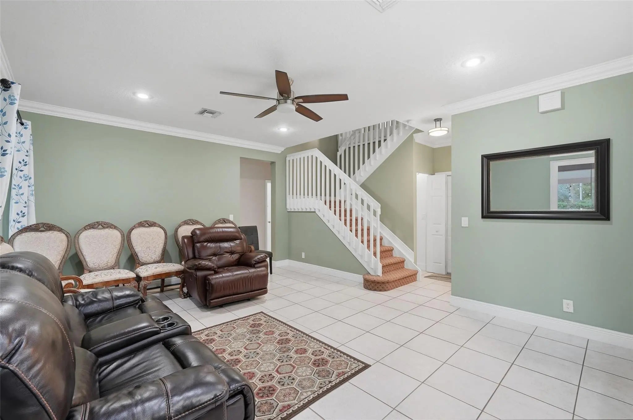 LOCATED IN THE GATED COMMUNITY OF COQUINA, THIS 5-BED, 3-BATH RESIDENCE IS PRIVATELY SITUATED ON A CUL-DE-SAC. THE HOME FEATURES CROWN MOLDING THROUGHOUT, CATHEDRAL CEILINGS, AND A FORMAL DINING ROOM. THE LARGE KITCHEN IS EQUIPPED WITH STAINLESS STEEL APPLIANCES, ABUNDANT CABINETRY, WITH WINDOWS PROVIDING NATURAL LIGHT. THE PRIMARY SUITE IS LOCATED ON THE 2ND FLOOR AND OFFERS A LARGE SITTING AREA THAT COULD BE CONVERTED INTO AN ADDITIONAL BEDROOM. A FULL BATH AND TWO BEDROOMS ARE CONVENIENTLY LOCATED ON THE 1st FLOOR. PRIVATE FENCED BACKYARD INCLUDES A SCREENED-IN PATIO, PAVER WALKWAYS, AND AMPLE OUTDOOR SPACE. 2-CAR GARAGE PLUS A THIRD BAY IDEAL FOR STORAGE OR A GOLF CART. COMMUNITY POOL AND PLAYGROUND.