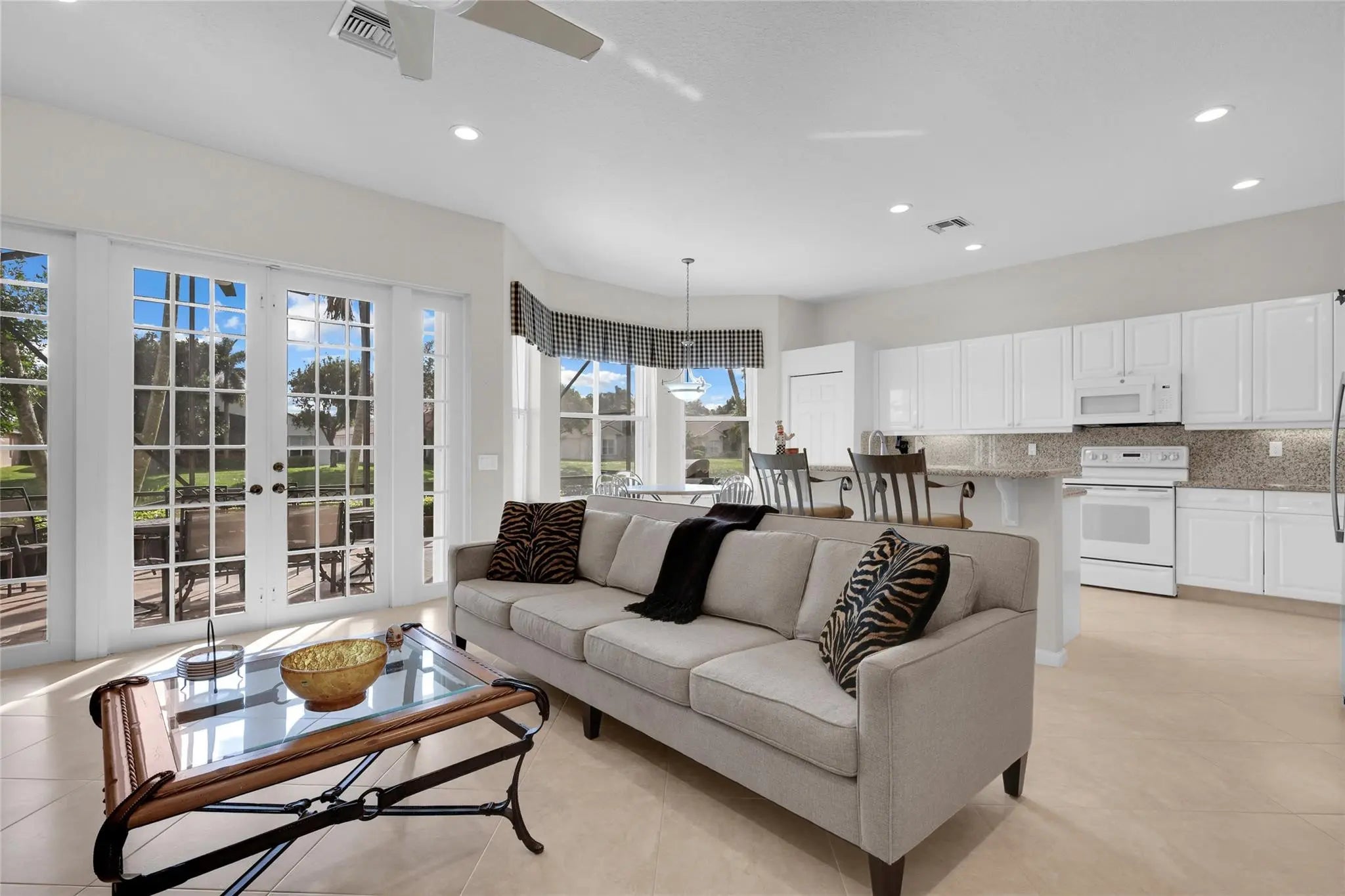 PRICE REDUCED! Lake View Home in the highly sought after Valencia Isles. This 3 Bedroom (one used as den)/2 Bath, 2 car garage Mediterranean Model home is move in ready. Lots of water views from the master bedroom, family room & kitchen. The open layout features spacious living & dining areas, high ceilings, walk-in closets & extended screened patio overlooking the water. Tons of natural light, new LED Lighting, New Roof 2021, New AC 2020 & Accordion hurricane shutters. Entire exterior of home is being REPAINTED by the HOA in 2026 at no cost. Valencia Isles is a 55+ community where owners can enjoy a newly renovated clubhouse, fitness & wellness center, 3 pools, tennis & pickleball, on-site cafe, & year-round activities--all minutes from shops, dining, golf, & beaches.