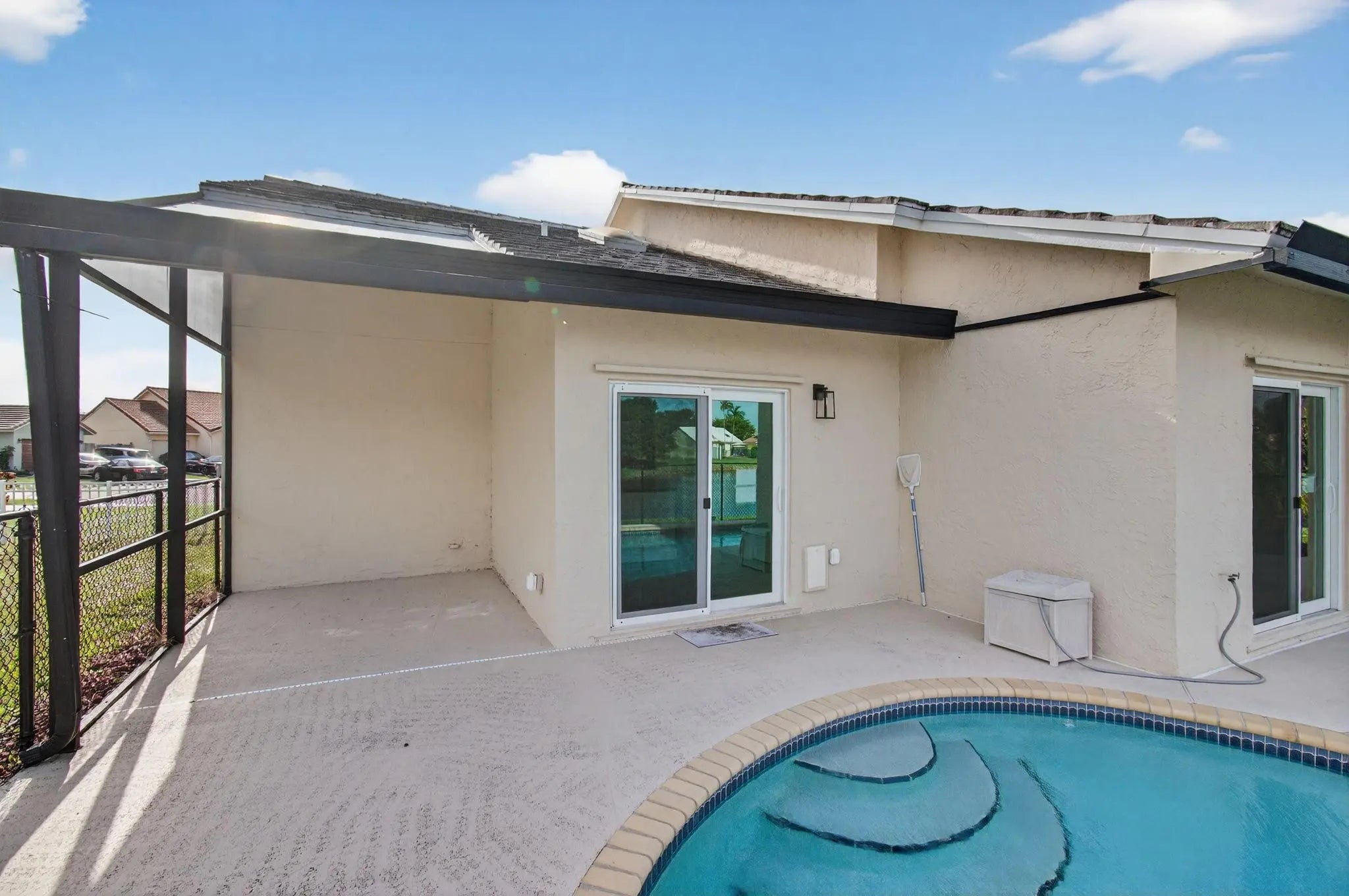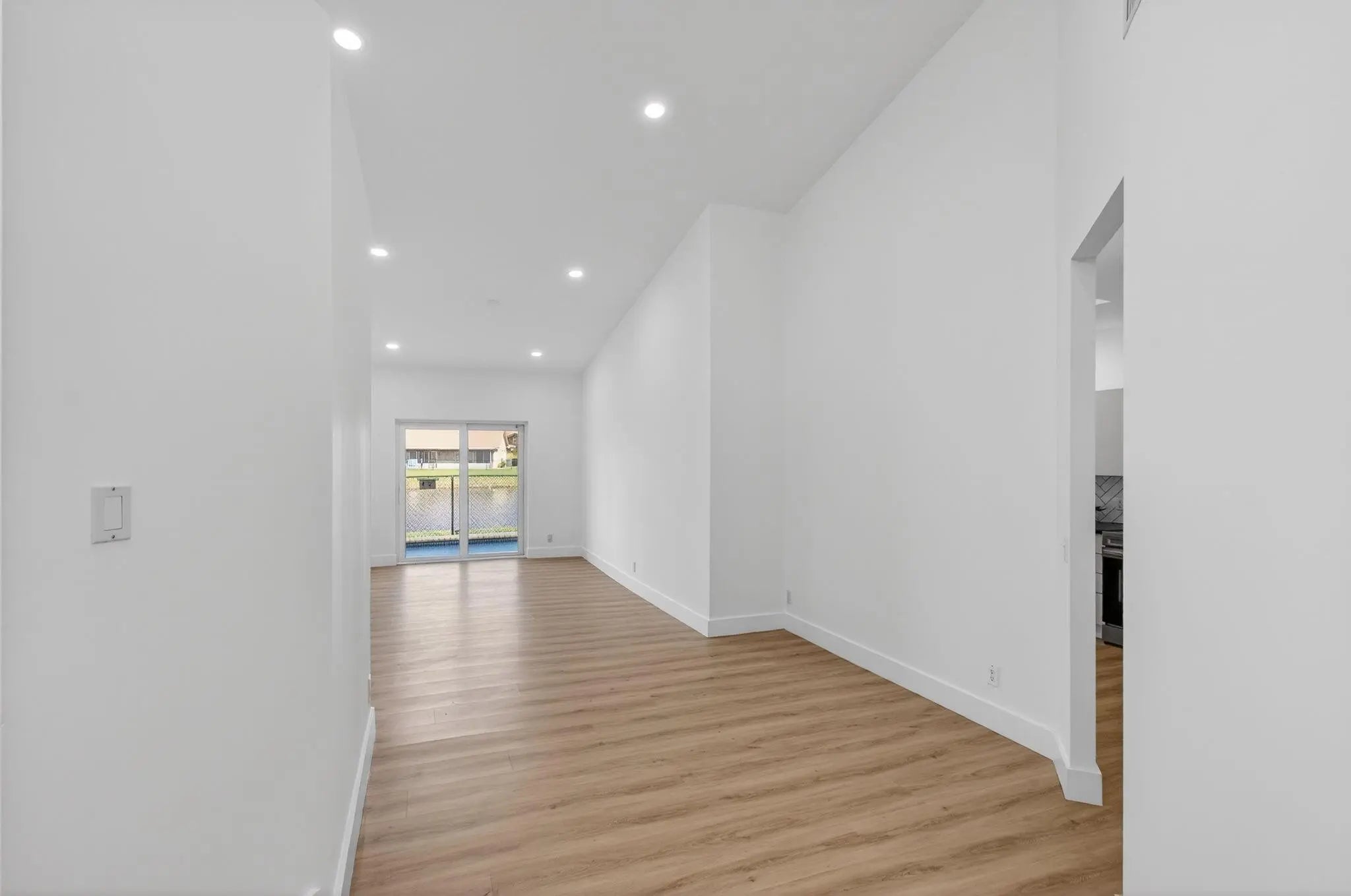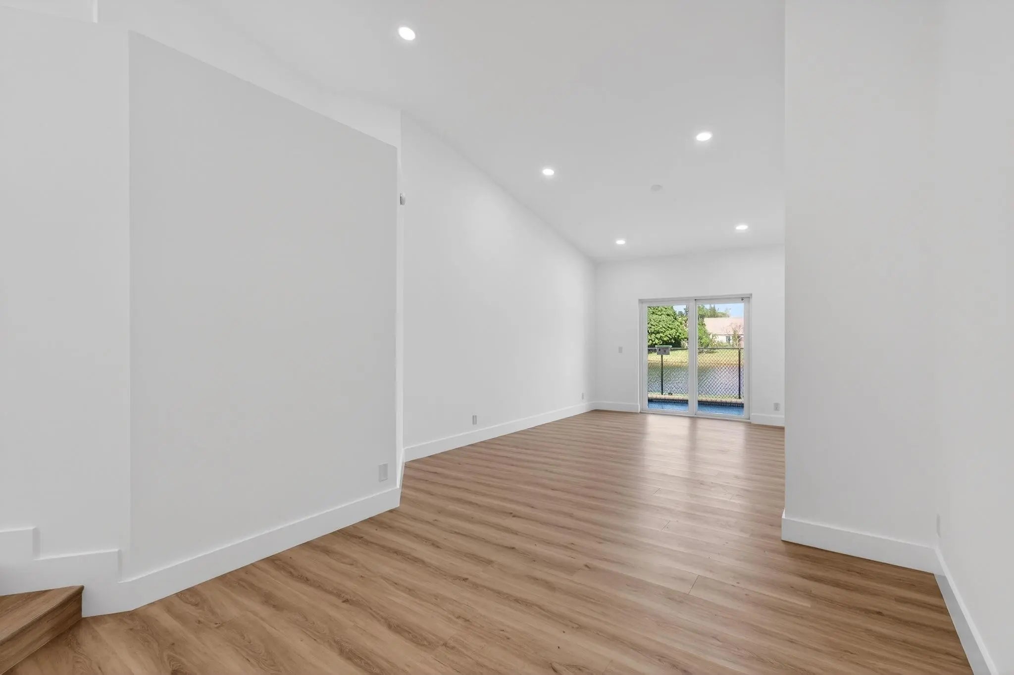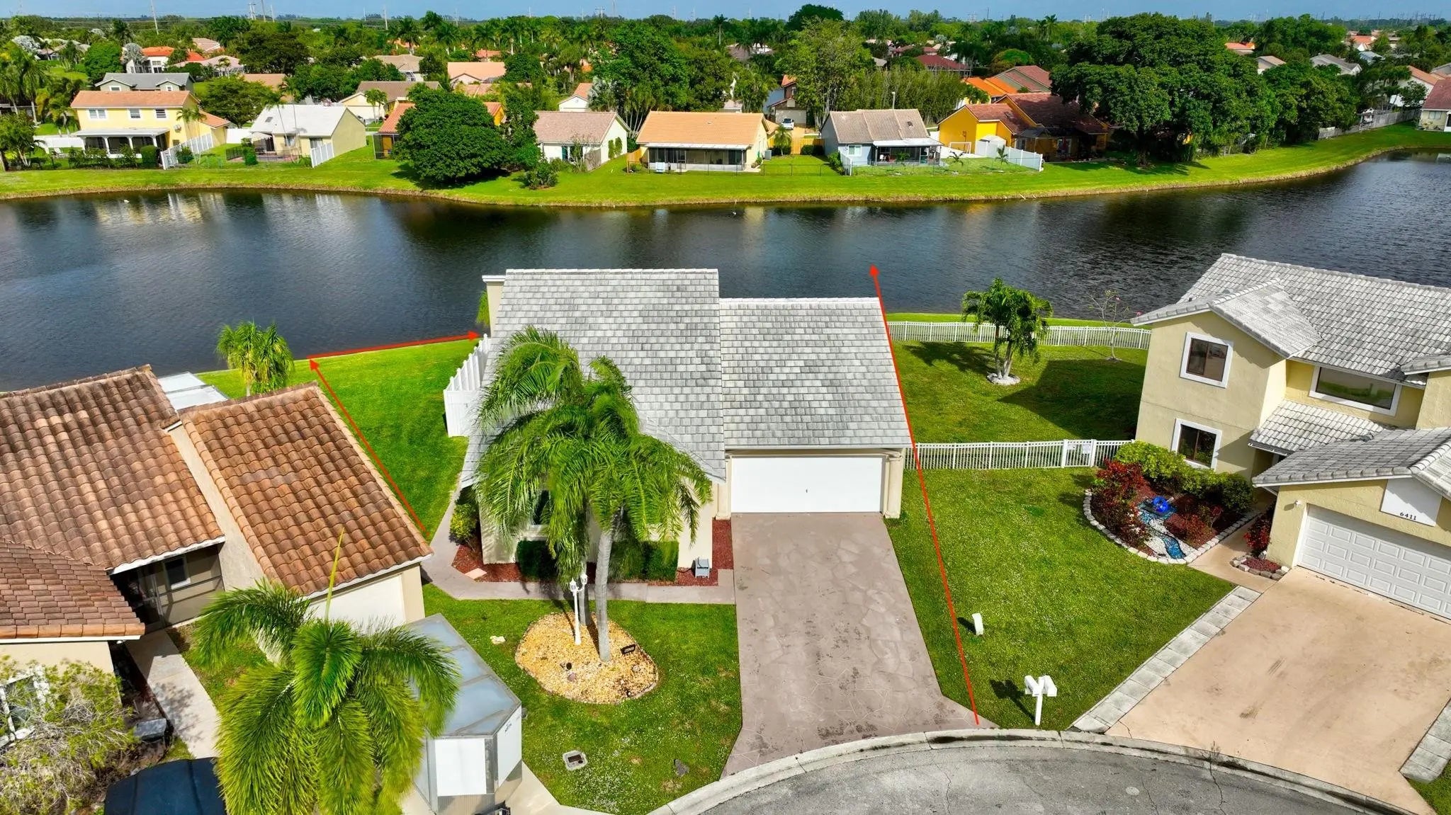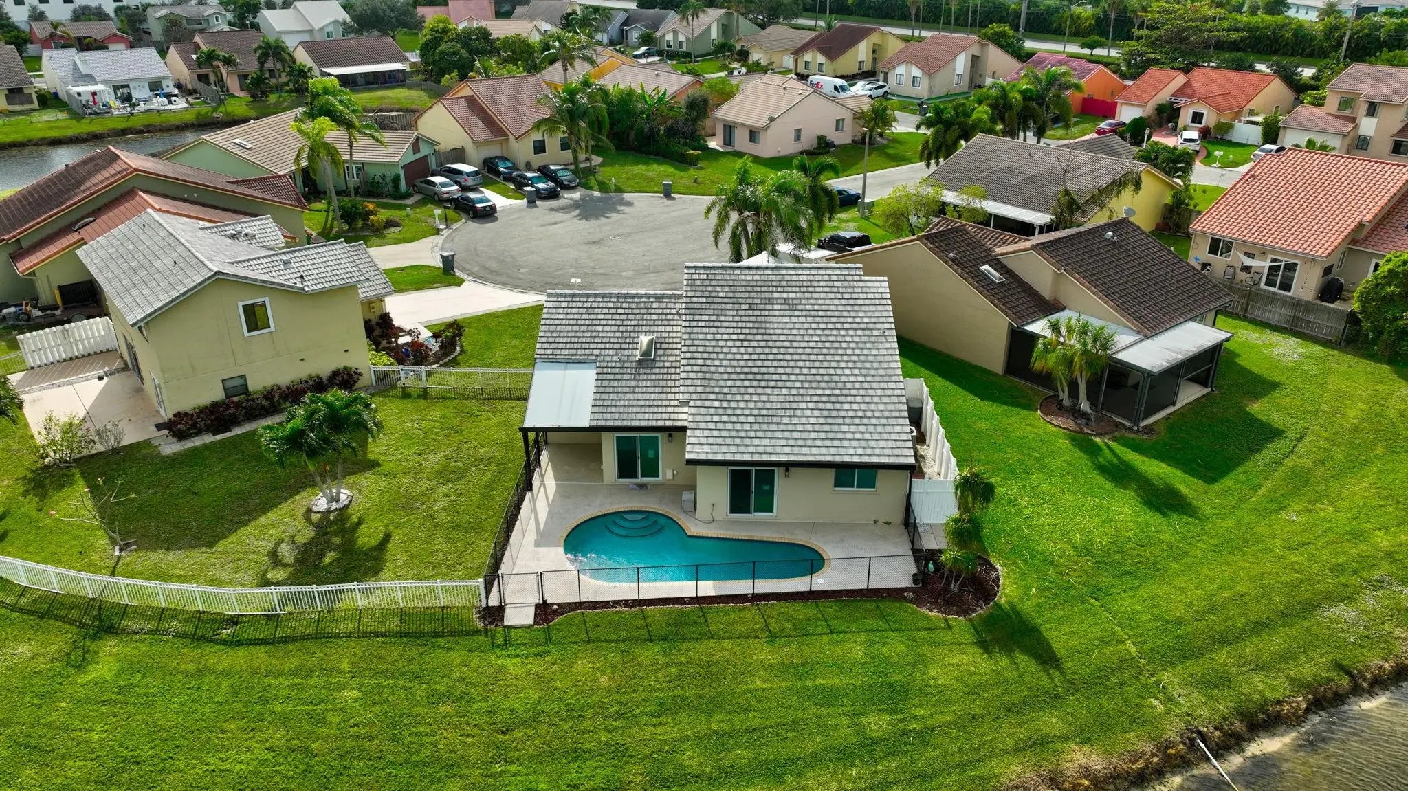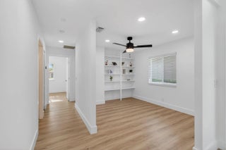 NEW PRICE IMPROVEMENT. Beautiful, newly remodelled, waterfront pool home on a cul-de-sac. Featuring high volume ceilings, split plan - 3 bedrooms plus 4 bedroom/office/den. Impressive foyer entry, clerestory windows & high volume ceilings. Completed & permitted, impact doors/windows, NEW electrical panel & outlets, NEW fire alarms, NEW primary bathroom, NEW luxury waterproof wide plank wood look vinyl flooring throughout, NEW modern baseboards, door trim. NEW stove, NEW dishwasher, NEW countertop microwave, NEW backsplash, & skylight. NEW lights & fans. NEW fresh paint throughout. Eat-in kitchen, lake views & access to pool/patio. Pantry/utility closet, Separate laundry room with cabinetry, Extended garage, extra storage, workbench & cabinetry. HVAC 2018. Move-in ready! Gate is not used.