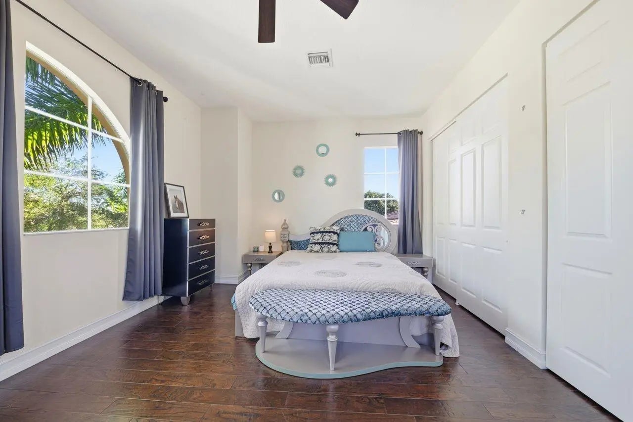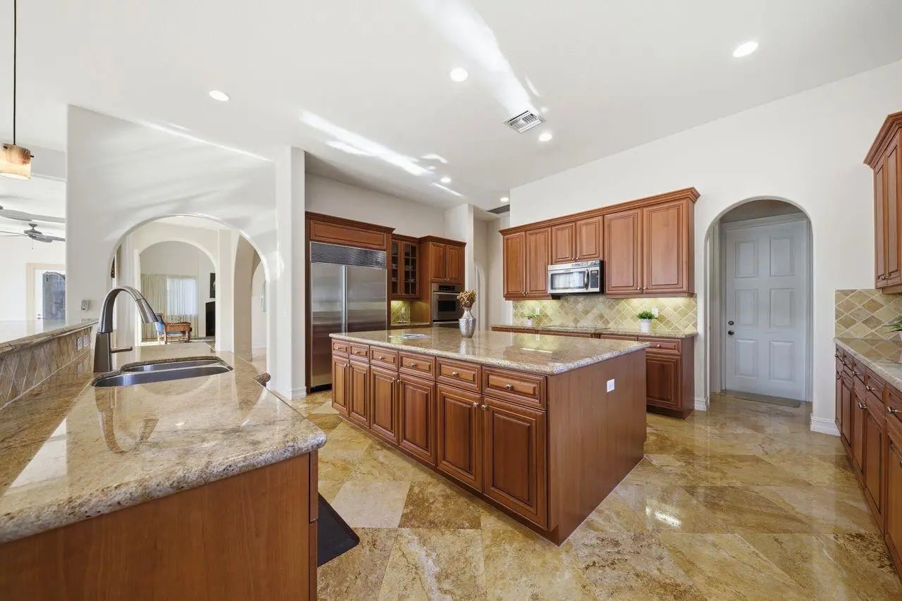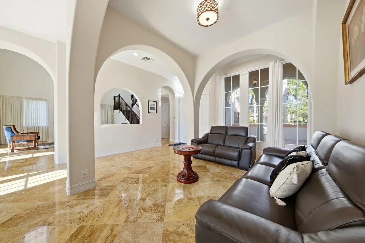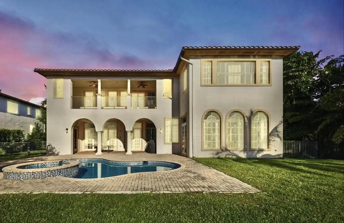 Welcome to this refined Mediterranean-style home, offering an Open 2-story layout filled with Natural light. With 5 bedrooms and 4.5 bathrooms, blends Elegance and Comfort, featuring Sleek natural Marble flooring, Soaring High Ceilings, graceful Archways, and a cozy Fireplace. The oversized Gourmet Kitchen is a chef’s delight, showcasing Hardwood Cabinetry, Granite Countertops, a Central Cooking Island, and Premium Stainless-Steel Appliances. Step into the resort-style pool area, Enjoy Serene Water Views—ideal for Entertaining and Unwinding. One Bedroom & a Full Bath Downstairs; Spacious Primary Suite plus 3 additional Bedrooms & 2 Baths Upstairs. Set in a peaceful gated community w/ two Clubhouses, Gyms & Amenities, Top-Rated schools. Don’t miss this opportunity.