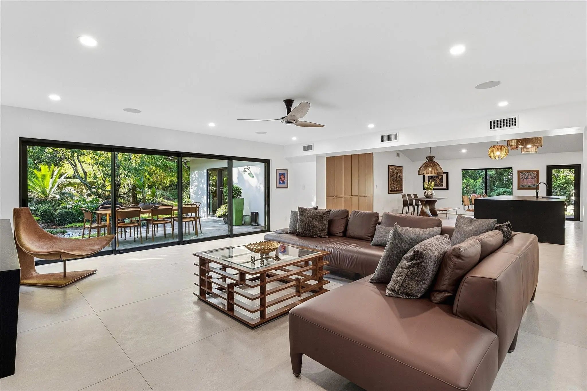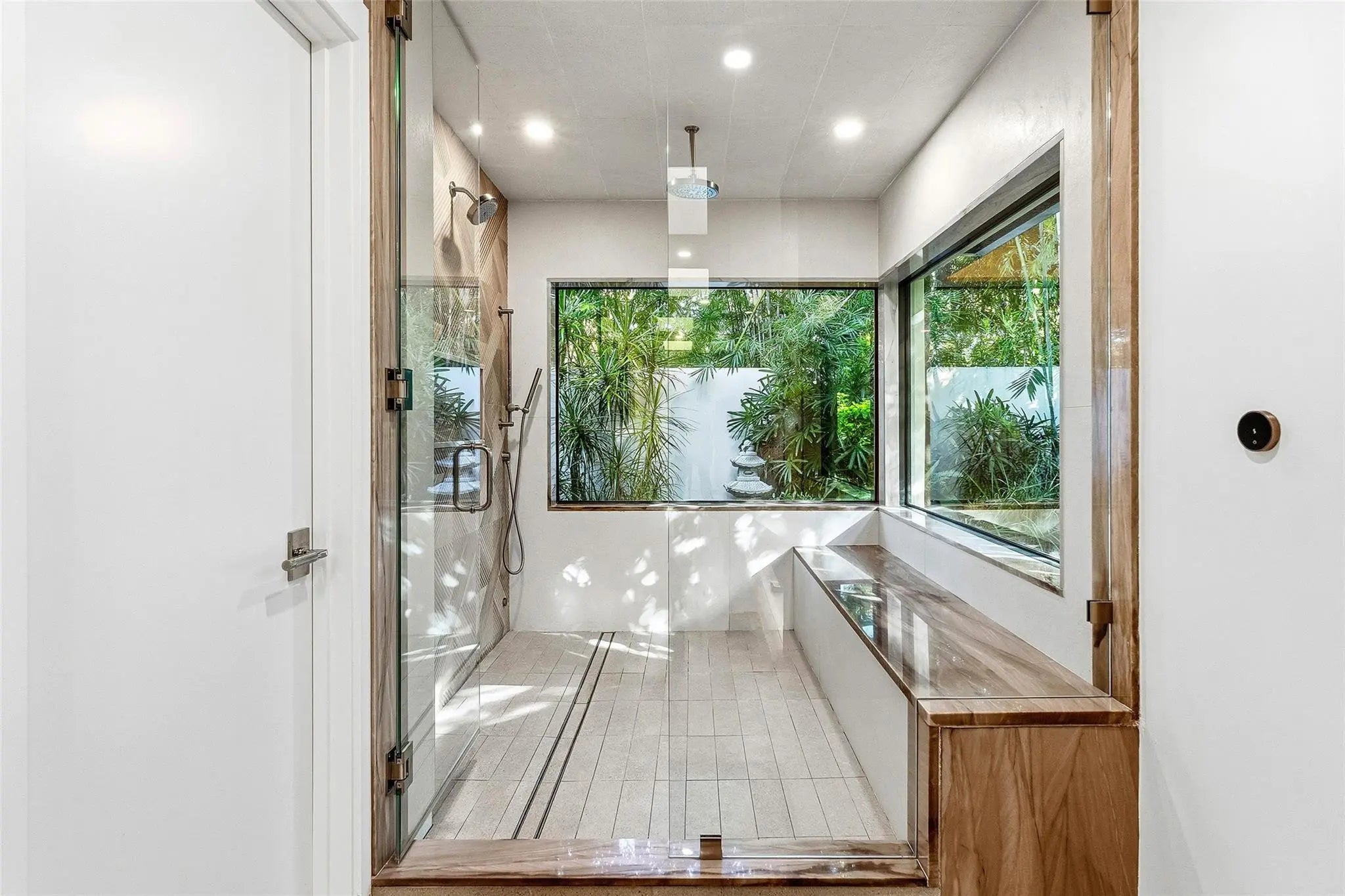 RSVP FOR GATE ACCESS. Custom renovation completed in 2023, this architecturally refined residence features a new roof, plumbing, electrical, windows, and septic system—offering modern infrastructure paired with exceptional design. Privately set on 1.15 acres within one of Boca Raton’s most coveted gated communities, the home showcases elevated craftsmanship, bespoke finishes, and thoughtful detailing throughout.Reimagined with a modern aesthetic, the interiors are distinguished by expansive porcelain tile flooring, custom oak cabinetry, a separate office for those working from home, and a designer chef’s kitchen appointed with premium appliances and tailored millwork—crafted for both everyday living and elevated entertaining. Full-home automation enhances comfort and functionality, while walls of impact glass and fully opening Euro-style sliders flood the home with natural light and create a seamless connection to the outdoors. The living spaces extend to lush, professionally landscaped grounds, where a heated saltwater pool and serene garden views are framed by mature trees, creating a private, estate-like retreat. With generous acreage, curated custom finishes, and a sophisticated design sensibility, this residence presents a rare opportunity to enjoy luxury living in one of Boca Raton’s most prestigious communities.The home is situated one mile from the future Chabad Chai Center of Boca-with anticipated completion in two years. The property offers a rare balance of accessibility and privacy within the gated enclave of Long Lake Estates.
