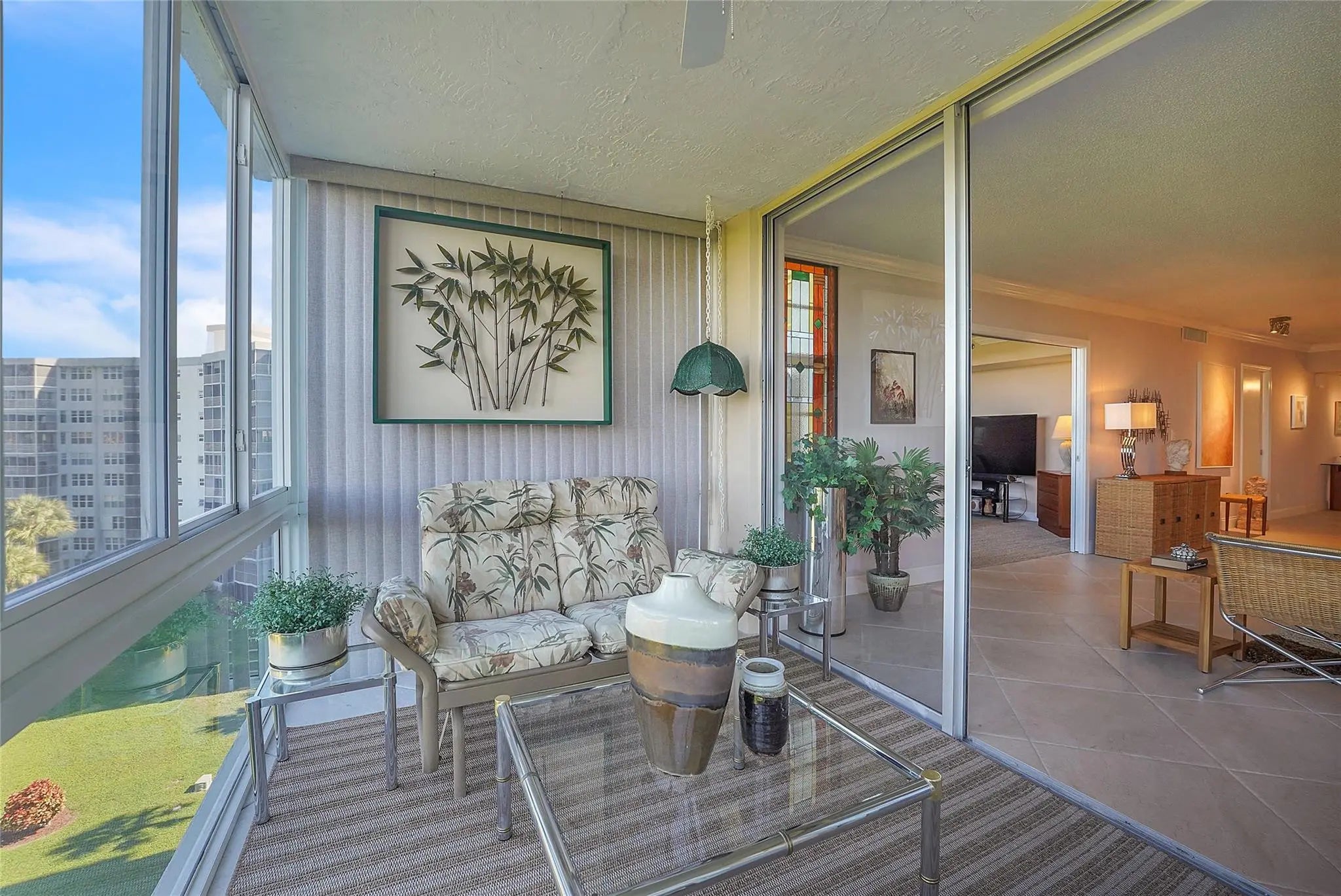 Elevated living meets effortless style in this stunning 7th-floor 3-bedroom, 2.5-bath “F” model condo right next to George Brummer Park. Step outside to tennis, pickleball, basketball, volleyball, outdoor fitness stations, and a tot lot—right at your doorstep. Inside, 1,710 sq. ft. of thoughtfully redesigned space showcases full impact glass throughout, including the enclosed, windowed porch with sweeping treetop views of the Oaks Golf Course and tranquil lagoon. Neutral tile floors anchor the living areas, while the stunning chef’s kitchen impresses with granite countertops, stainless steel appliances, custom lighting, and a gorgeous backsplash. All bathrooms were completely renovated, including a generously expanded guest bath that incorporates hallway space. Offered fully furnished. Professionally Designed 7th-Floor Palm Aire Condo Overlooking Golf Course & LagoonElevated living meets effortless style in this stunning 7th-floor 3-bedroom, 2.5-bath “F” model Palm Aire condo, beautifully positioned beside George Brummer Park. Step outside to tennis, pickleball, basketball, volleyball, outdoor fitness stations, and a tot lot—right at your doorstep.Inside, 1,710 sq. ft. of thoughtfully redesigned space showcases full impact glass throughout, including the enclosed, windowed porch with sweeping treetop views of the Oaks Golf Course and tranquil lagoon. Neutral tile floors anchor the living areas, while the showstopping chef’s kitchen impresses with granite countertops, stainless steel appliances, custom lighting, and a gorgeous backsplash.Both bathrooms have been completely renovated, including a generously expanded guest bath that smartly incorporates additional hallway space. Every detail reflects professional design and décor, creating a polished, move-in-ready residence that blends comfort, functionality, and scenic beauty.