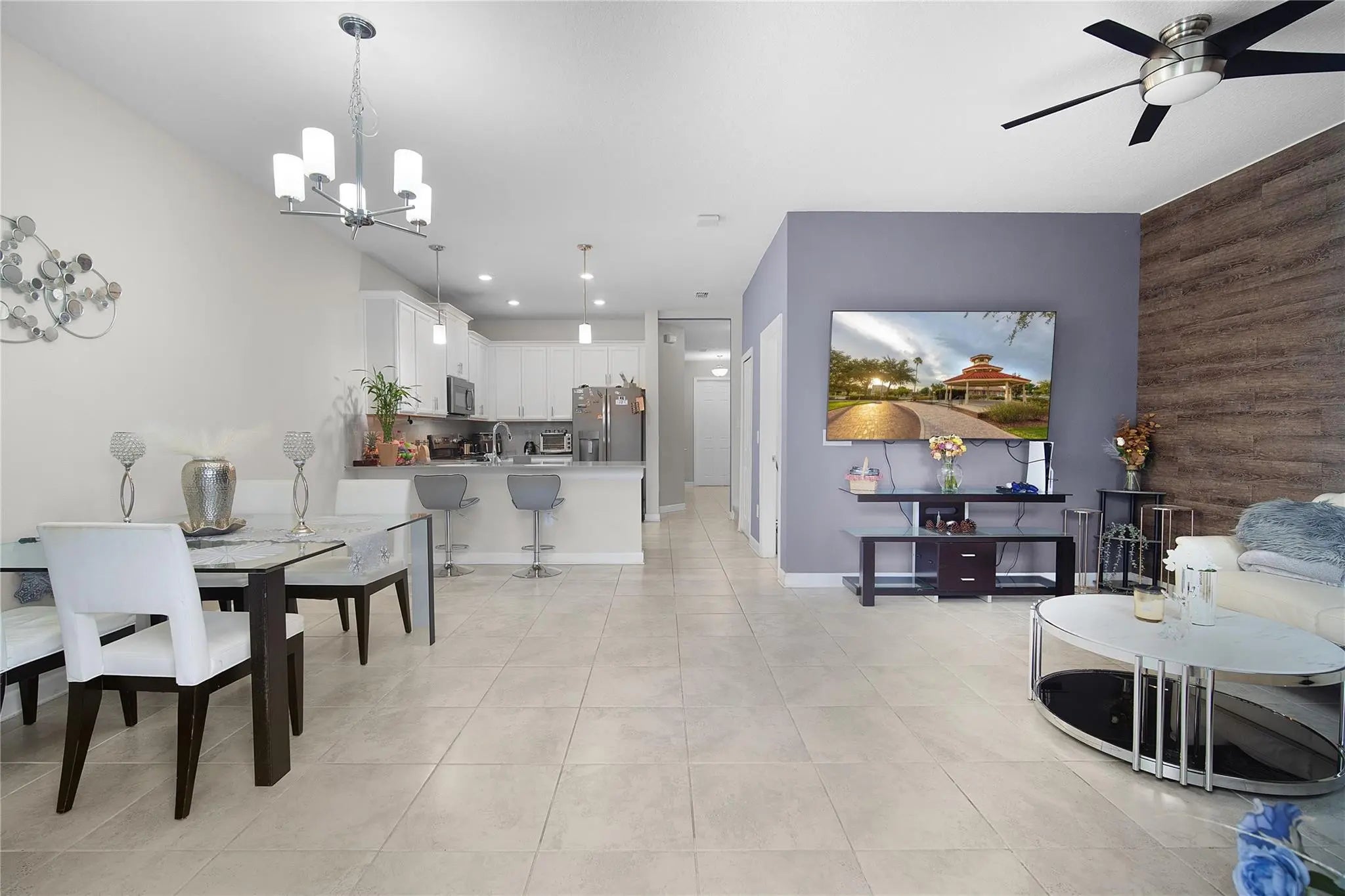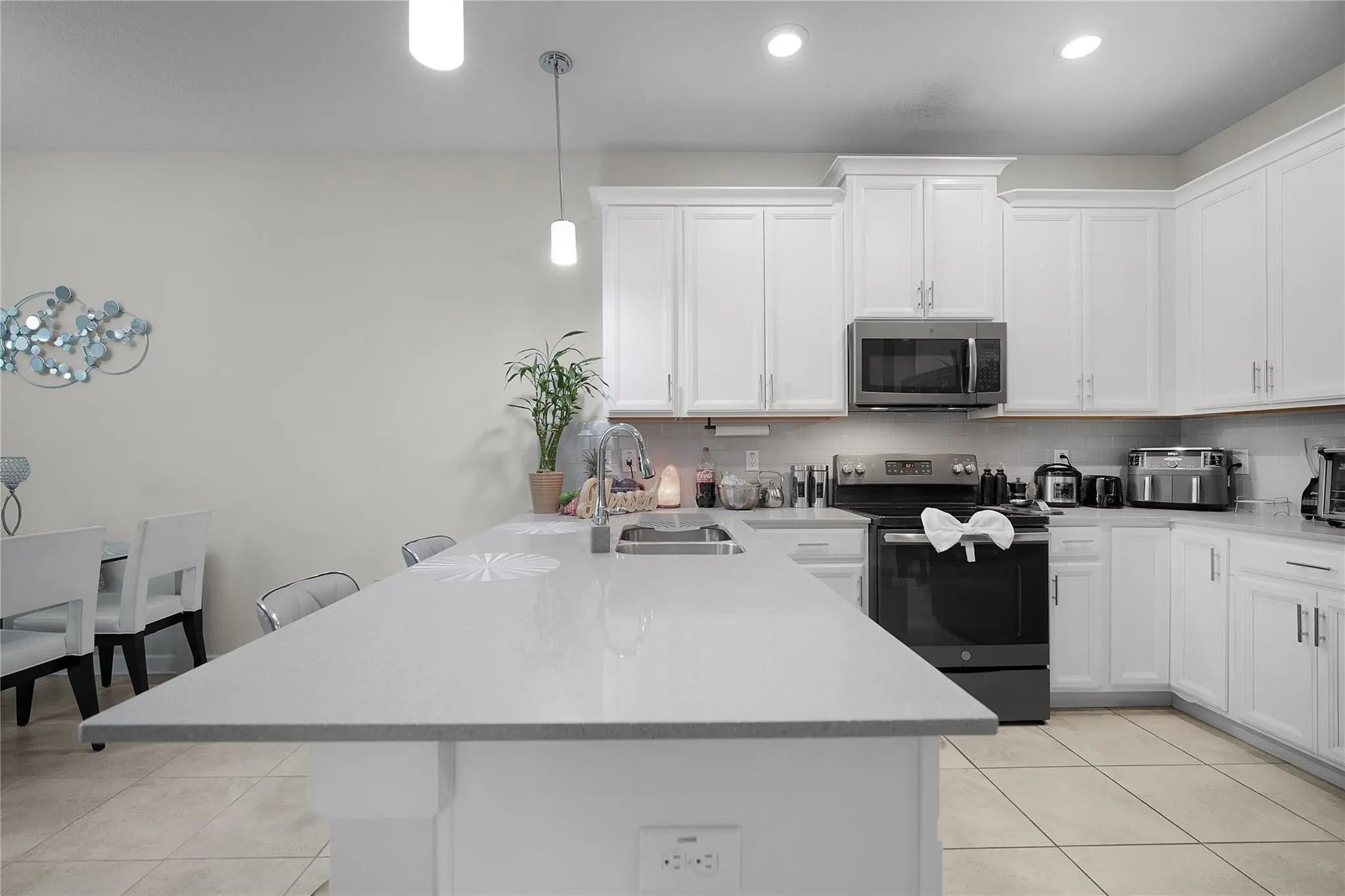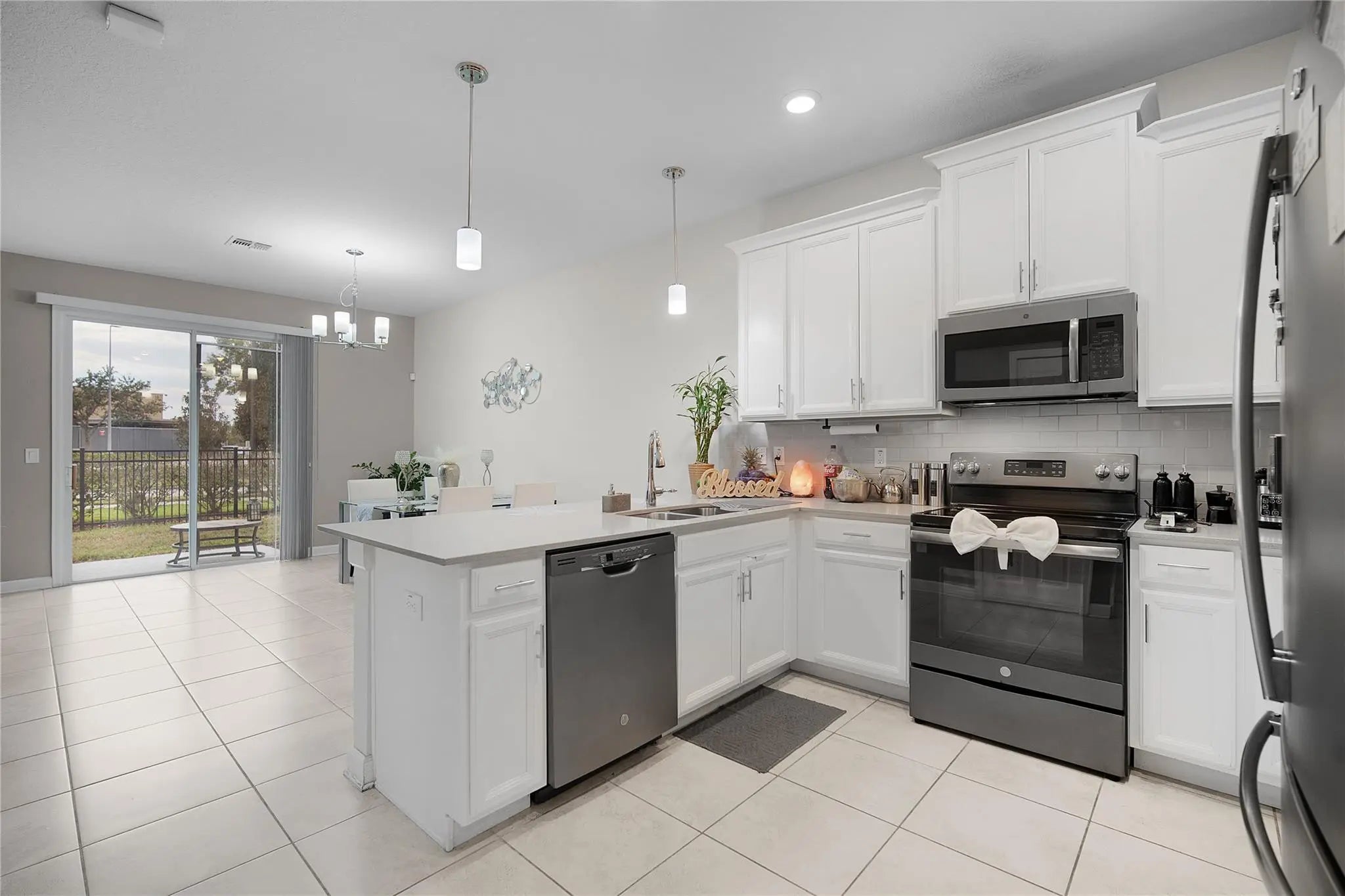 Prime location! This is not a vacation community—short-term rentals are not permitted. Beautiful, well-maintained 3-bedroom, 2.5-bath townhome in the gated community of Story Lake. Features an open layout with a central kitchen offering 42" cabinets and quartz countertops, flowing into the living and dining areas. Sliding glass doors open to a private patio with serene green views. Spacious primary suite with walk-in closet, dual sinks, and large shower. HOA includes internet and cable. Resort-style amenities include pool, fitness center, dog park, playground, and more. Just 5 miles from Walt Disney World and minutes to Disney Springs, shopping, dining, and major highways.