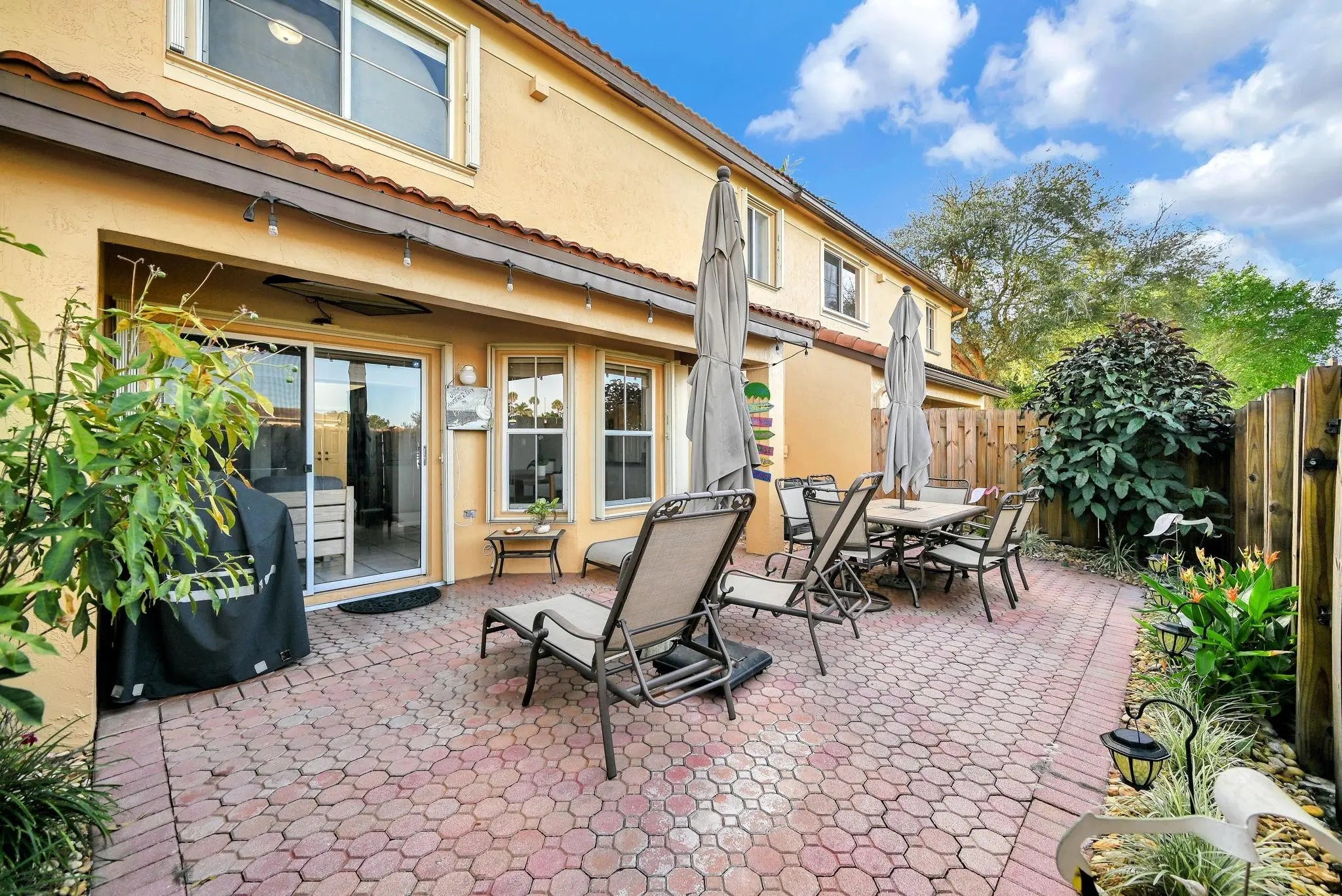 Located in a quiet, gated community in Davie, this charming townhouse offers comfort, space, and privacy. Natural light pours through the home, creating a bright and airy feel throughout. The layout includes 3 bedrooms and 2.5 bathrooms. The garage has been converted into a versatile bonus room, ideal for a home office, gym, or playroom. A spacious driveway accommodates up to 4 cars, and the community also offers plenty of guest parking. The primary suite features 2 closets and a spacious bathroom designed for comfort and relaxation. Enjoy outdoor living in the beautifully maintained patio with no neighbors behind, offering added privacy. With a newer roof replaced in 2022 and access to a community saltwater pool, this home is move in ready and full of charm!