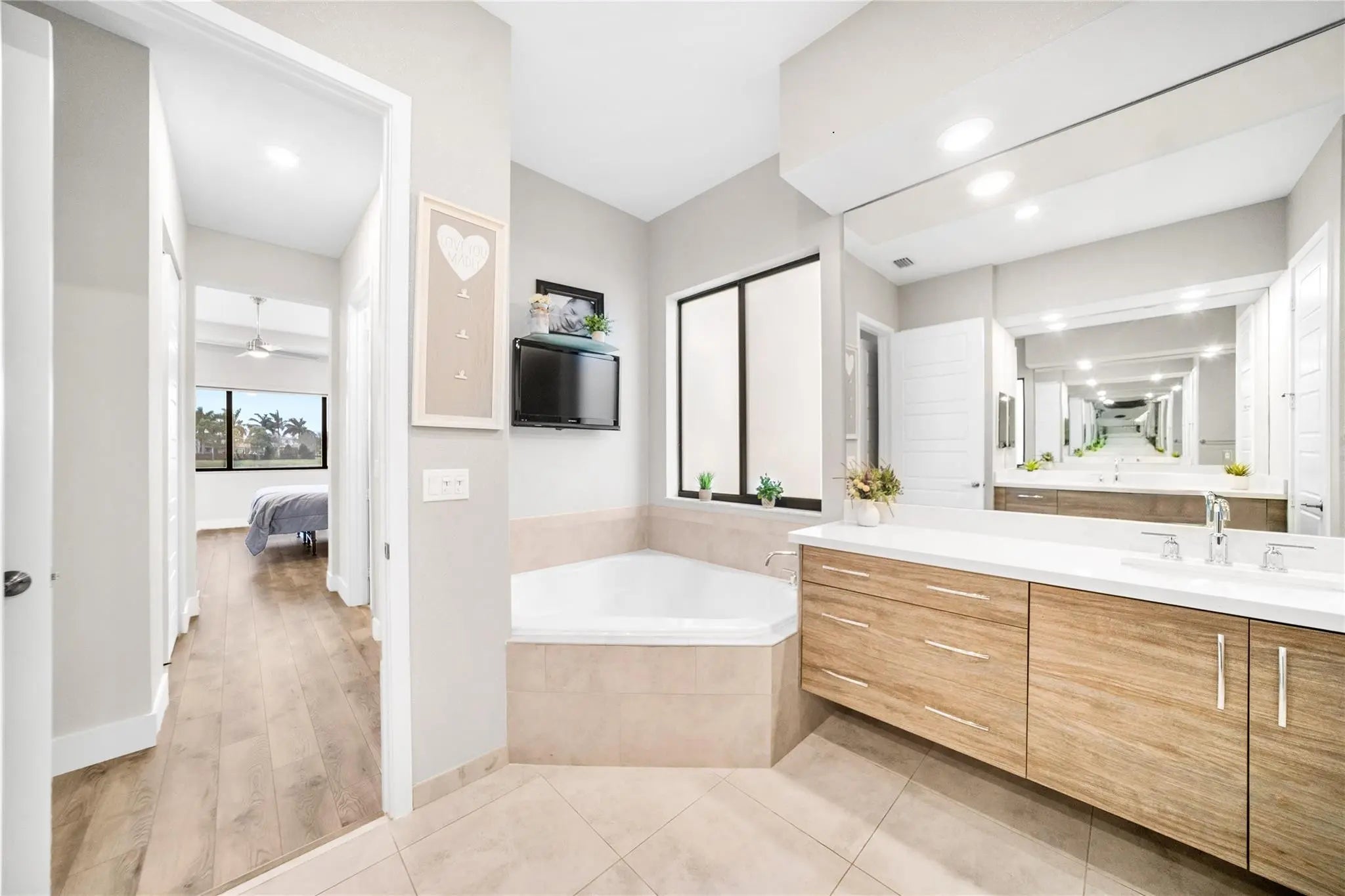 Over $150k In Updates At Your New Dream Home! Popular Angel Tri-Split Model Floorplan w/4 Full Beds, 3 Baths, Fenced-In Patio Oasis w/Newer Heated Swimming Pool w/Spa & Sun Shelf, Summer Kitchen w/Pergolia, Bar w/More Located On A Waterfront Lot w/3-Car Garage & Dual Driveways. Chef's Kitchen w/Quartz Counters, Gas Cooking, Breakfast Area, Dual Ovens, & Stainless Steel Appliances. Primary Suite w/Sitting Area, Walk-In Closets, Separate Sinks, Tub & Shower. Impact Windows & Doors & On Gas. Patio w/Astro Turf, Breathtaking Water Views Ideal For Entertaining. 24-Hour Guard Gated Community. HOA Includes Landscaping, Resort Style Amenities, 2 Clubhouses, Fitness Centers, Community Pool & Spas, Basketball & Tennis Courts, & Much More. Close To Shopping, Restaurants, A-Rated Schools & Much More!