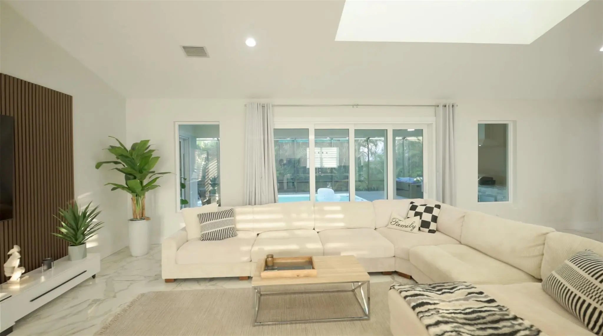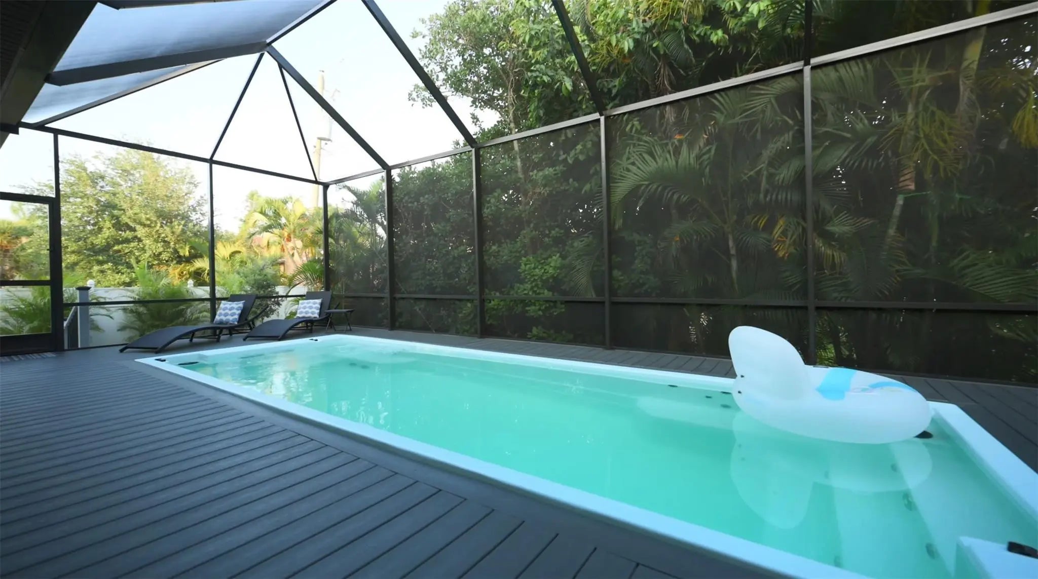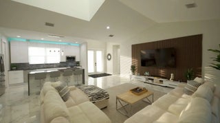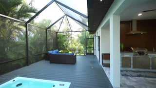 This custom home combines modern design in a prime location just 10 minutes from Venice Beach and downtown. Set at the end of a quiet street, it offers added privacy. The nearly 3,400 sq ft open floor plan includes 3 bedrooms, 3 baths, and a 780 sq ft garage. Built on a 7-course stem wall, the home features impact windows and doors, a 14-ft foyer, and a primary suite with two walk-in closets, walk-in shower, and freestanding tub. The kitchen showcases a large island, Blue Pearl granite, high-gloss cabinetry with lighting, and premium appliances. Porcelain tile runs throughout. Outdoor highlights include a covered lanai with summer kitchen, heated swim-spa pool, Trex deck, metal roof, paved drive, and landscaped backyard. Near parks, trails, yacht club, and ferry beach—ideal Florida living.