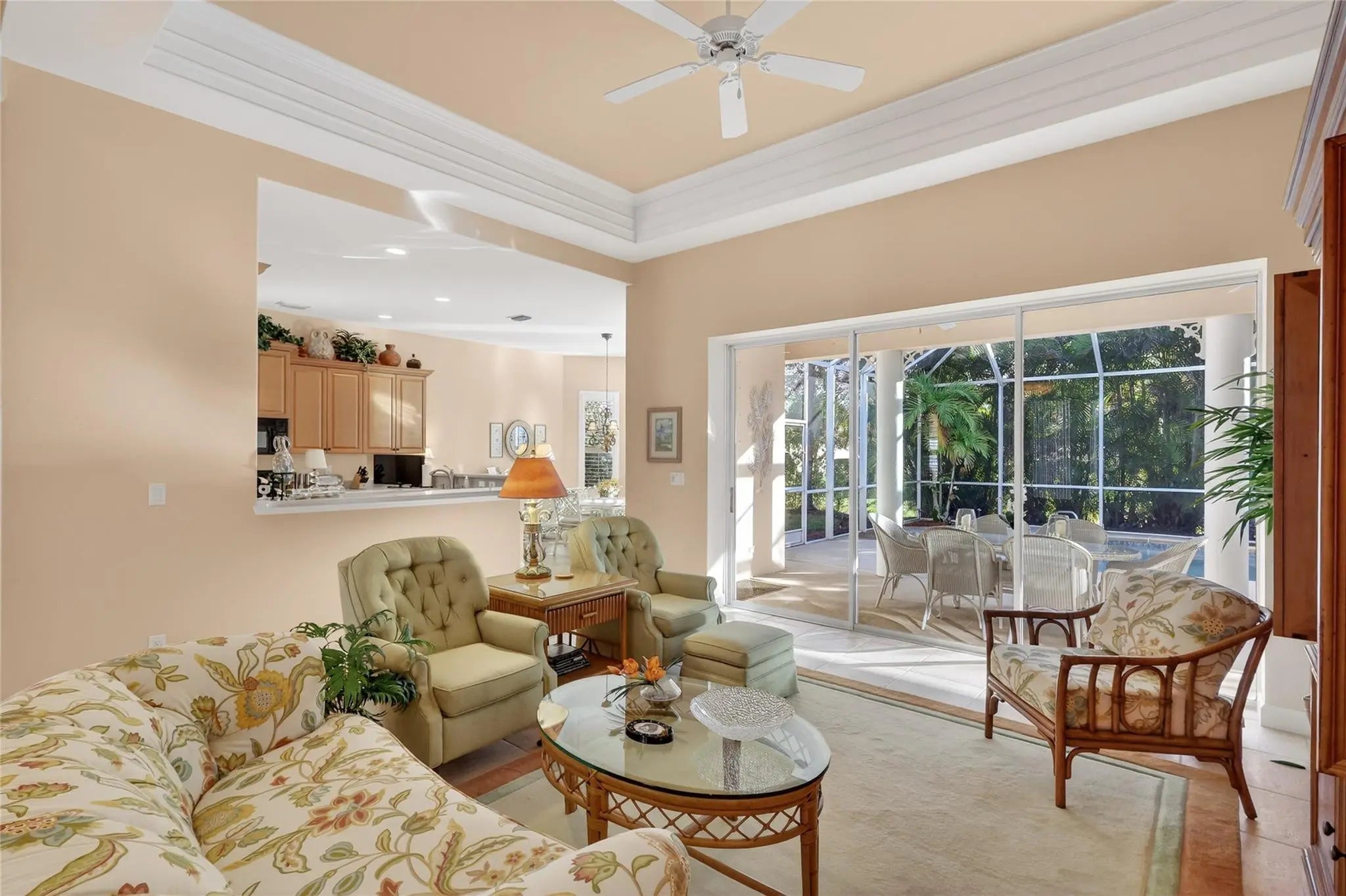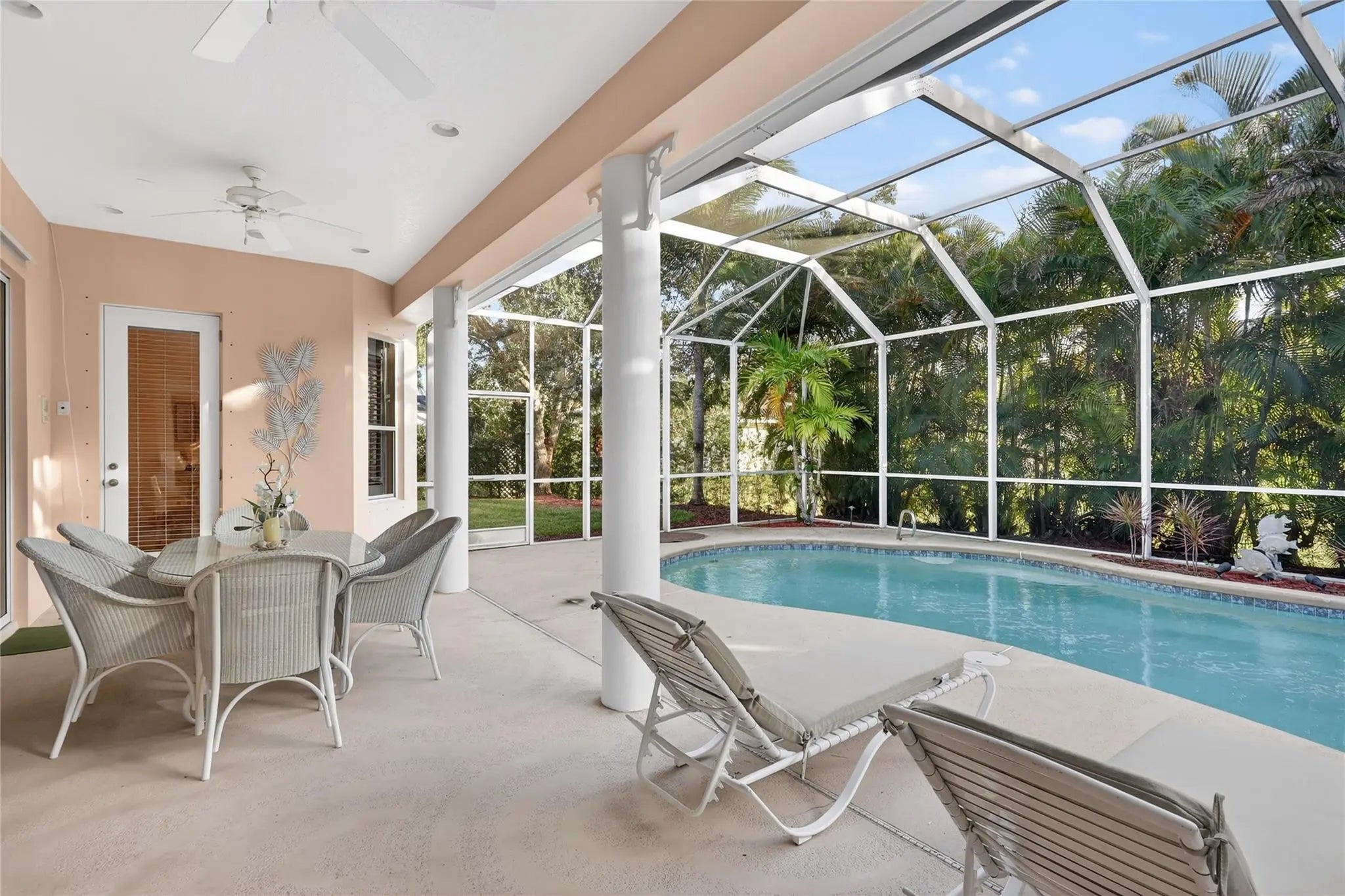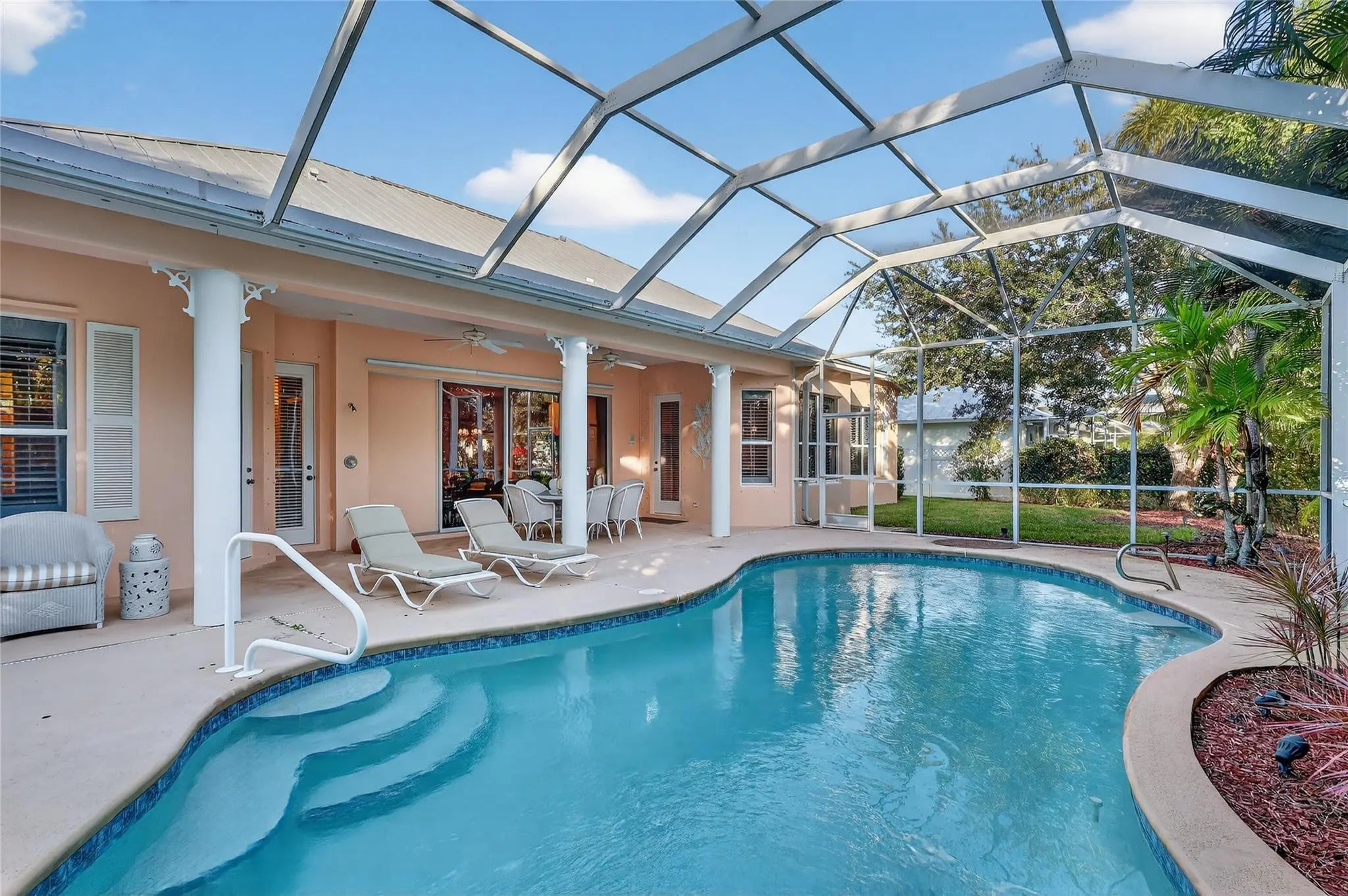 Located within the private, gated community of Oak Chase, this thoughtfully designed three-bedroom, three-bath residence with a bonus room features a desirable split-floor plan suited for both comfortable living and effortless entertaining. The home provides generous living space and includes a spacious three-car garage, an oversized paver driveway, and a durable metal roof. Step outside to a serene pool retreat, perfect for relaxing or hosting guests. Available fully furnished and decorated, creating a truly turnkey opportunity.