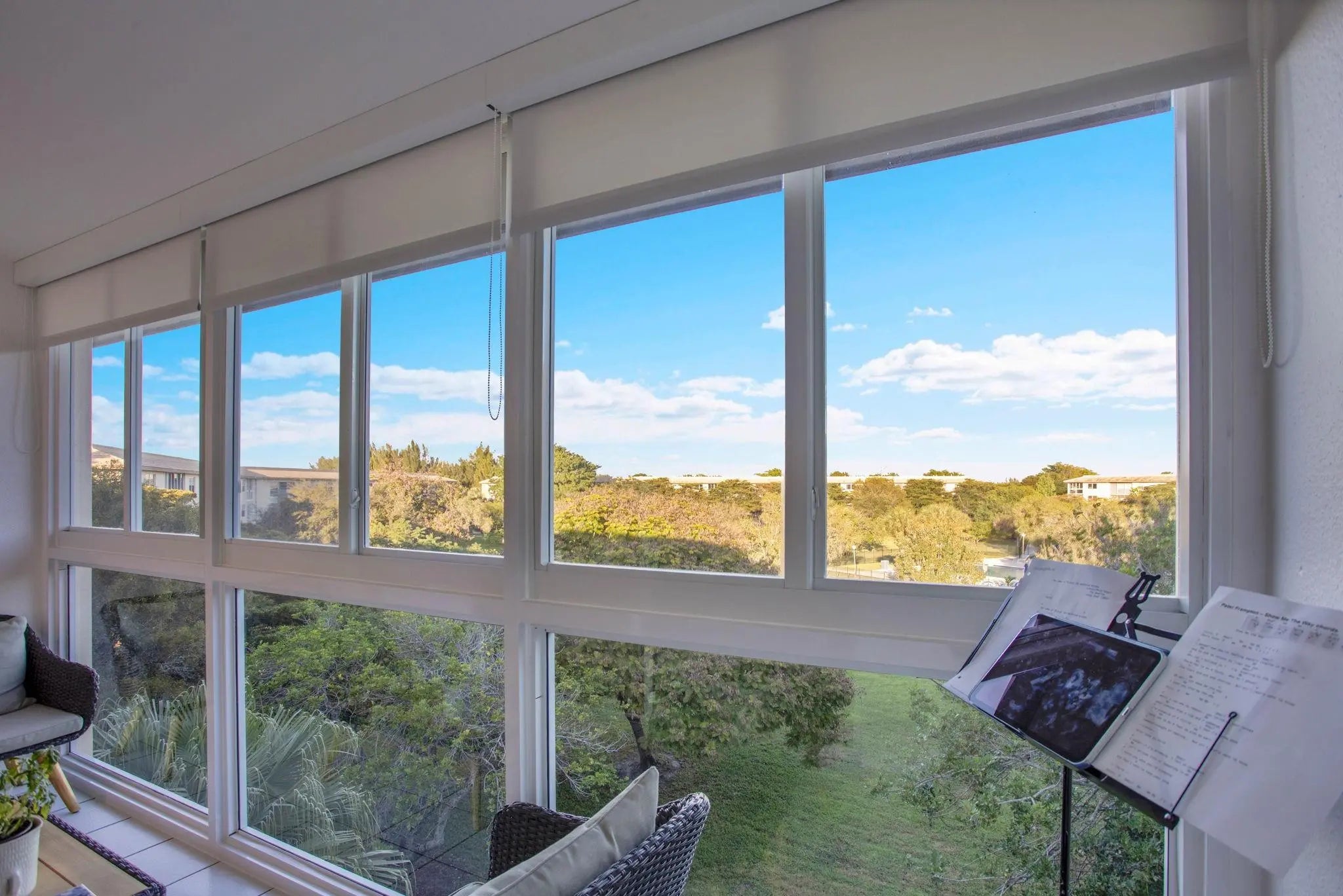 IRIS FLOOR PLAN Totally remodeled. Discover an unparalleled living experience, featuring all impact windows, front door, and patio enclosure peaceful location steps to theatre. Offered fully furnished & turn-key,JUST BRING YOUR TOOTHBRUSH! Enter a realm of sophistication and innovative design in this remarkable home, nestled within the highly sought-after 1603 Abaco Village. This exceptional apartment redefines modern living, boasting a captivating eastern exposure that floods the interiors with natural light, creating a warm and inviting ambiance throughout the day. The gourmet kitchen effortlessly flows into the living area, making it the perfect setting for entertaining guests. tranquil bedroom, complete with generous closet space and a reconfigured spa-inspired bathroom