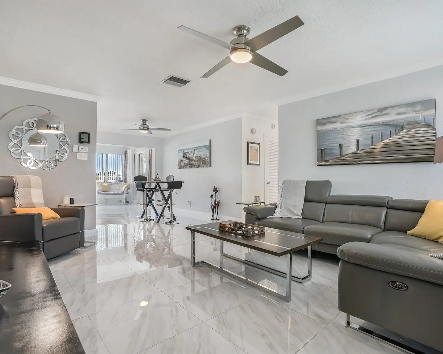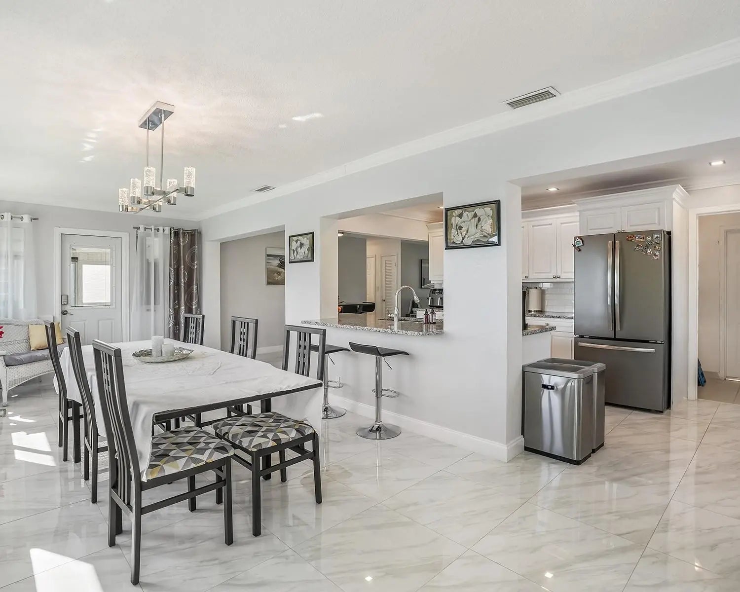 Stunning open-concept 2 bed, 2 bath home in 55+ Mainlands of Tamarac, Section 4. 1-car garage, 1300+ sq ft under air, and canal views from nearly every room. Renovated kitchen, contemporary bathrooms, and ceramic tile flooring throughout. Impact glass windows for peace of mind. Roof 2002. Extended patio pavers, outdoor deck, and an enclosed Florida room for seamless indoor-outdoor living. Move-in ready in a desirable 55+ community with tranquil water views.