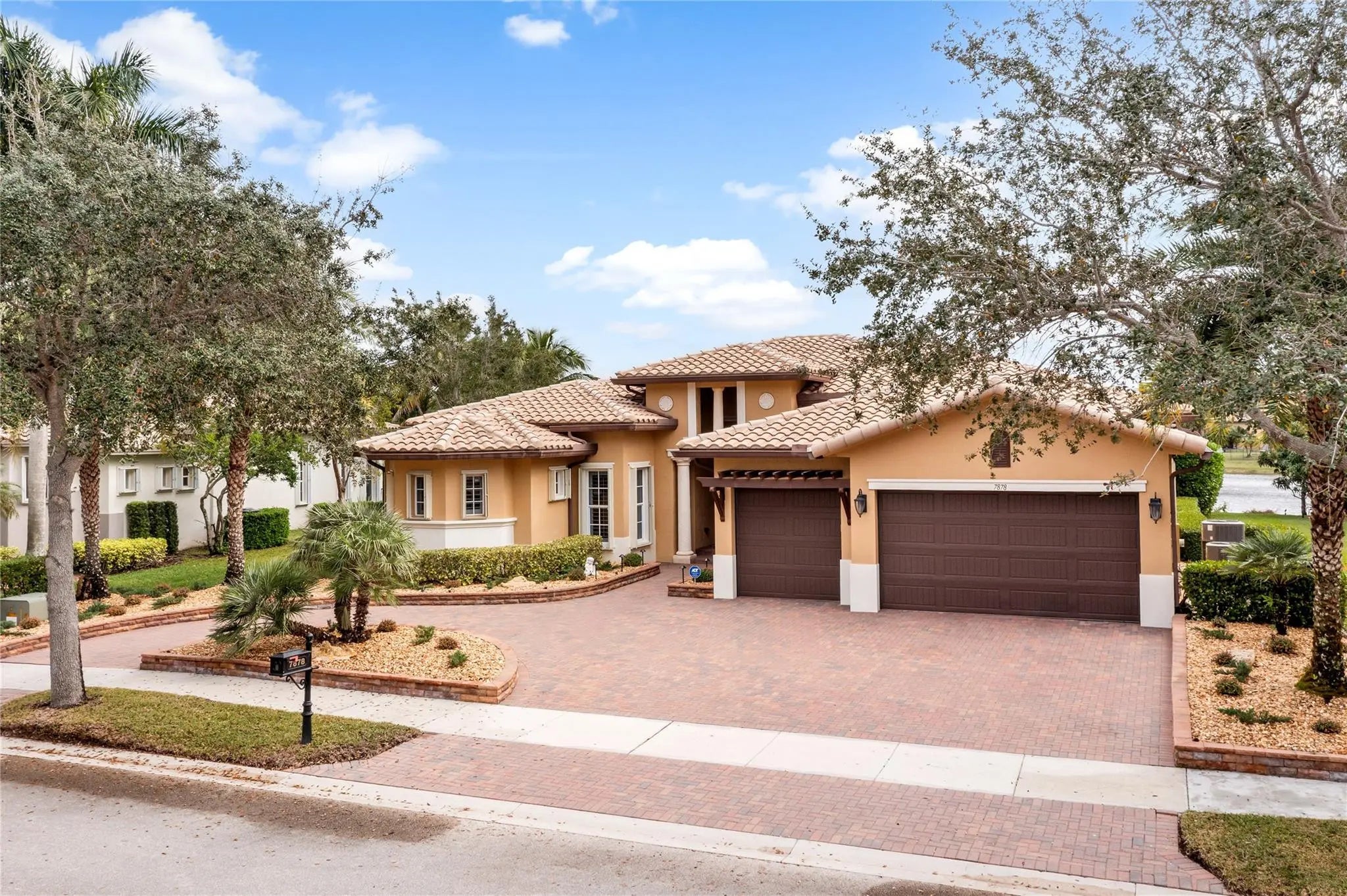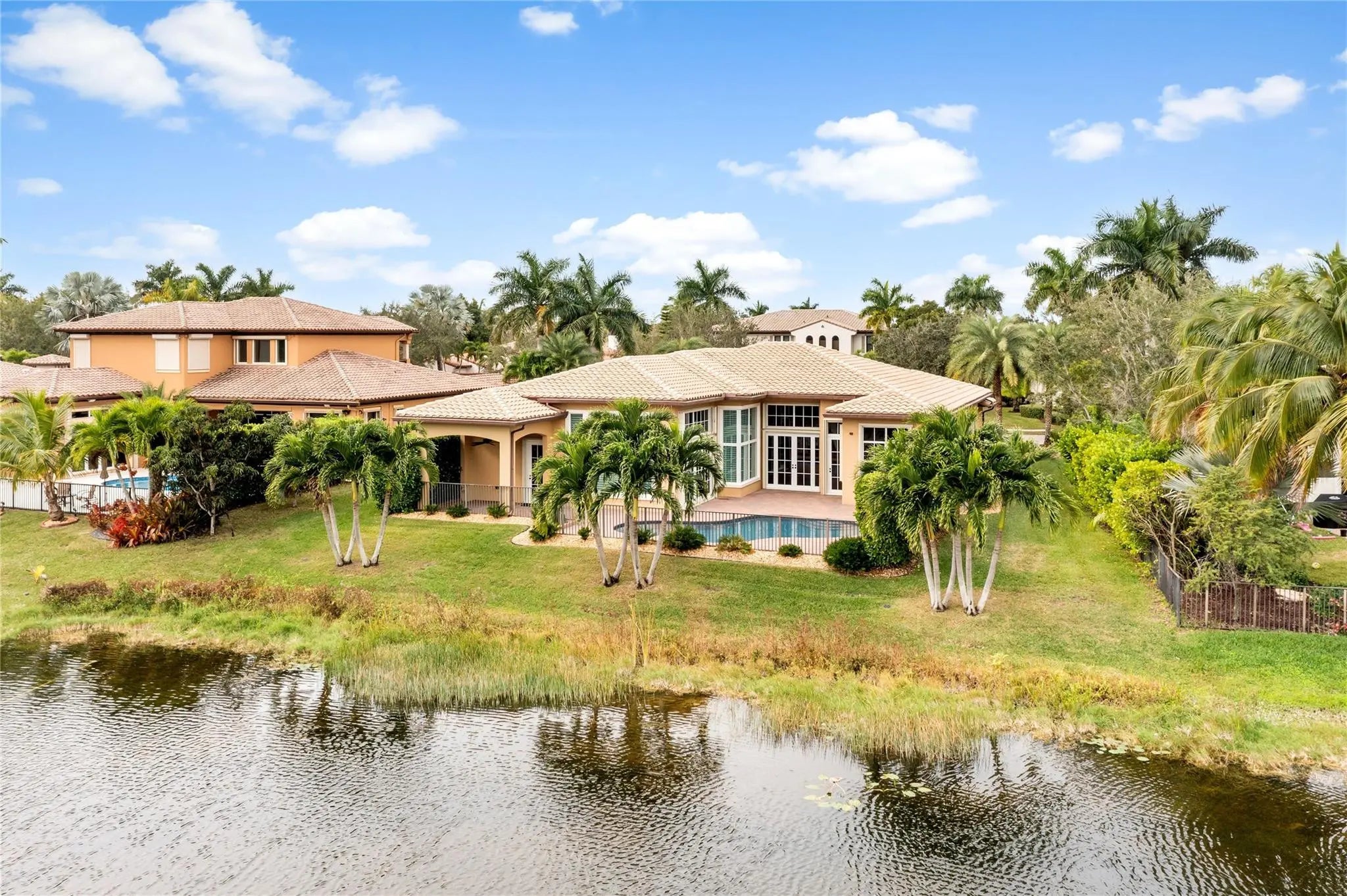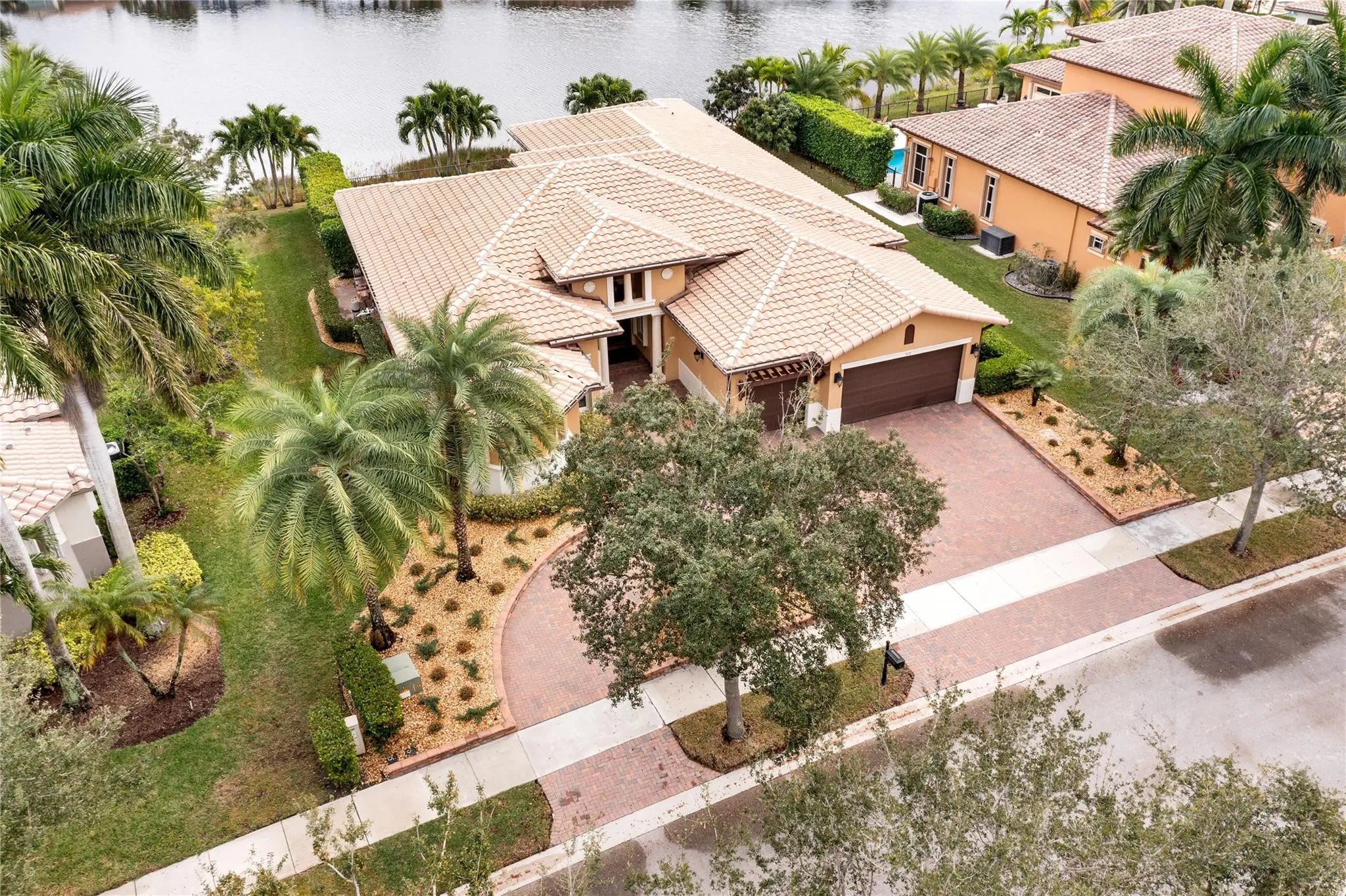 Stunning Oakmont Model w/5 Full Beds, 3 Baths, Pool Home w/3-Car Garage & Circular Driveway Situated On A Prime Waterfront Lot. Open Kitchen w/Granite Counters, Dual Wall Ovens, Stainless Steel Appliances, Breakfast Area & Ample Cabinetry. Master Suite Features Sitting Area, Dual Walk-In Closets, Separate Vanities & Sinks, Separate Tub & Shower. Home Secured w/Complete Accordion Shutters. Popular Tri-Split Open Floorplan, Crown Moulding & Plantation Shutters. Outside Oasis w/Extended Pavers, Gorgeous Pool & Covered Sitting Area Overlooking Breathtaking Water Views. 24-Hour Guard Gated Community, 2 Clubhouses, Fitness Centers, Pool & Spa, Tennis, Basketball, Pickleball & Much More. Very Close To A Rated Schools, Shopping, Restaurants & Major Highways.