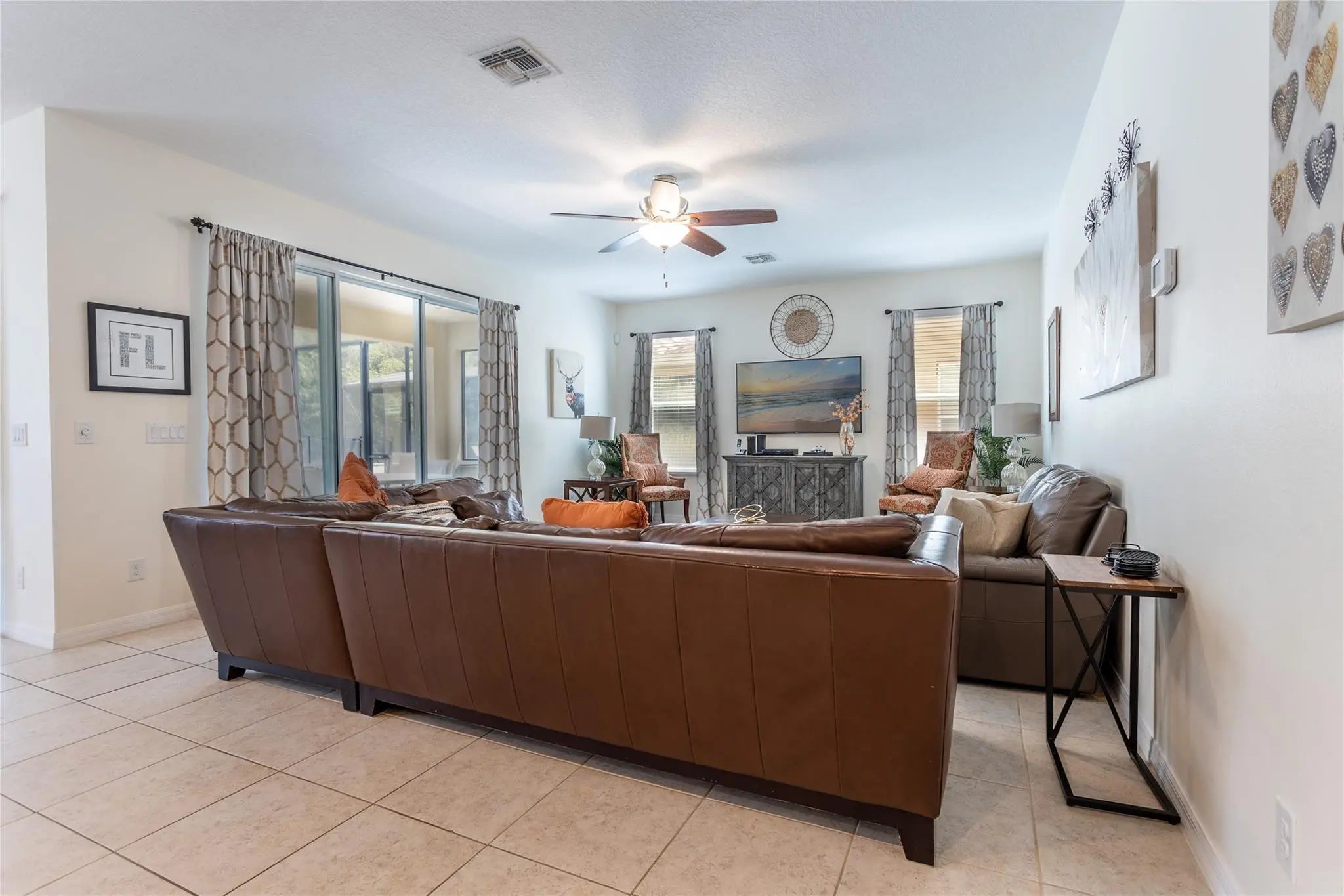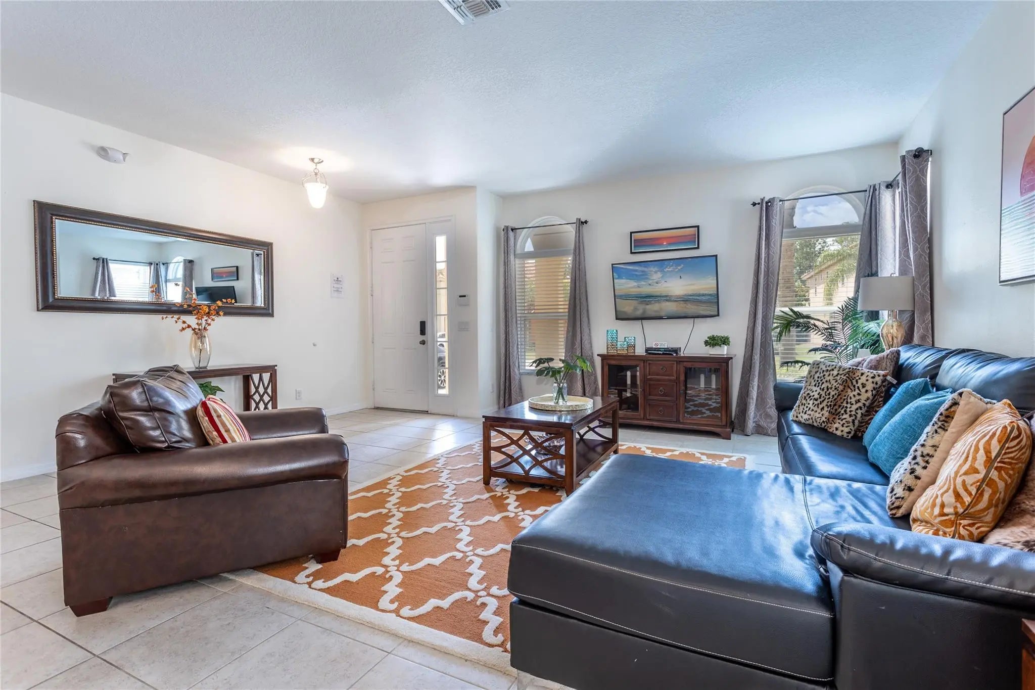 Welcome to 446 Orange Cosmos Drive in Davenport, located in the gated, amenity rich Watersong community. This well-maintained furnished 6 bedroom 4.5 bath home features a bright open layout with tile in main living areas and carpeted bedrooms. The spacious kitchen offers ample cabinetry, generous counter space, and a breakfast bar overlooking the living and dining areas. Sliding glass doors lead to a covered patio and screened pool with a peaceful preserve backdrop for added privacy and relaxation. Upstairs offers additional living space and generously sized bedrooms. Internet & Cable included in rent. Watersong amenities include clubhouse, fitness center, resort pool, playground, and more! Located near Disney, shopping, dining, and major roadways. Inquire Today!