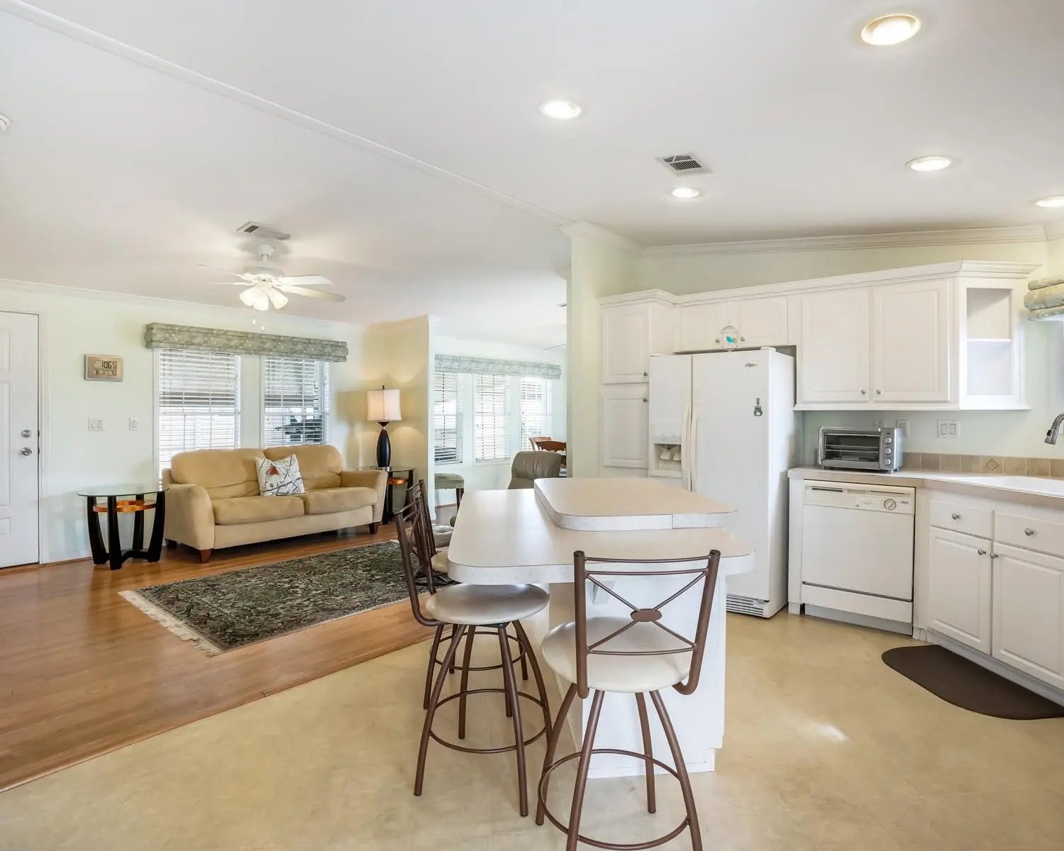 Beautiful 2 bed, 2 bath mobile home in 55+ Park City Estates—own the land. Immaculately kept with vinyl flooring throughout. Open concept kitchen features white cabinets and a central island. Spacious bedrooms and pristine bathrooms offer comfort and style. Large carport and shed provide great storage, plus a lovely outdoor open porch to enjoy the outdoors. Washer Dryer inside the home for ease. Low HOA adds value to this gorgeous home. Come see today and make it your very own.