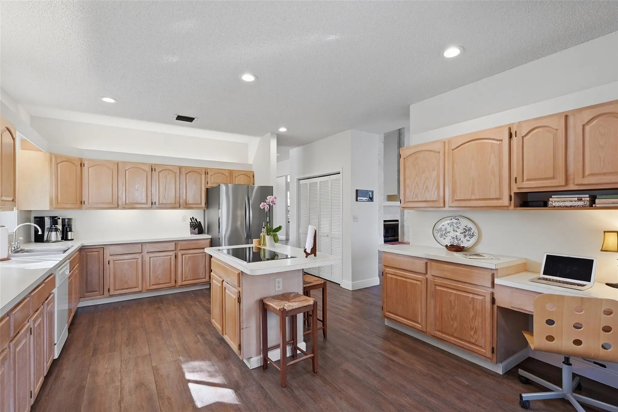 Your opportunity to own a beautiful home in prestigious CYPRESS HEAD is here! Step inside to a soaring 20-ft, two-sided limestone, wood-burning fireplace setting a warm & dramatic focal point. Newly installed 5-ft luxury plank floor flows seamlessly thru out. Desirable stacked split floor plan offers privacy for the primary suite while maintaining open living, dining, and kitchen spaces—ideal for entertaining. Enjoy indoor-outdoor living with a wet bar, poolside bar, & newly resurfaced pool. Add'l highlights incl new paint, new Samsung French-door refrigerator, 2 zone A/C, coffered ceilings, abundant closets, windstorm protection, & spacious lot w/ mature landscaping. Cypress Head offers resort-style amenities, tennis, fitness, trails, renovated clubhouse, and 24-hr manned security.