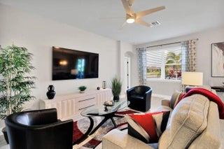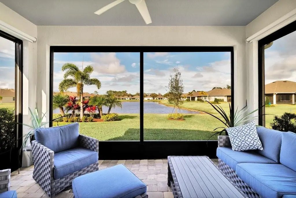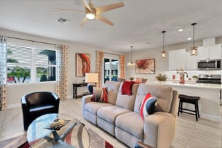Looking to relax in a great 55+ community? Embrace this beautifully appointed 1,676 sq ft home in Harmony Reserve boasting water views from the main bedroom, living area, dining & covered screened lanai where coffee or libations are enjoyed. Built in 2023, this 3 Bed, 2 Bath home offers peace of mind with IMPACT windows, a GENERAC Generator & StormSmart hurricane screens. Add’l features include natural gas cooking, island kitchen, quartz countertops, upgraded tiles, epoxy floors in the garage & much more. Furniture is negotiable making this a great potential snowbird home or full-time residence.