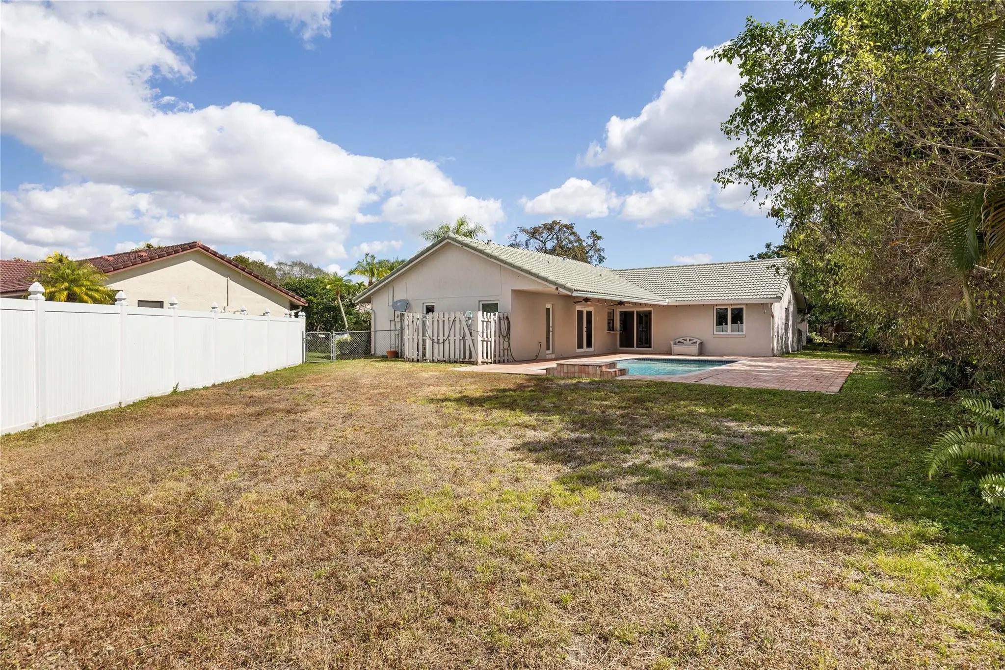 Desirable Coral Springs 4-bedroom, 2-bath spacious residence features a sought-after split floor plan offering privacy and functionality. Enjoy vaulted ceilings that enhance the open and airy feel throughout the main living areas and primary suite . Impact windows throughout provide added protection and energy efficiency. The primary suite boasts two walk-in closets and a private bath. Step outside to your own backyard oasis with a sparkling pool perfect for entertaining or relaxing year-round. Complete with a 2-car garage and located in a prime neighborhood close to parks, schools, shopping, and dining. A wonderful place to call home !