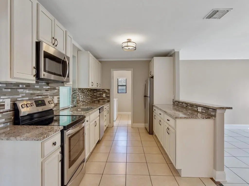 BRAND NEW ROOF! This charming Home on a Quiet Street offers a private bonus space & Sunroom! This 2-bedroom, 1.5-bath home offers a tiled bonus room with closet, window, and private side entry—perfect for an office or guest space. The dining area opens through French doors to an enclosed sunroom filled with natural light and access to the large fenced backyard. Features include an updated kitchen with light cream cabinets, granite counters, stainless steel appliances, tile flooring, carpeted bedrooms, new HVAC (2025).