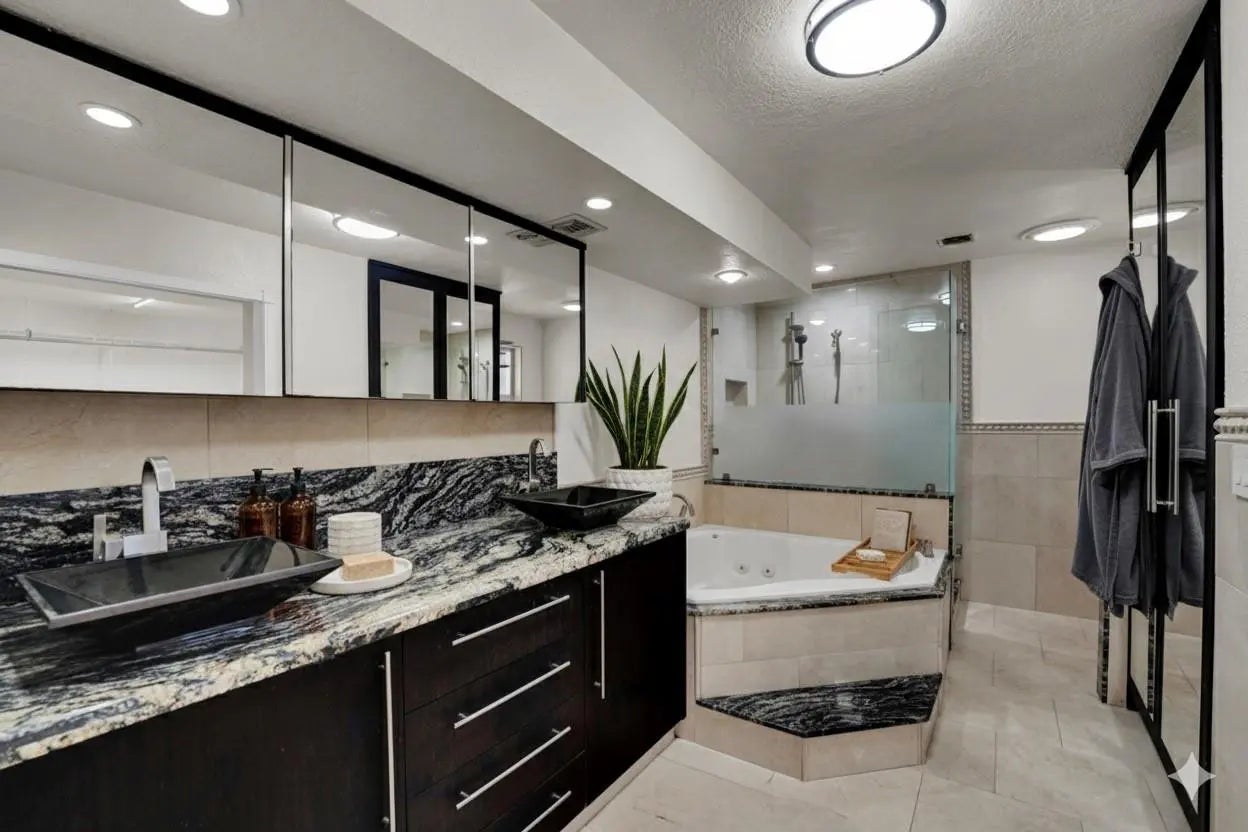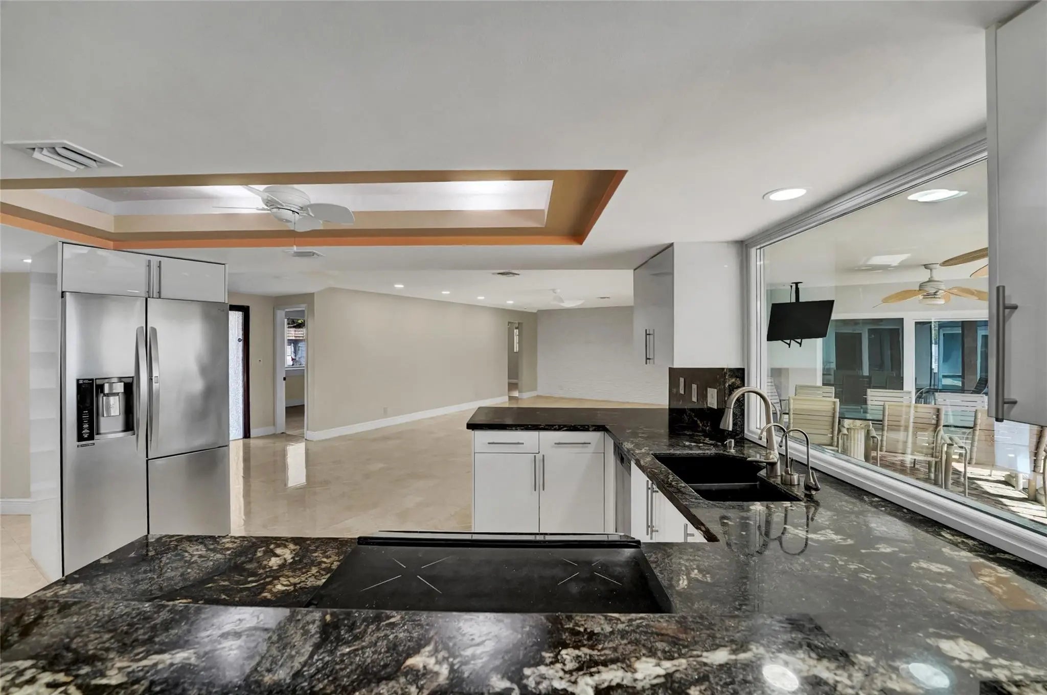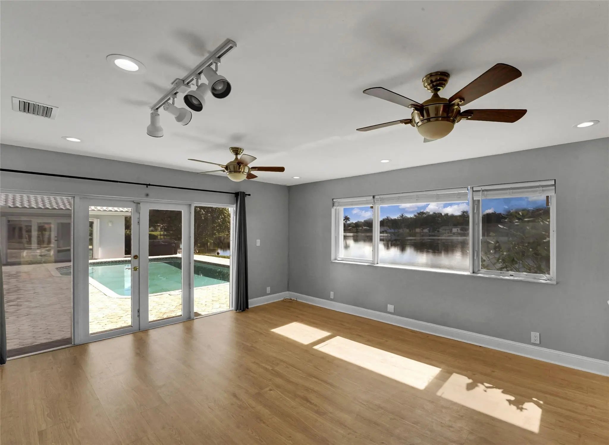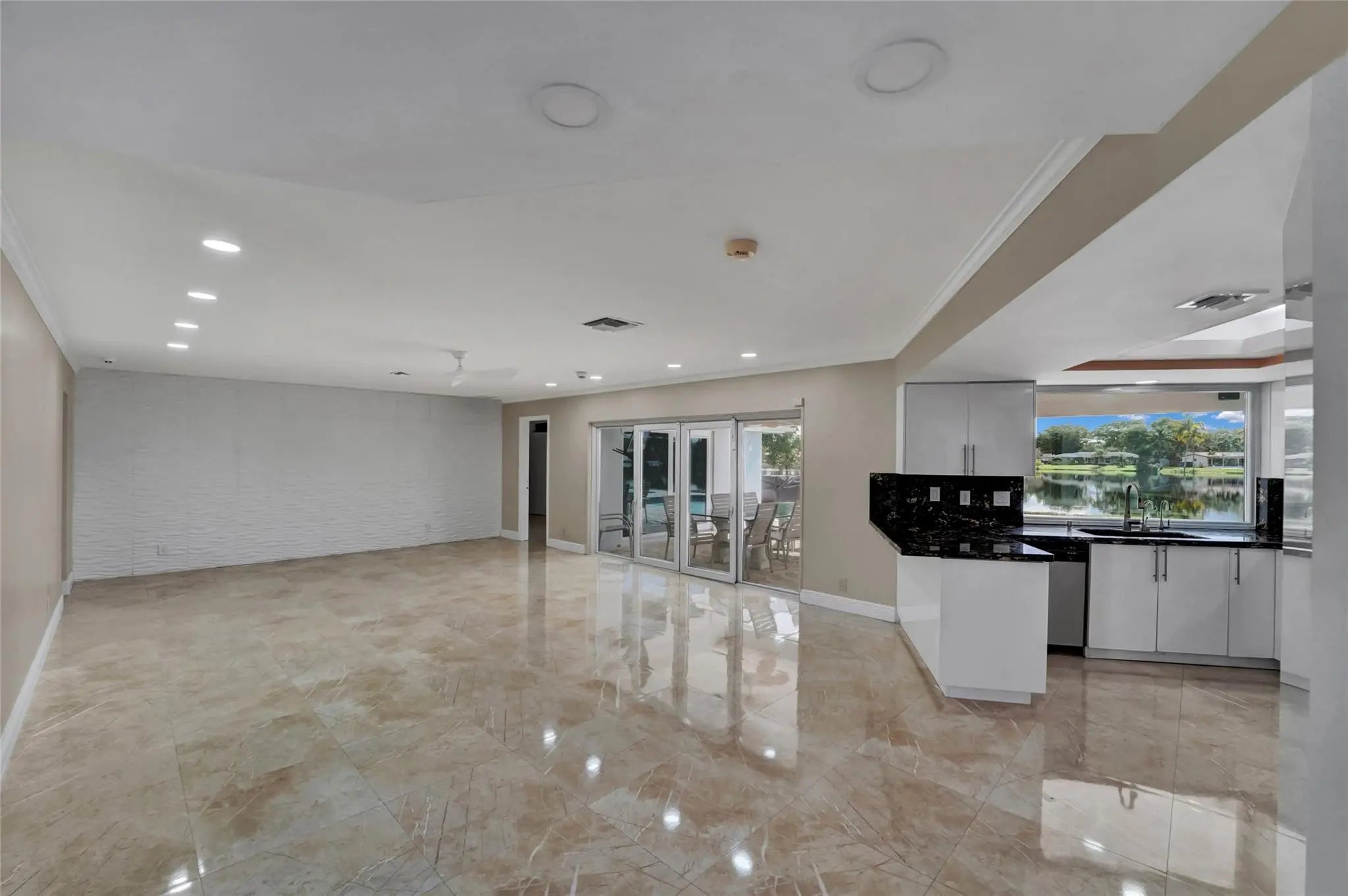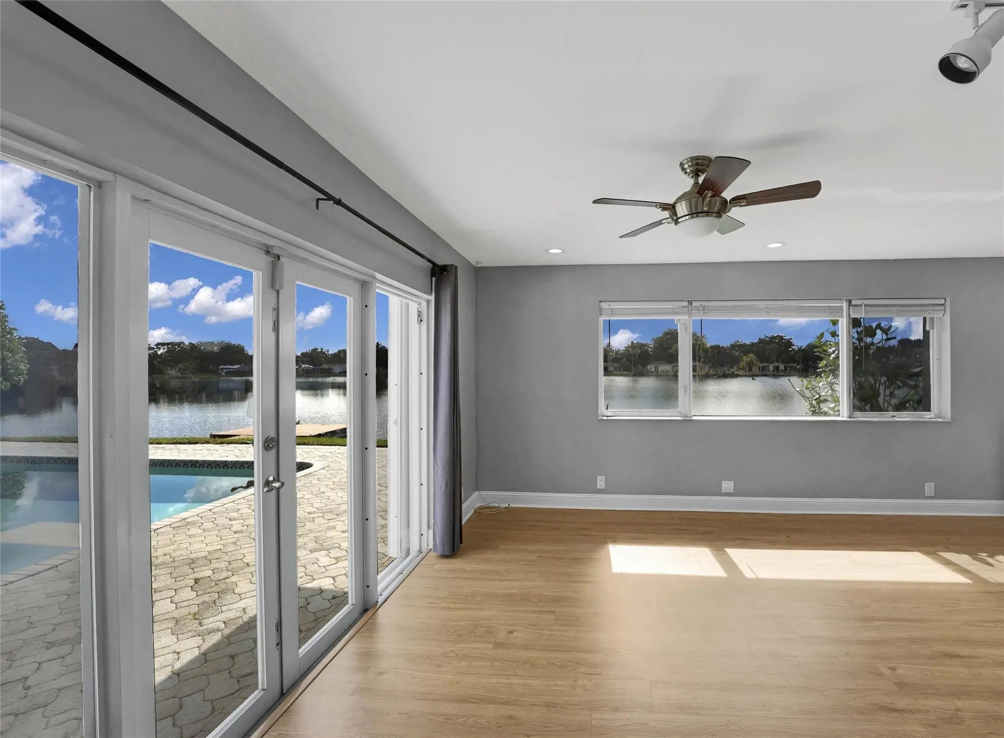 Stunning 4 bed 3.5 bath lakefront pool home with in-law/multi-generation quarters in Royal Palm Estates. Enter to impressive great room with rectified porcelain floors and sweeping panoramic views of the sparkling sports pool & serene lake. The open-concept flows to the chef's kitchen featuring granite counters, SS appliances, full walk-in pantry, & adjacent family room/dining area that's ideal for gatherings. The master suite wing is a true retreat, with extremely large walk-in closet, home office & cozy sitting area or gym. The standout feature is the separate suite with private entry–ideal for extended family. This wing includes a living room, laundry, oversized walk-in closet & bath with dual sinks & massive shower with seating bench. Newer METAL roof & full hurricane protection! Celebrate your life in a resort-like breath-taking home with a view. Bring your Kayak, Canoe or fishing boat -- you can drop into the lake and relax from your private dock -this home is protected by one of the few seawalls on the lake. The home is thoughtfully designed with an effortless flow between the outdoors and your living space. Huge windows overlooking the lake enables you to watch the various wildlife including the wood storks, ducks, coots, anhinga, turtles, jumping fish and more!New sprinkler system uses lake water.Close to all the shopping including Trader Joes, Publix, Aldi, Whole Foods, Costco etc.