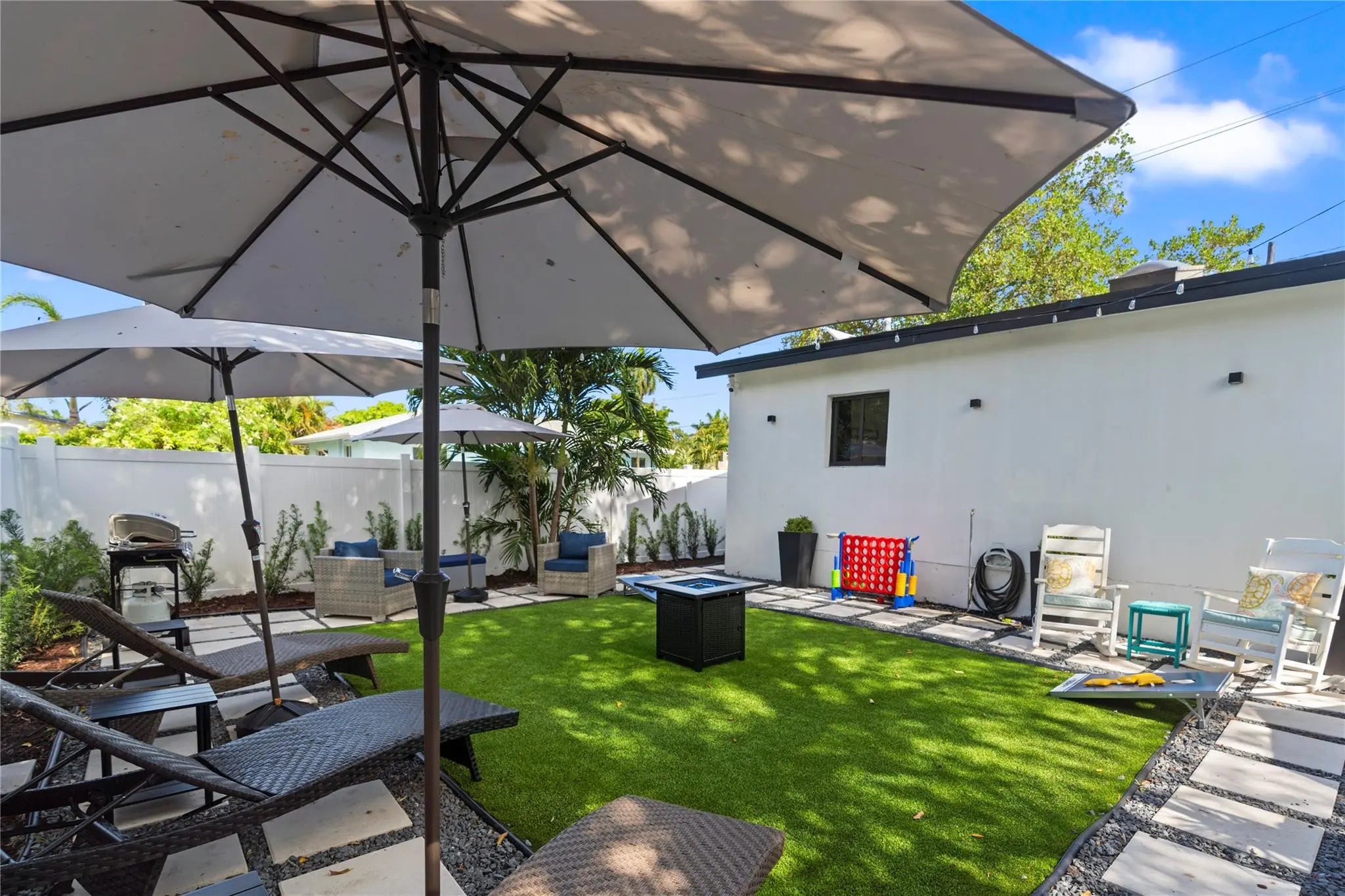Modern, brand newly renovated 4BR/2BA single-family home, just under 1900 Sqft offered as an annual rental in the heart of downtown Oakland Park. Walkable to parks, restaurants, bars, shopping, and public transit, with minutes to Las Olas, downtown Fort Lauderdale, and the beaches. This fully furnished home delivers a curated, contemporary vibe with impact windows and doors and a newer roof. The private, low-maintenance backyard is built for entertaining—artificial turf, fire pit, and multiple lounge zones. A large deck off the kitchen sets the stage for outdoor dining and laid-back nights. Turnkey, stylish, and move-in ready. Available for April 15th 2026.