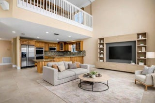 Step into a home that truly feels like a retreat. This beautiful 5-bedroom, 3.5-bath home offers nearly 4,000 sq. ft. of space designed for both everyday comfort and memorable gatherings. From the moment you walk in, you’re greeted by soaring ceilings, oversized windows, and natural light that fills every corner. The lake views set a peaceful tone, while the backyard steals the show with a sparkling pool and a covered patio, perfect for morning coffee or entertaining guests. The kitchen is the heart of the home, featuring rich wood cabinetry, stainless steel appliances with a double oven, a breakfast bar, and a coffee station. Two master suites provide everyone with room to relax, and the 3 bedrooms and loft upstairs fulfill the space. The kind of home you’ll love coming back to every day.