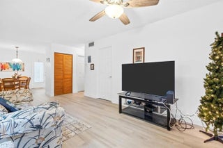 First-floor corner unit located in Kingswood Phase I Condo, offered fully furnished. This 1-bedroom, 1.5-bath residence features new tile flooring throughout the living areas and fresh interior paint. The living room and bedroom both offer sliding glass doors leading to a large screened patio, providing abundant natural light and extended living space. Recent updates include new blinds, new oven, and new bathroom vanities. Assigned parking space conveniently located directly in front of the unit.Community amenities include multiple pools, clubhouse, game room, and shuffleboard courts. Prime location just minutes from beaches and Hutchinson Island.Currently tenant-occupied with an active lease in place.